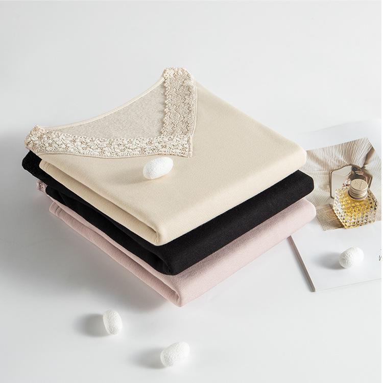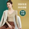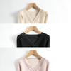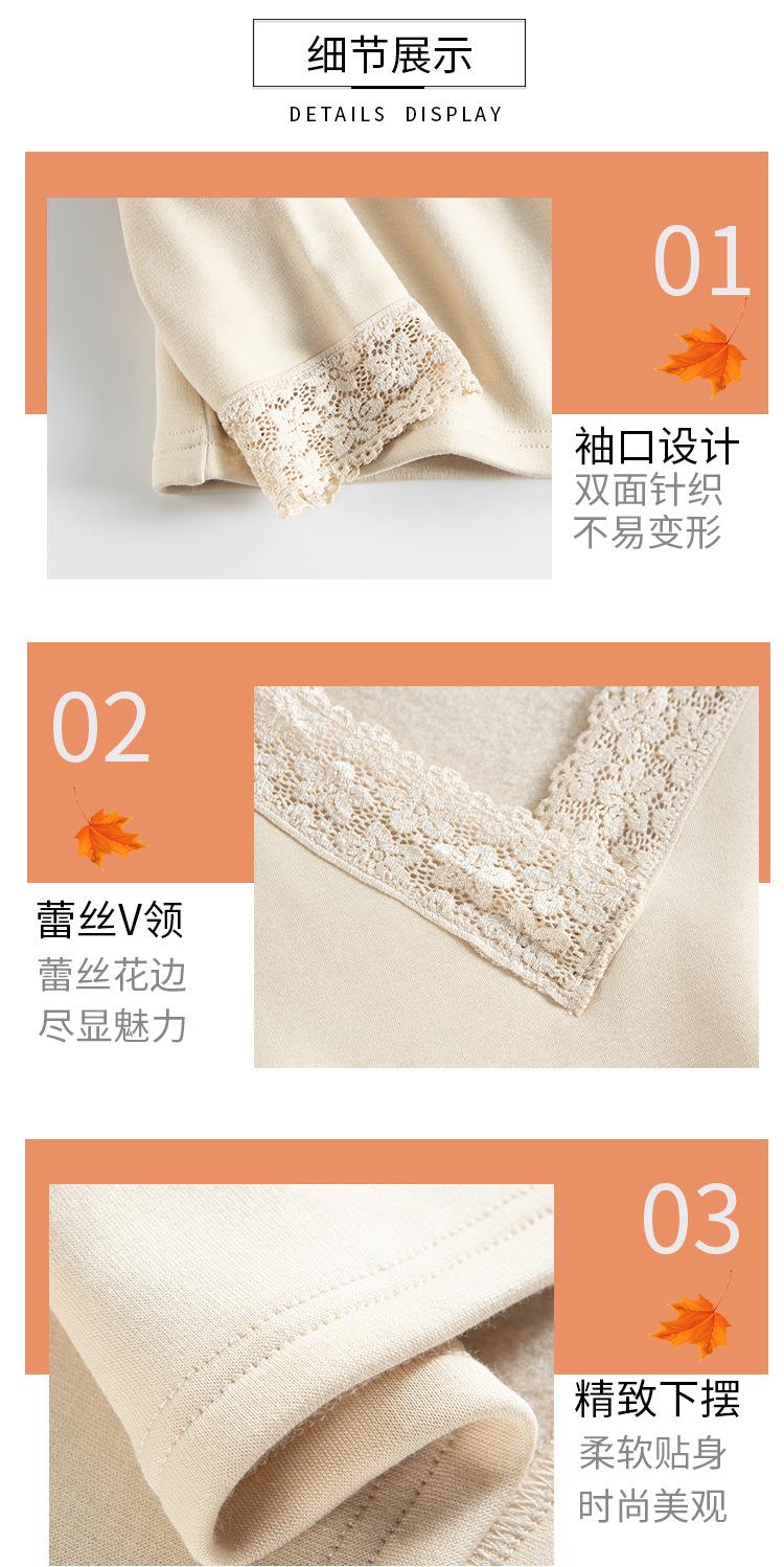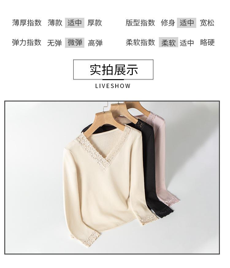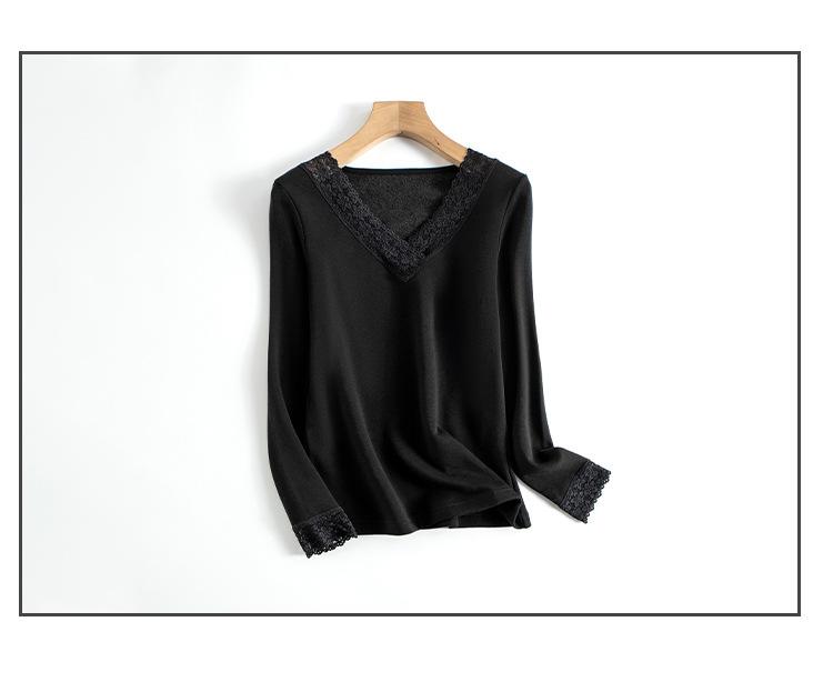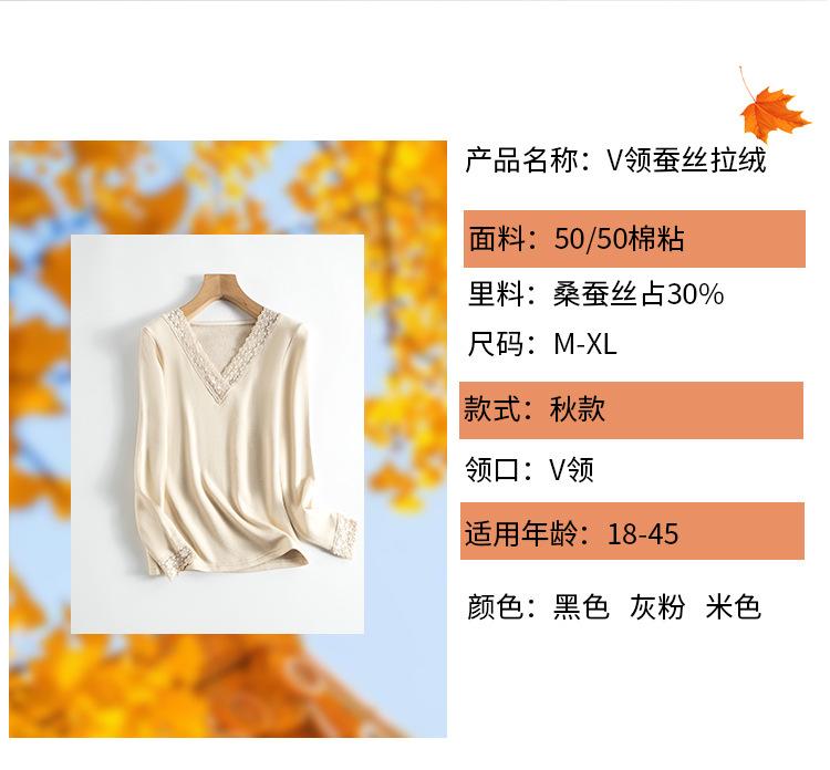 Ropa Interior Térmica de Seda para Mujer, Nueva Camiseta Base de Otoño e Invierno con Cuello en V y Forro Polar, Top Térmico Ajustado con Encaje y Forro Polar