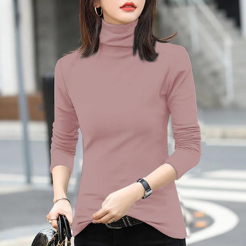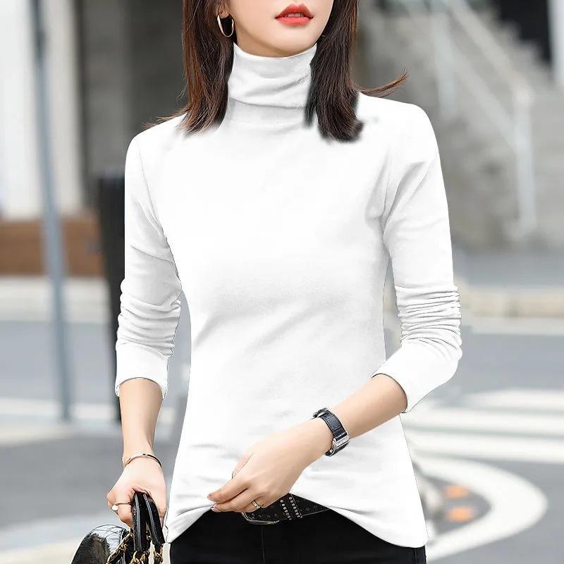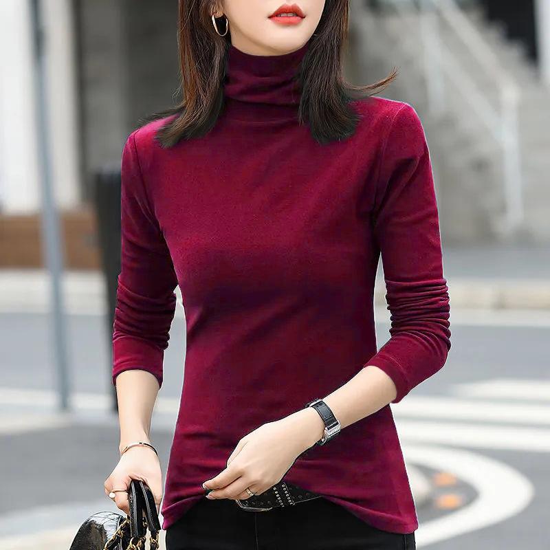 Camisa de cuello alto de terciopelo de doble cara, ropa interior de mujer, otoño e invierno, nueva blusa de manga larga gruesa y cálida con forro polar de estilo occidental