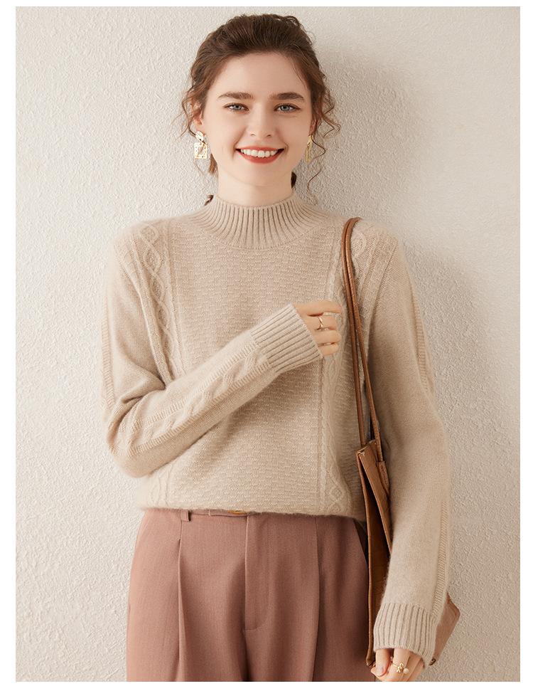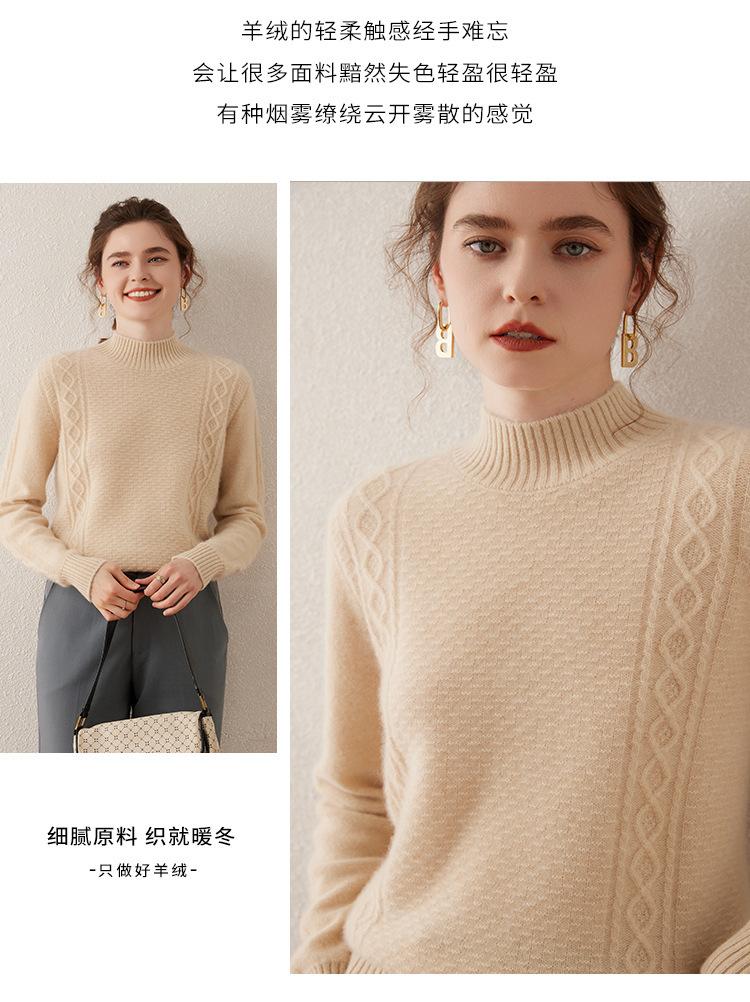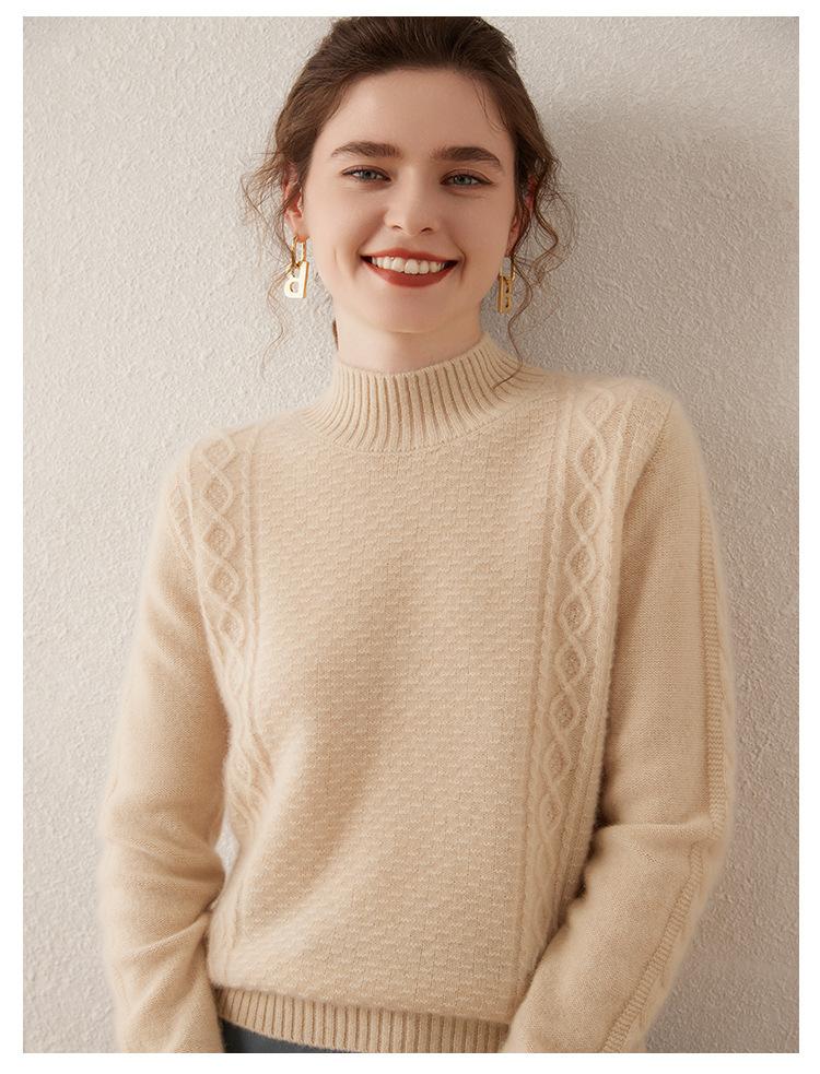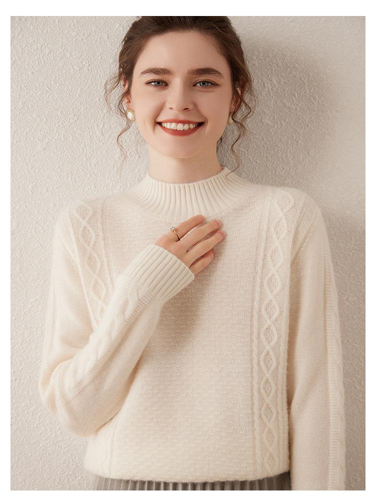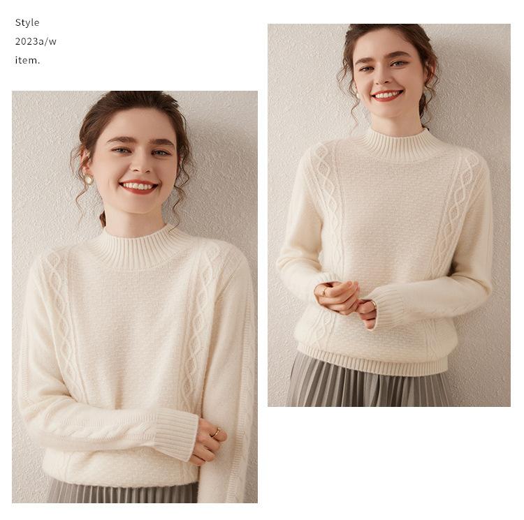 Camisa de cuello alto medio para mujer con fondo grueso otoño e invierno Nuevo suéter de cachemira retorcido para mujer suéter interior suelto de color sólido