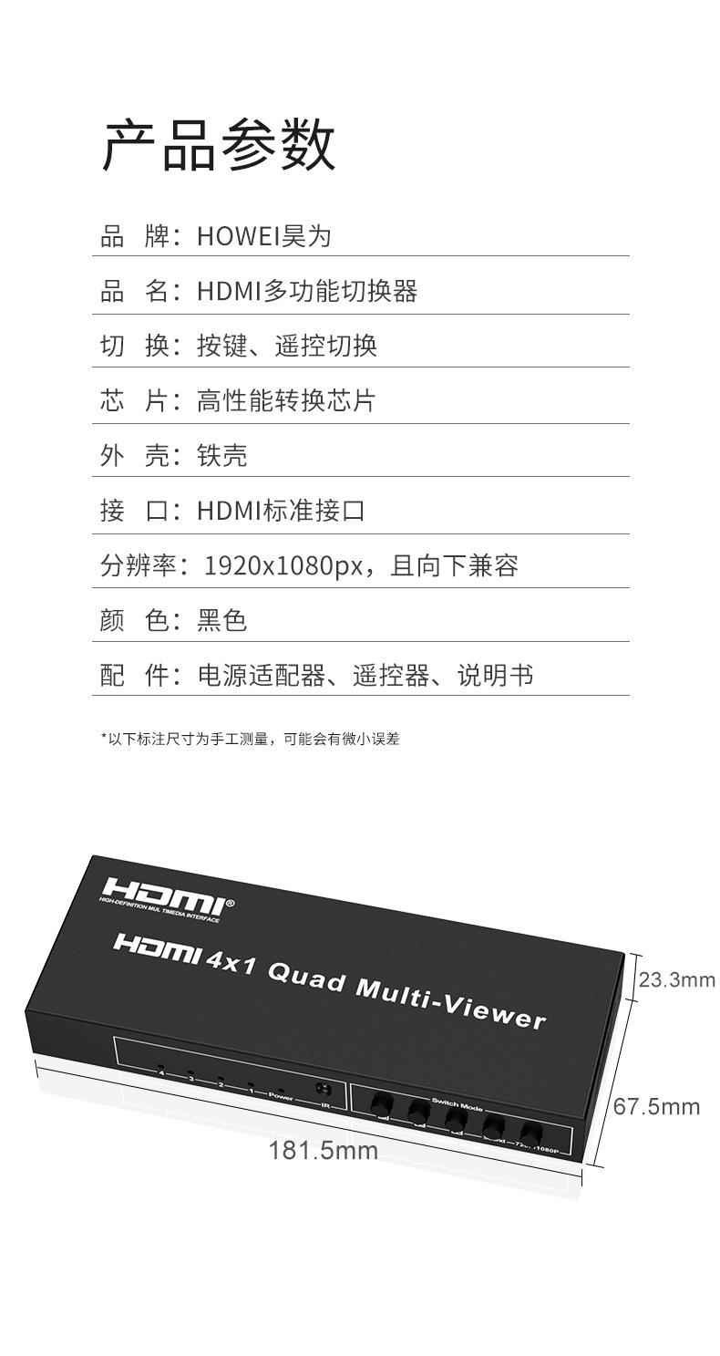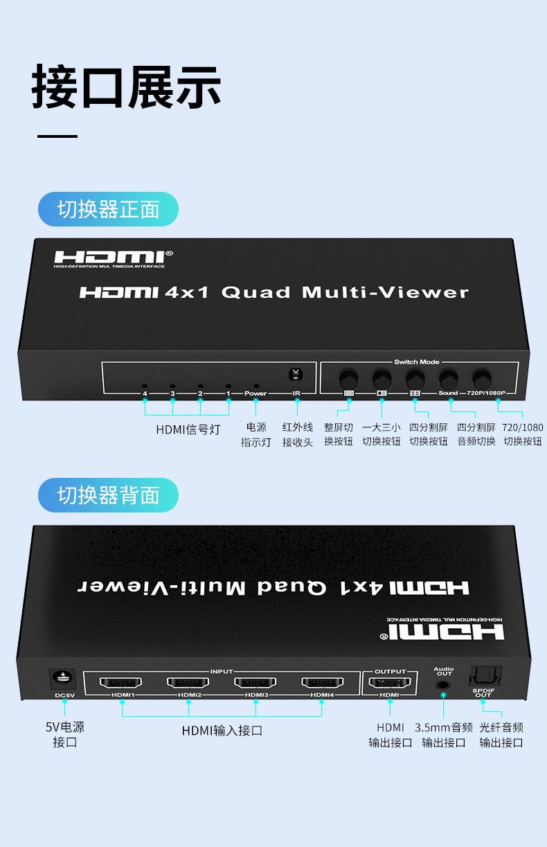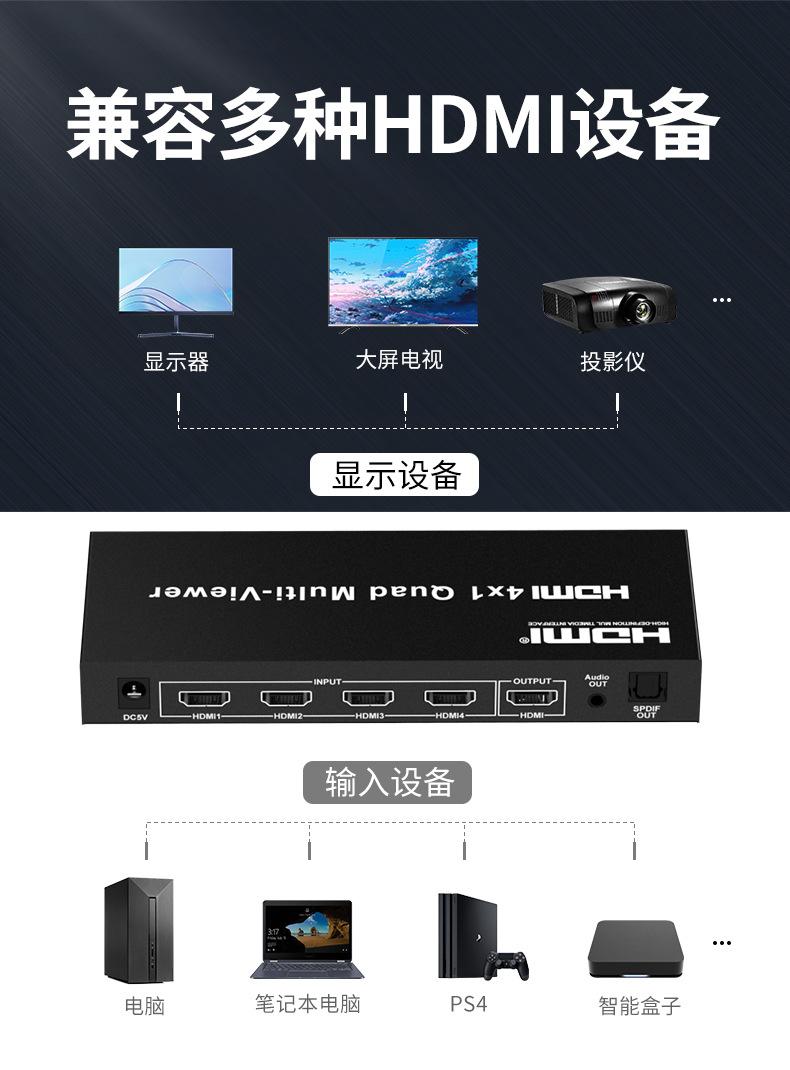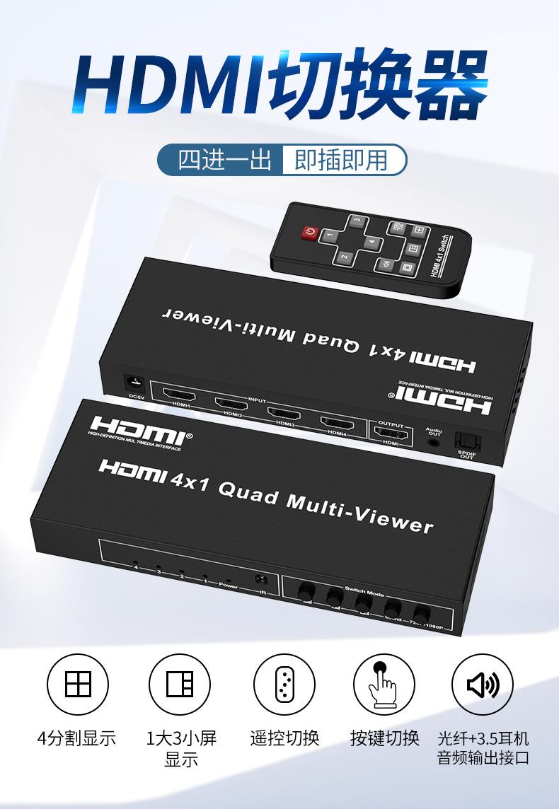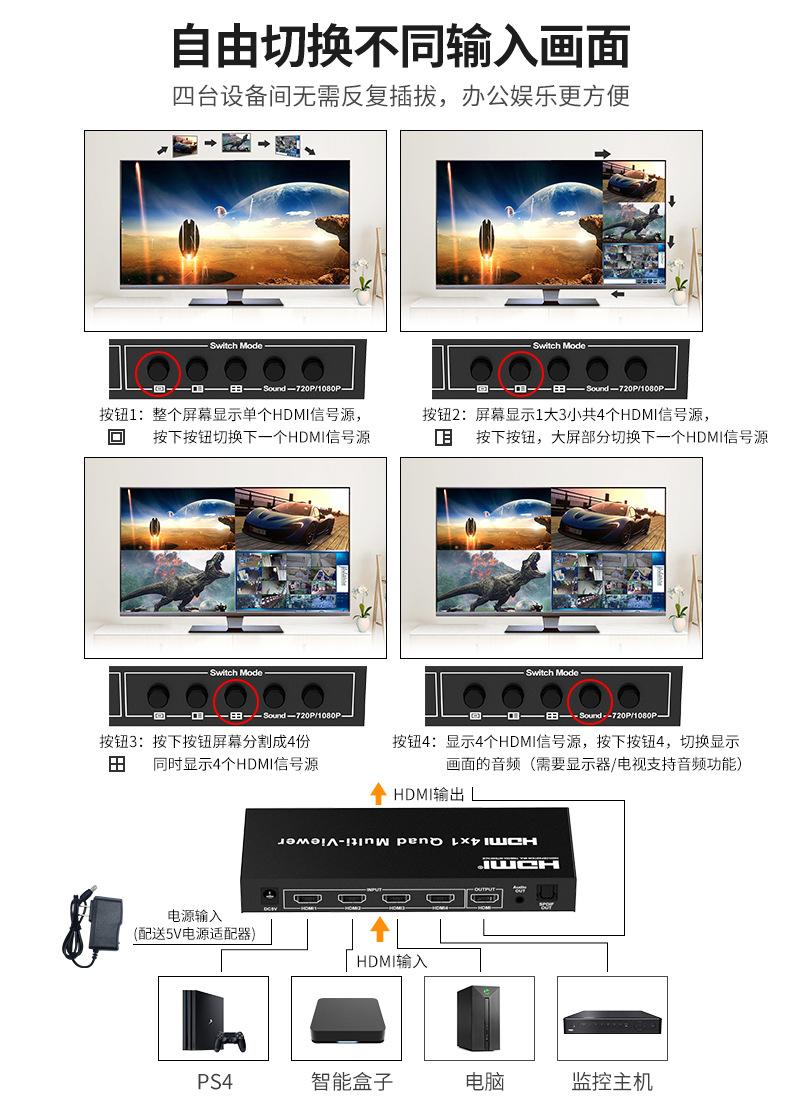 Divisor HDMI Cuatro entradas y una salida Conmutador KVM 4K Alta Definición Convertidor HDMI de Pantalla Dividida Divisor de Imagen