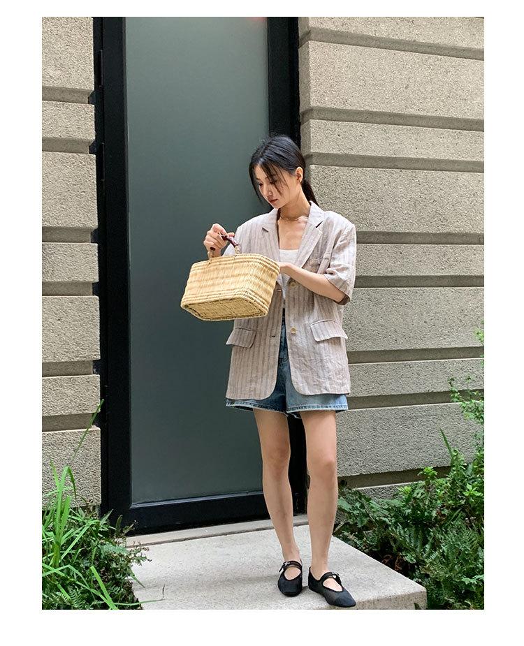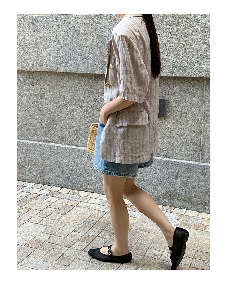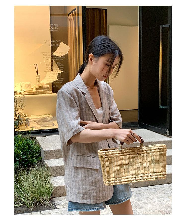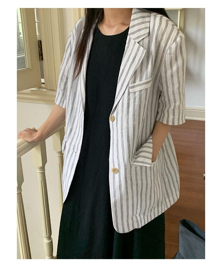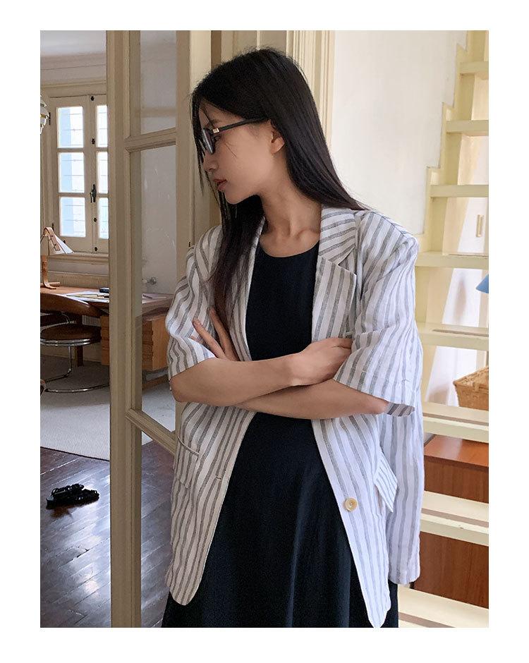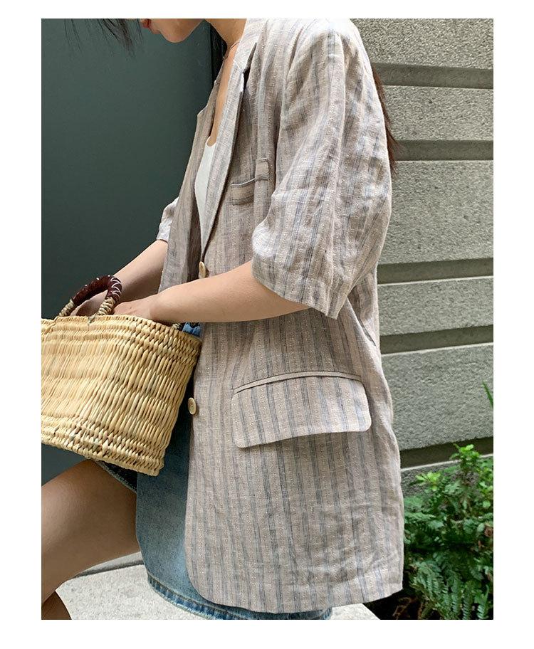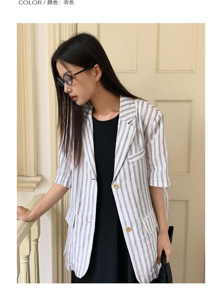 Traje de lino a rayas EVERTRUE para mujer, nuevo verano 2024, estilo coreano, chaqueta de manga corta de longitud media 52202