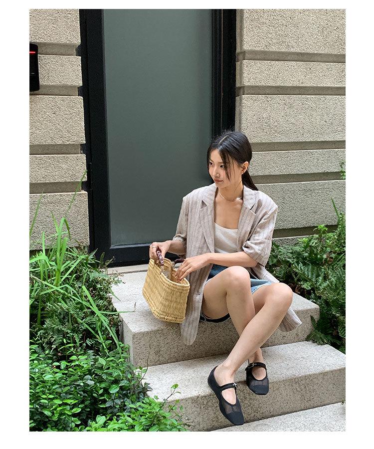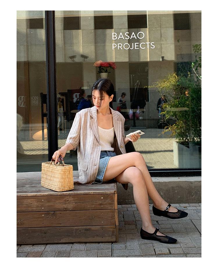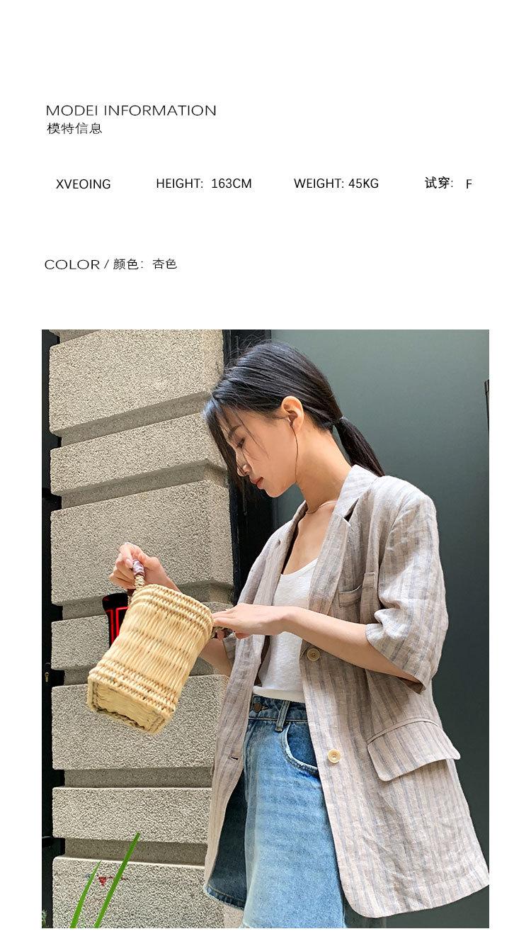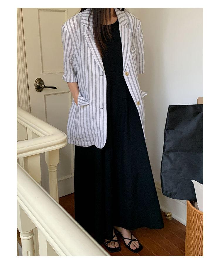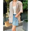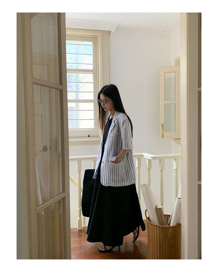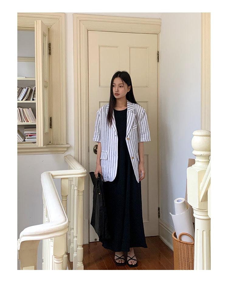 Traje de lino a rayas EVERTRUE para mujer, nuevo verano 2024, estilo coreano, chaqueta de manga corta de longitud media 52202