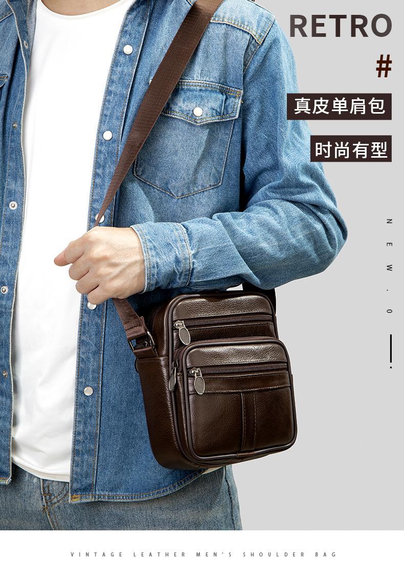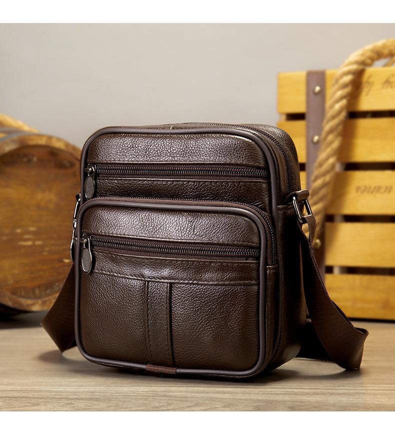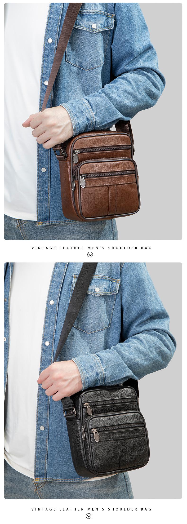 Nueva Bolsa Cruzada Vertical de Cuero Genuino Bolsa Pequeña Primera Capa Piel de Vaca Casual Pequeña Bandolera Mochila para Hombre Bolsa de Hombro para Negocios Hombres