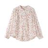 Blusa holgada con estampado floral de primavera 2021, estilo coreano, de gasa drapeada, con cuello en V, informal, de manga larga, con diseño para mujer