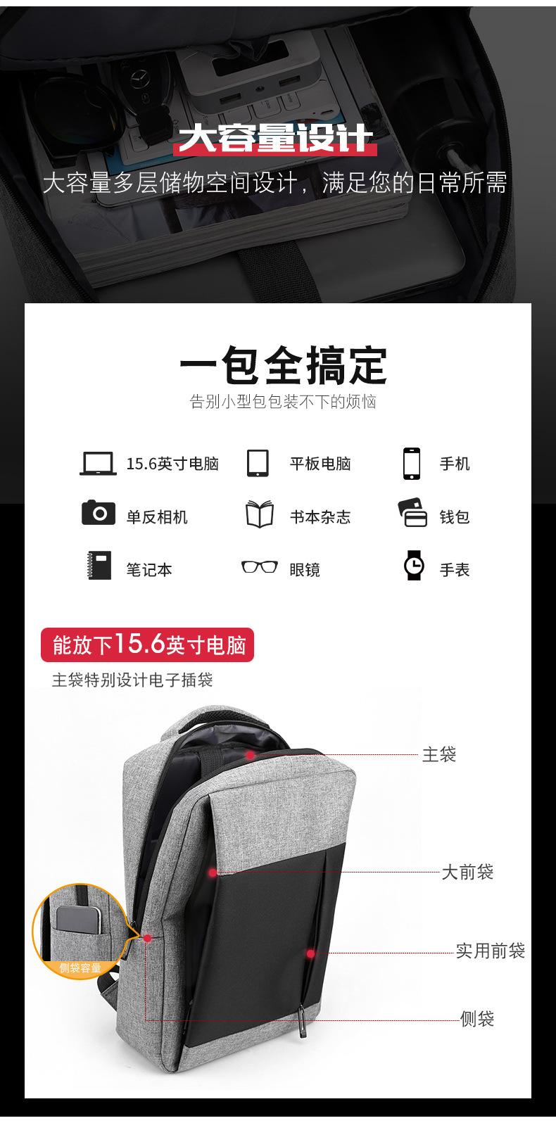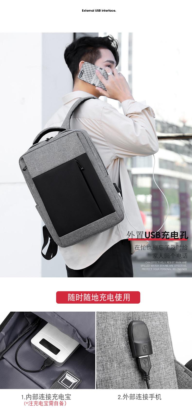 Mochila escolar para estudiantes transfronterizos, mochila para computadora de 15.6 pulgadas, mochila multifunción con USB, bolsa de viaje para viajes cortos