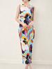 Vestido tipo chaleco con cuello redondo de Miyake para mujer, primavera y verano, nuevo vestido largo con estampado geométrico, cuello redondo, sin mangas, falda recta adelgazante