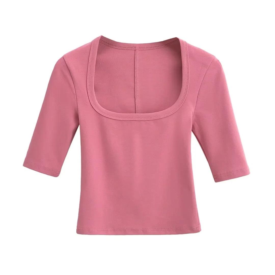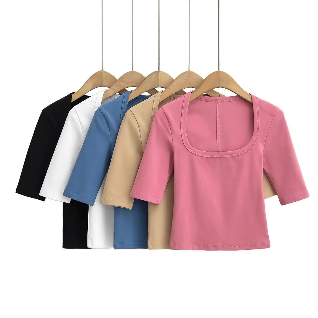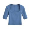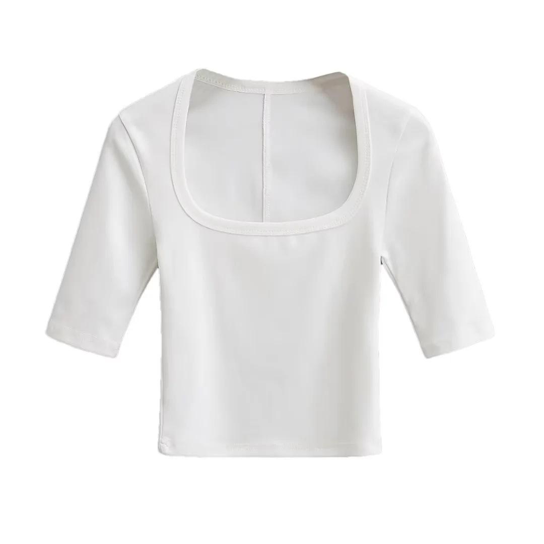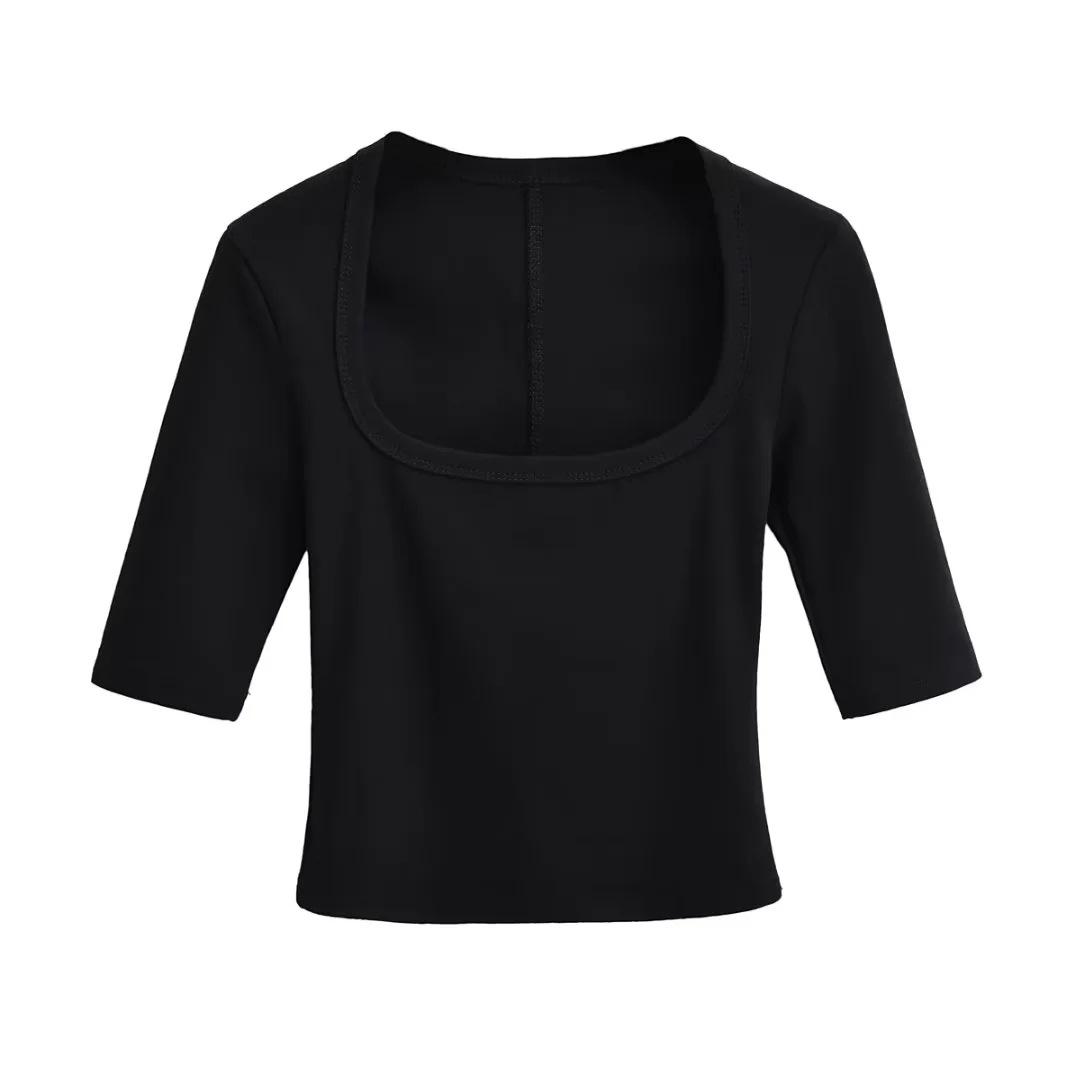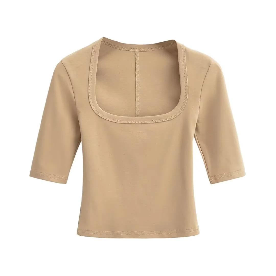 Camiseta de Manga Corta con Hombro Derecho Descubierto para Mujer, Estilo Otoñal, Diseño Elegante, Nuevo Modelo de Nicho, Corte Ajustado, Favorecedora, Top Corto de Moda con Cuello Cuadrado