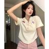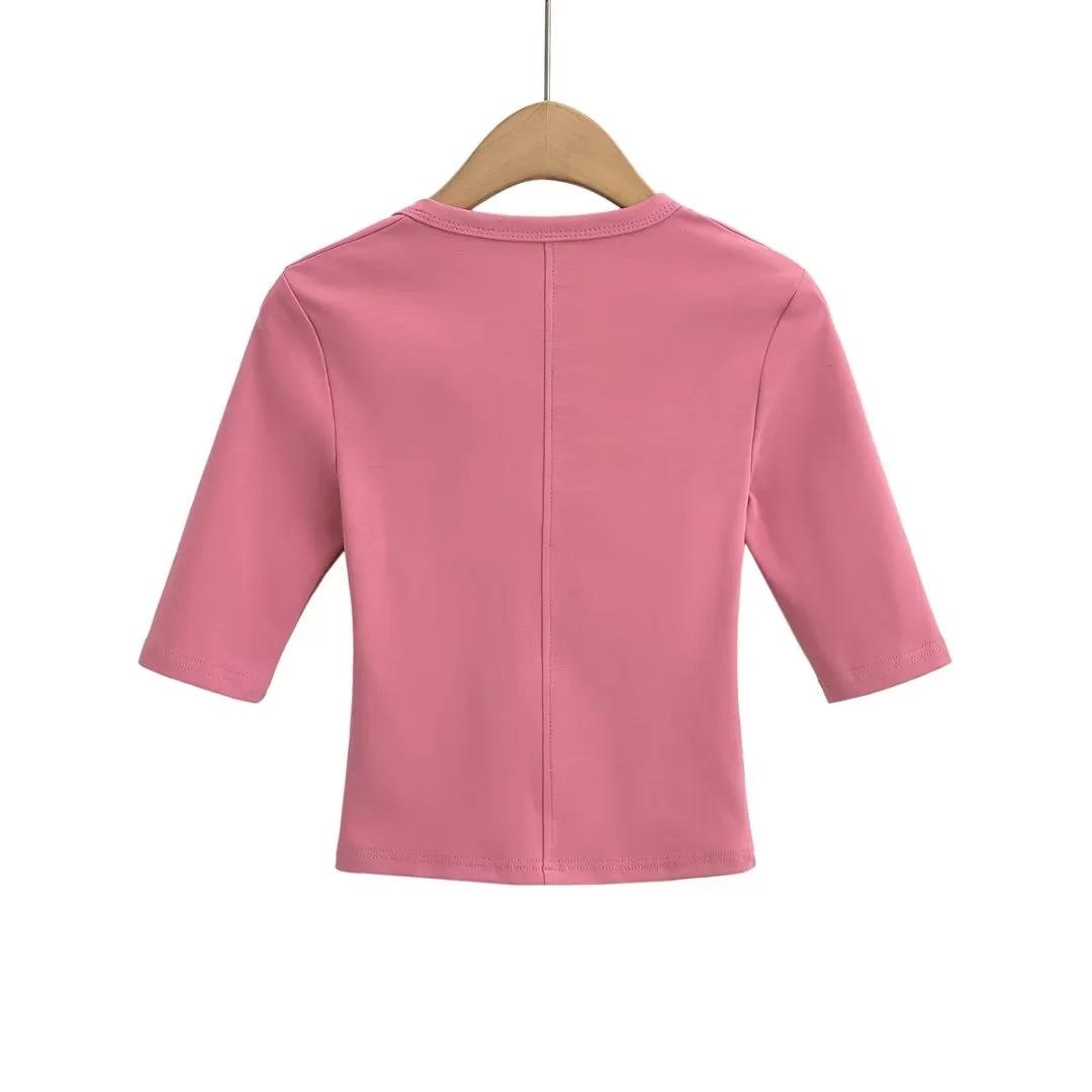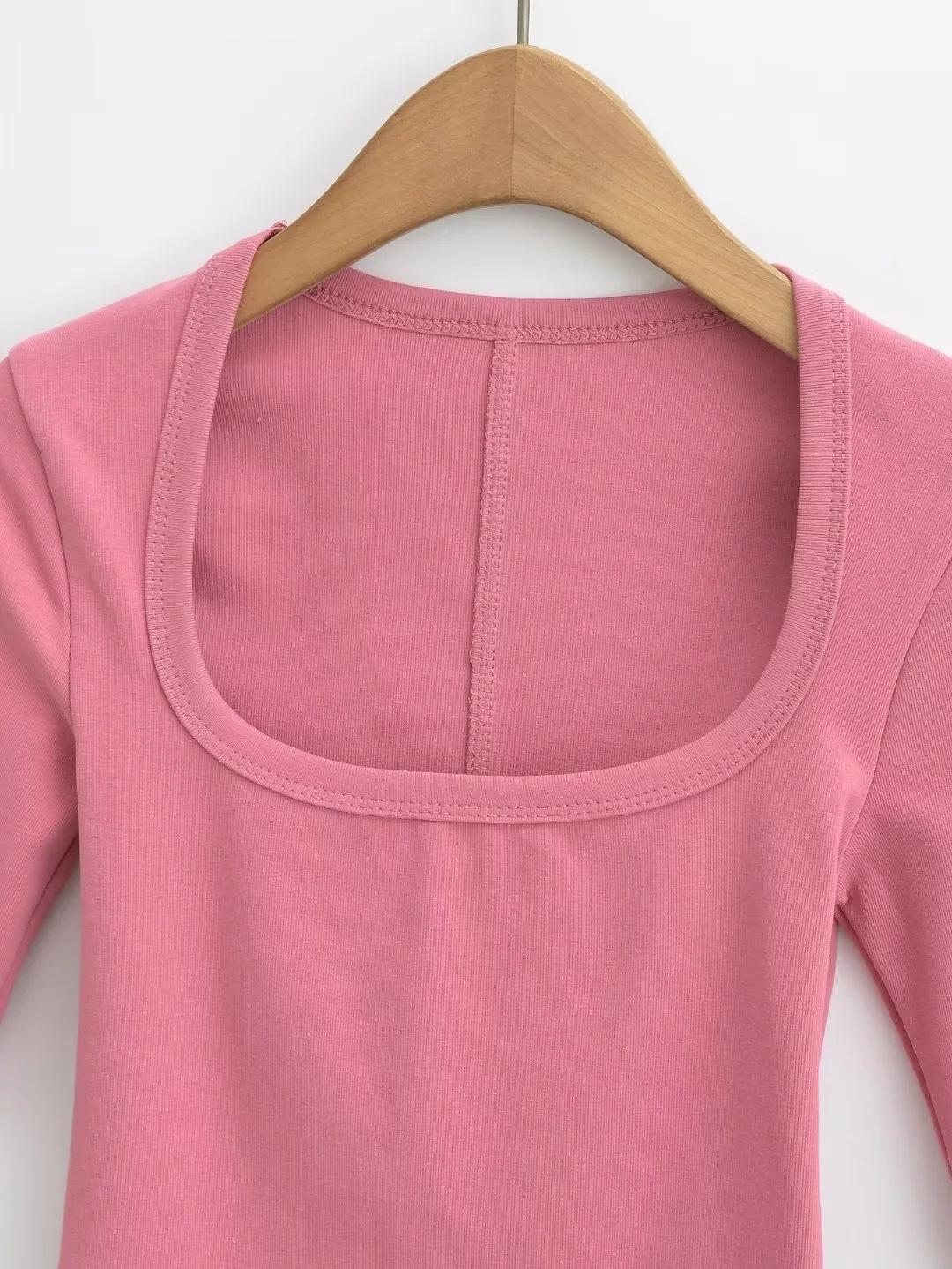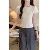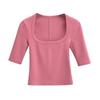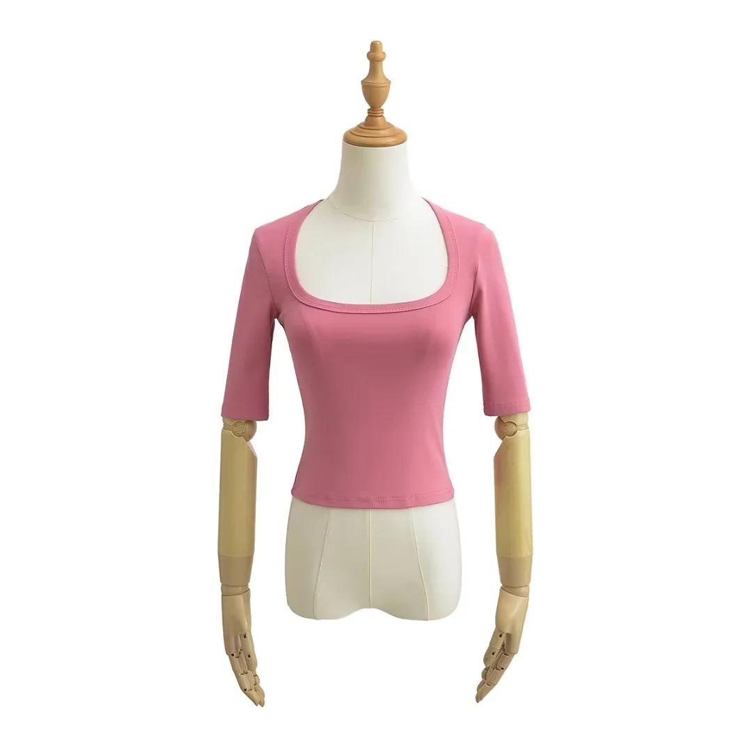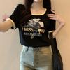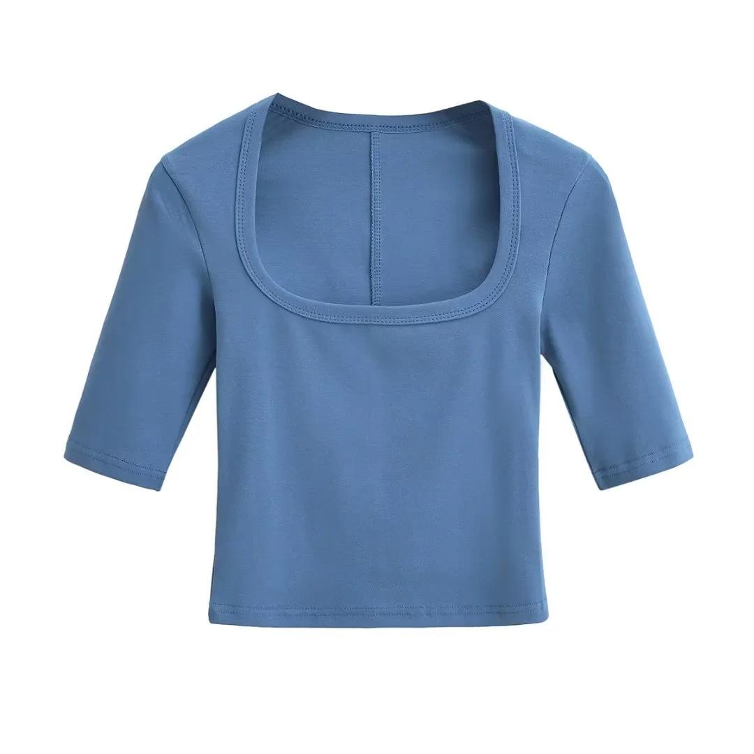 Camiseta de Manga Corta con Hombro Derecho Descubierto para Mujer, Estilo Otoñal, Diseño Elegante, Nuevo Modelo de Nicho, Corte Ajustado, Favorecedora, Top Corto de Moda con Cuello Cuadrado