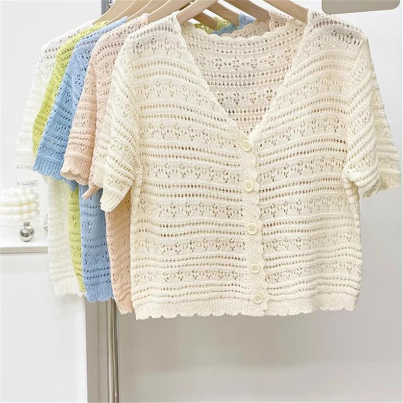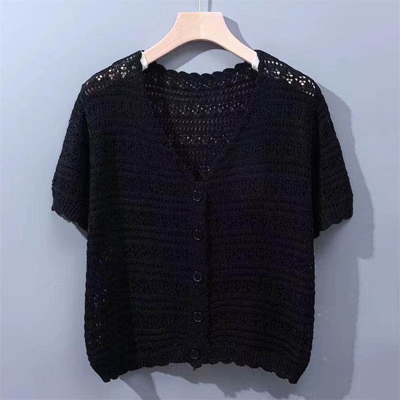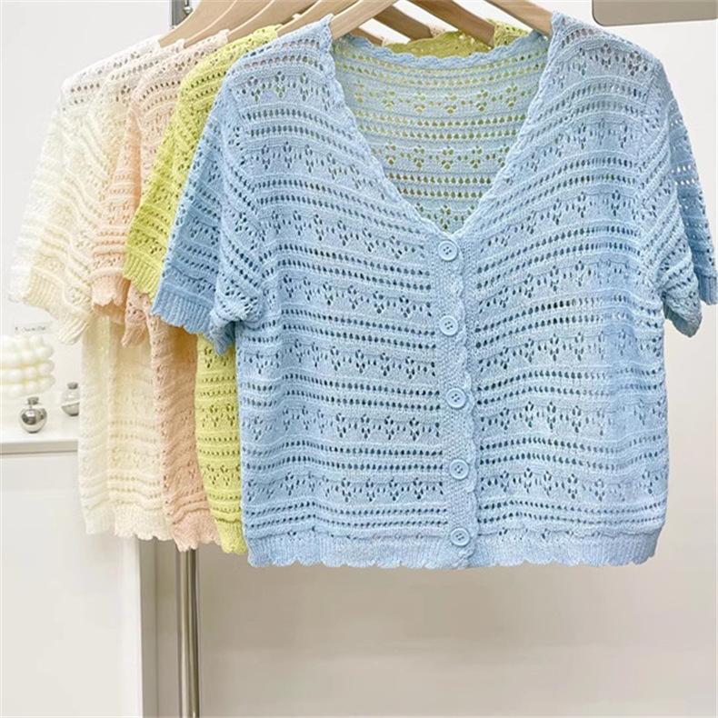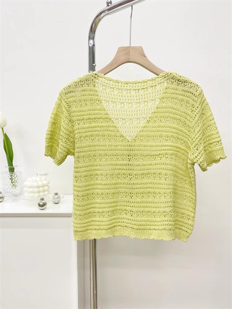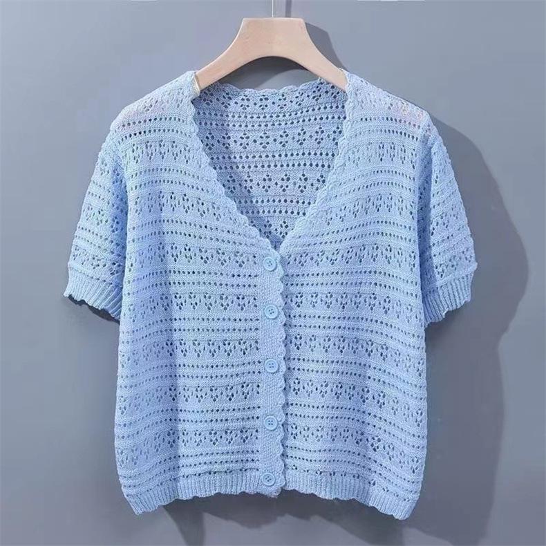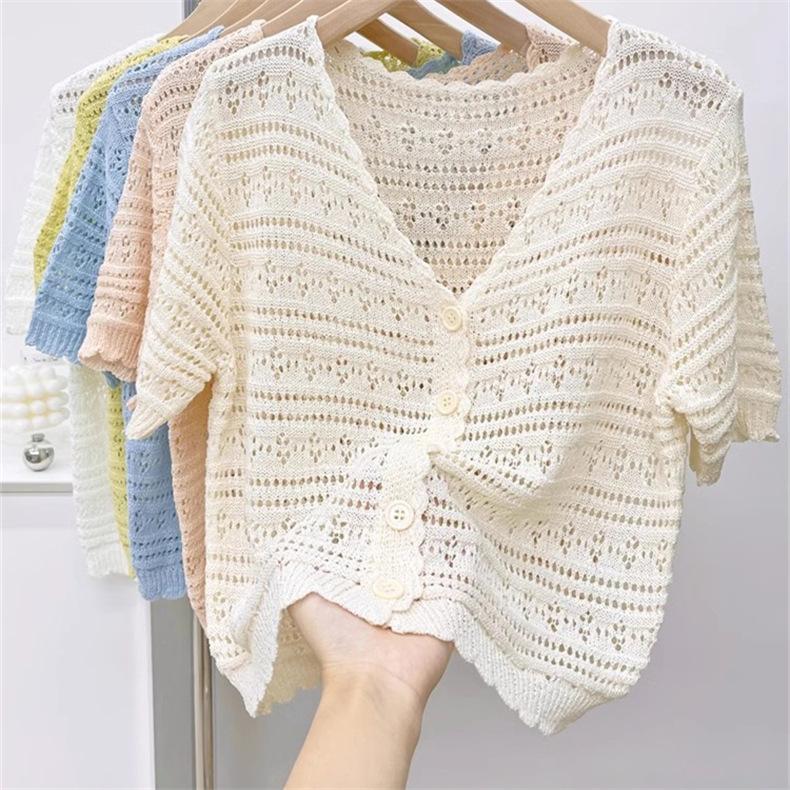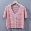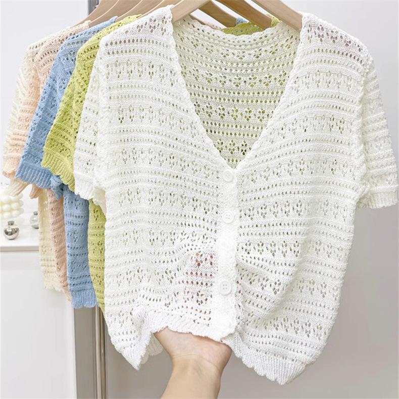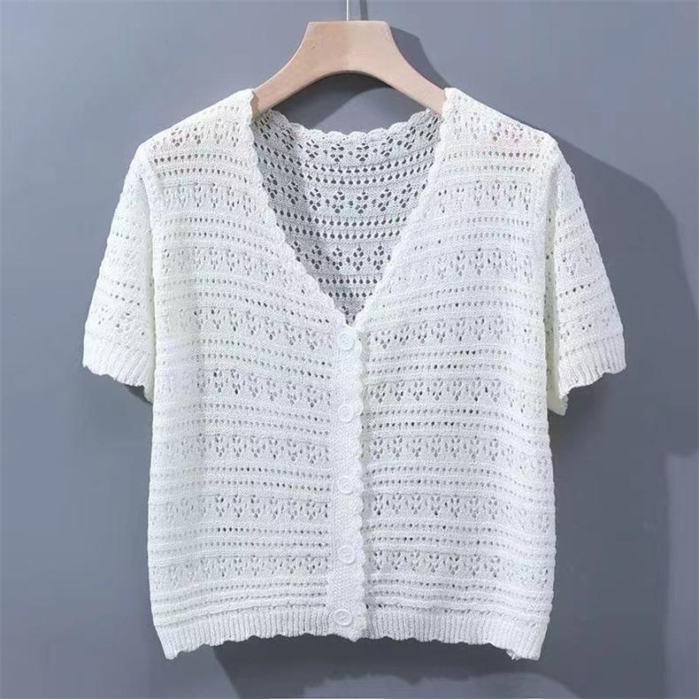 Blusa de Verano con Aberturas 2024 Camiseta de Manga Corta para Mujer Nuevo Cárdigan Tejido de Seda de Hielo Protección Solar Top Corto Versátil