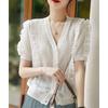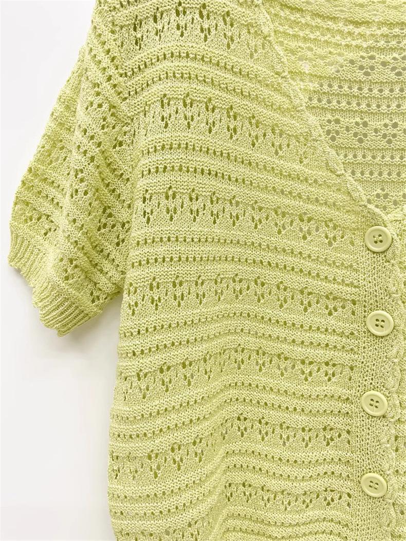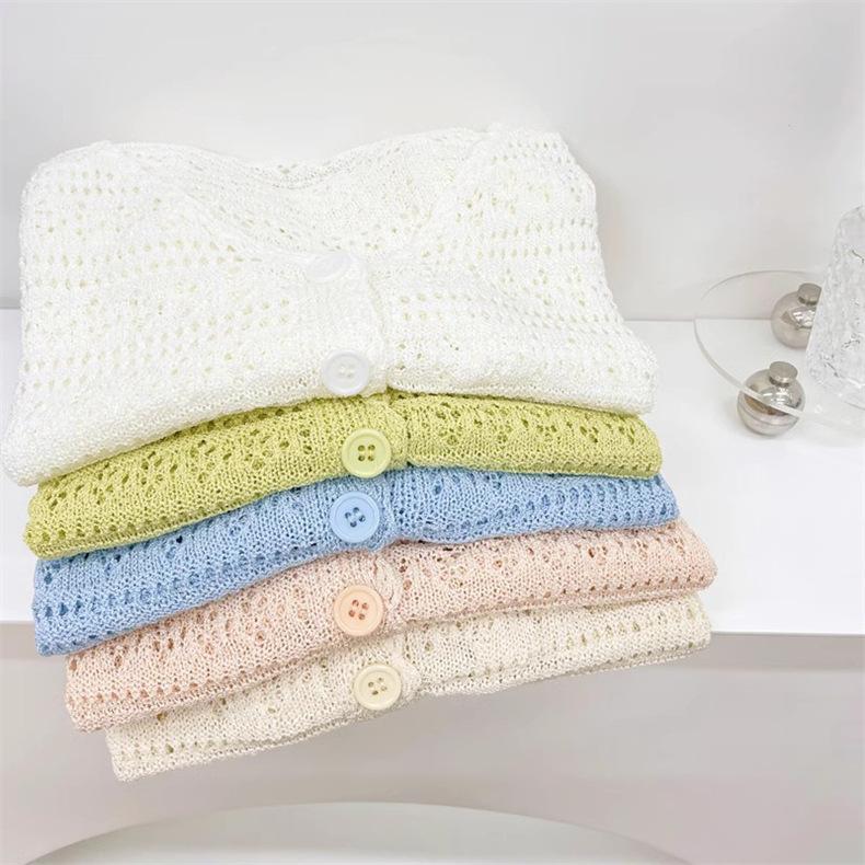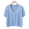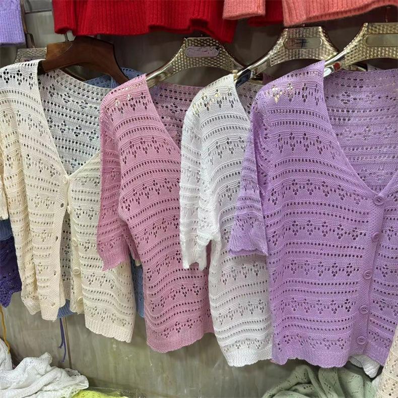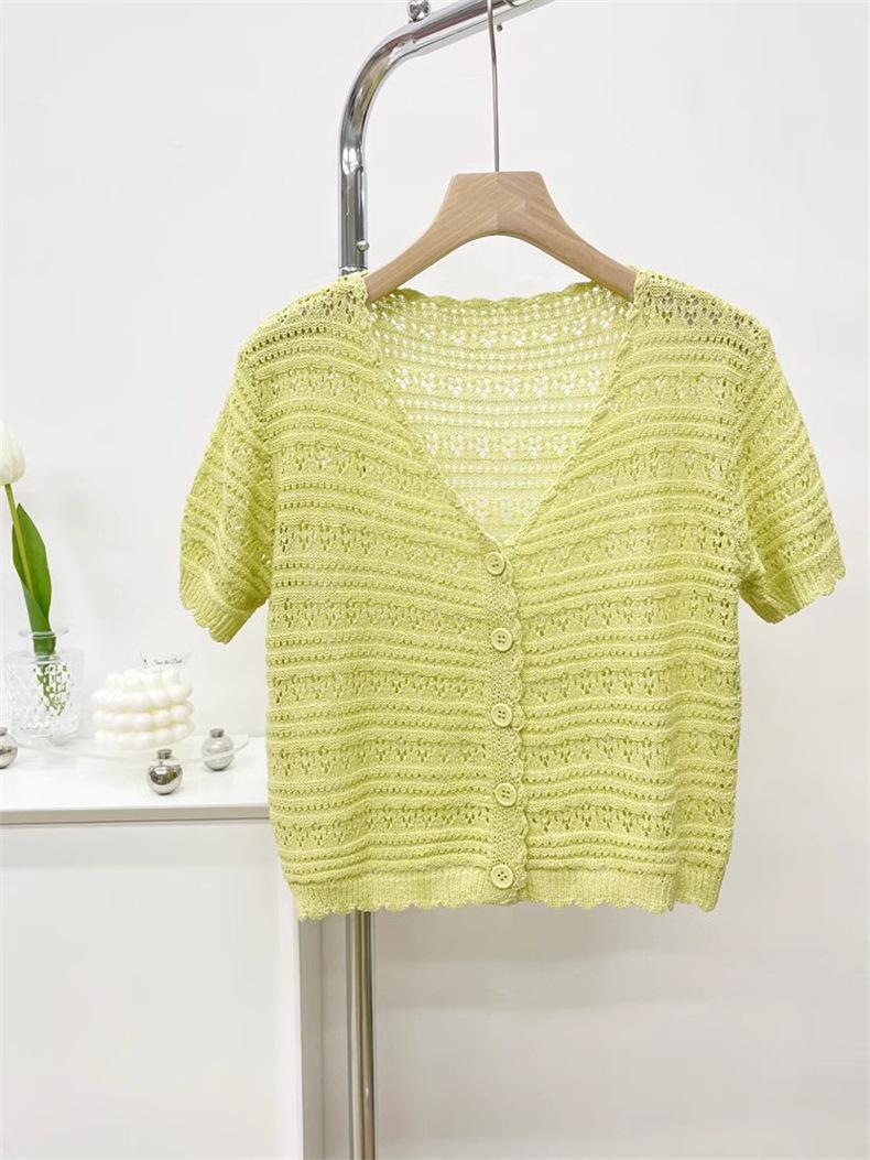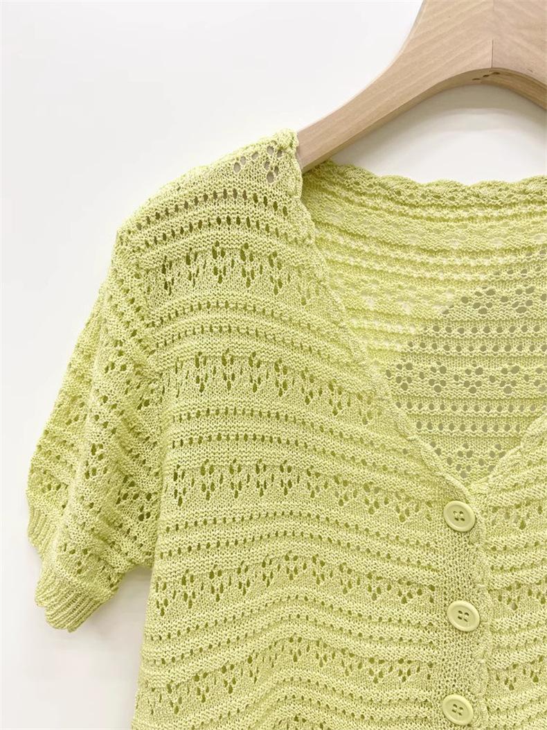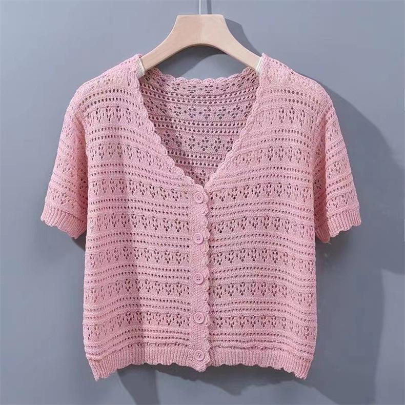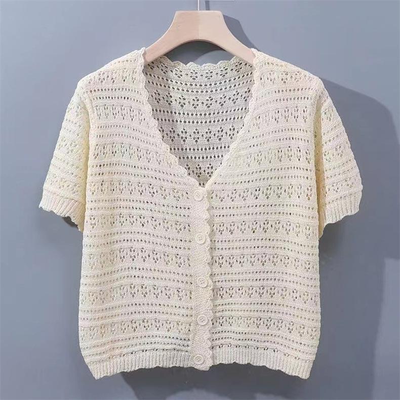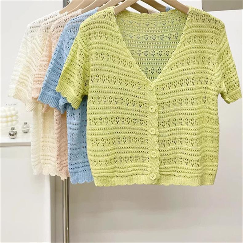 Blusa de Verano con Aberturas 2024 Camiseta de Manga Corta para Mujer Nuevo Cárdigan Tejido de Seda de Hielo Protección Solar Top Corto Versátil