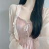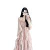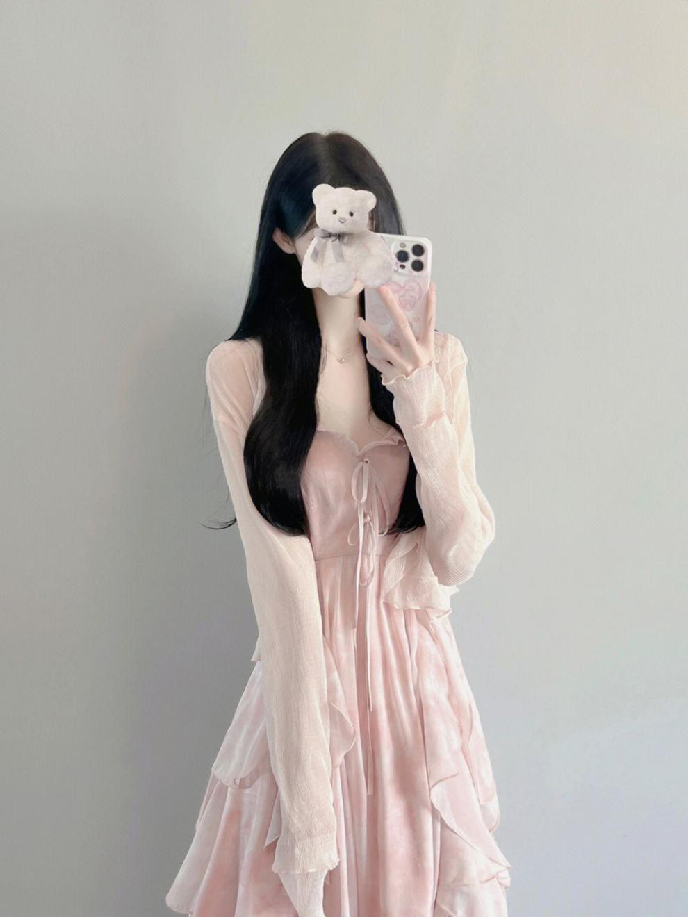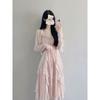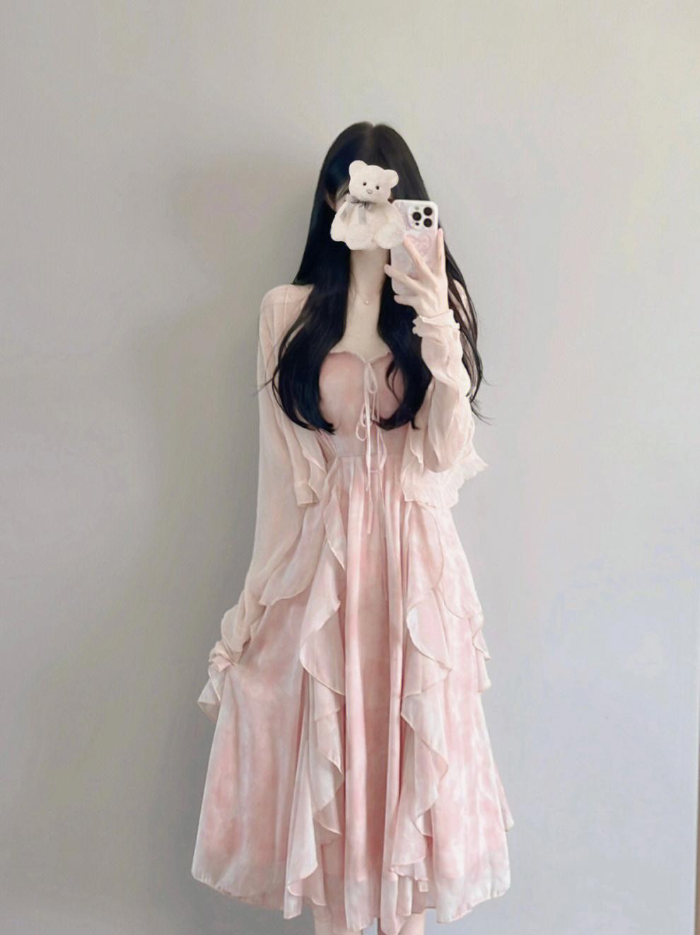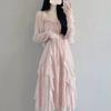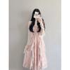 Vestido súper hada con volantes Primavera Temprana Nuevo 2025 Chaqueta Delgada para Mujer Dulce Cintura Tirantes Vestido Largo traje