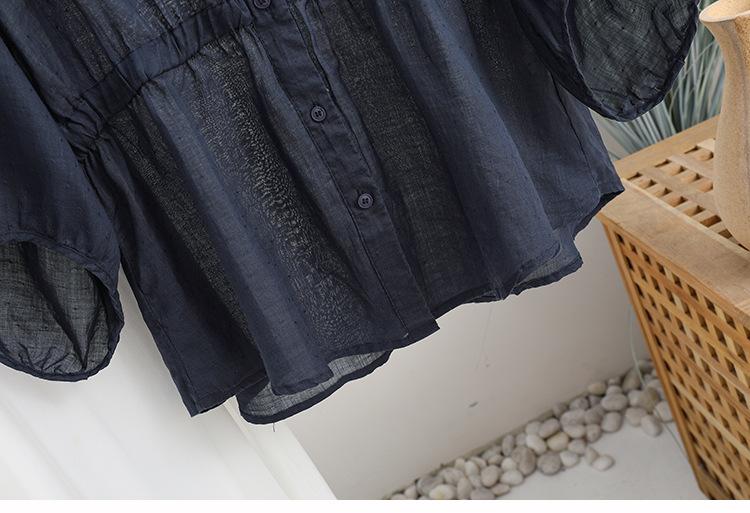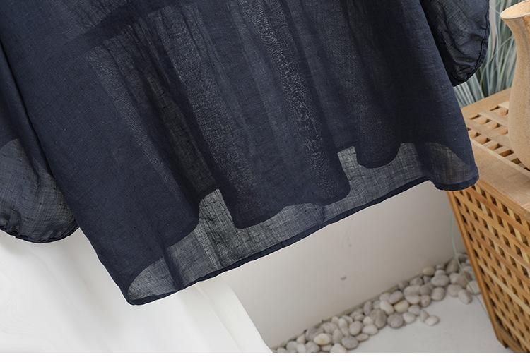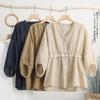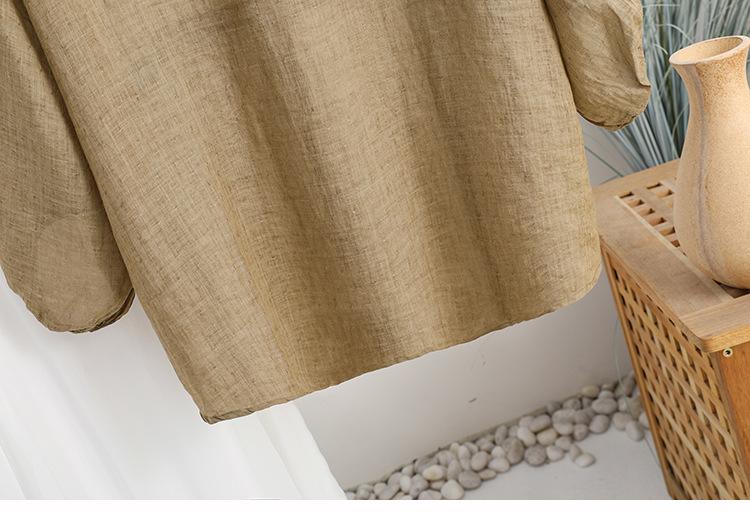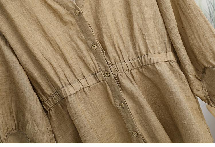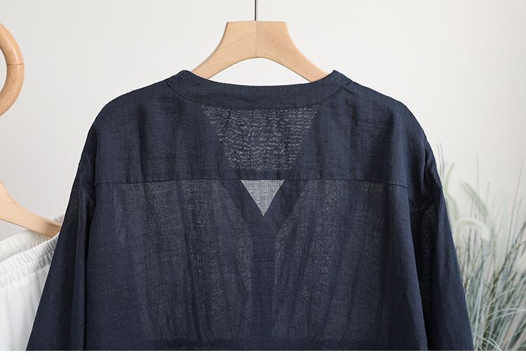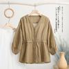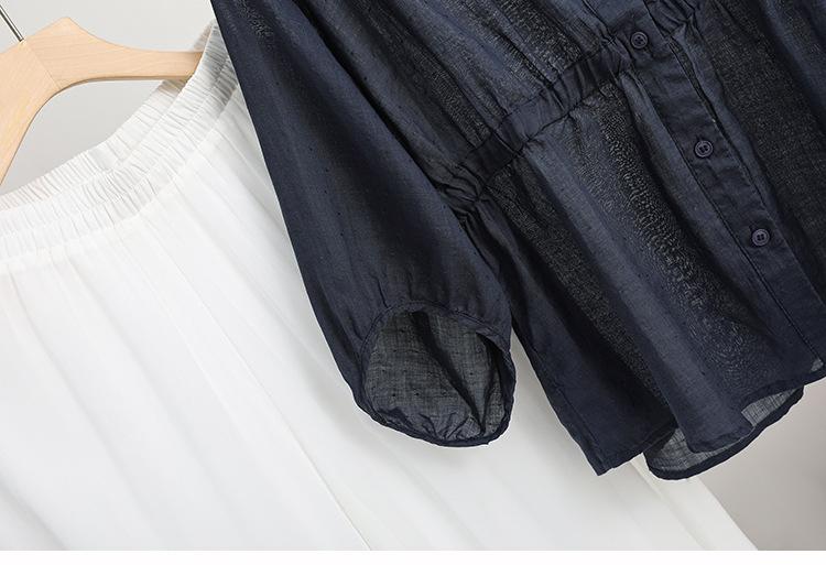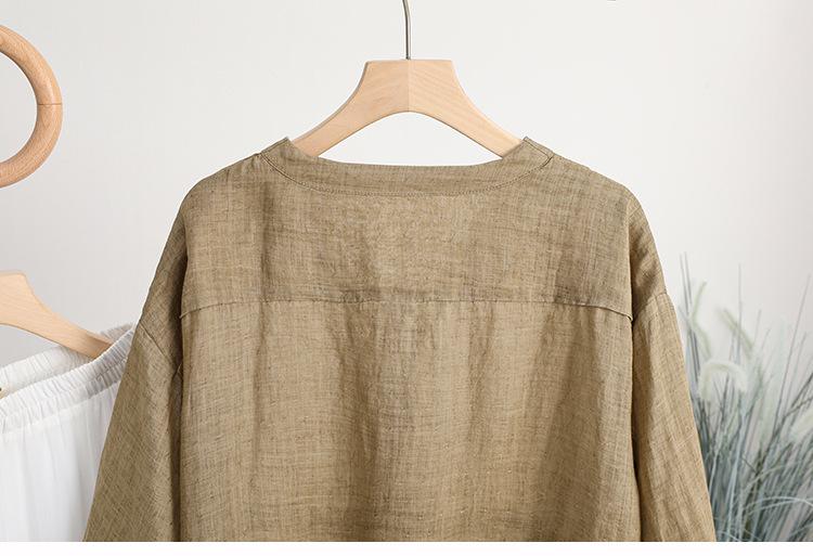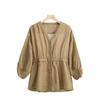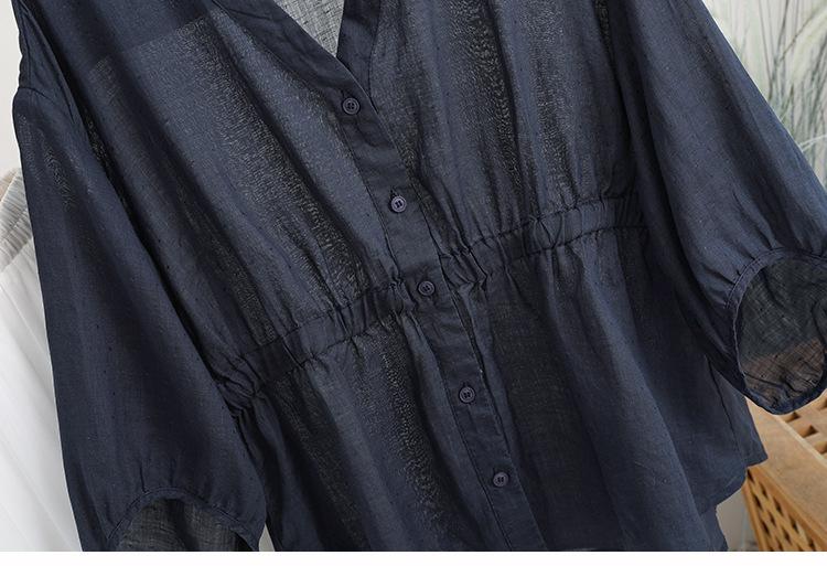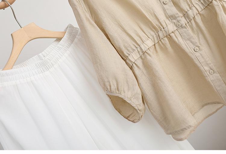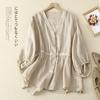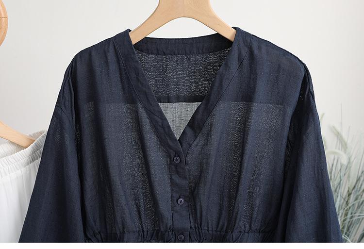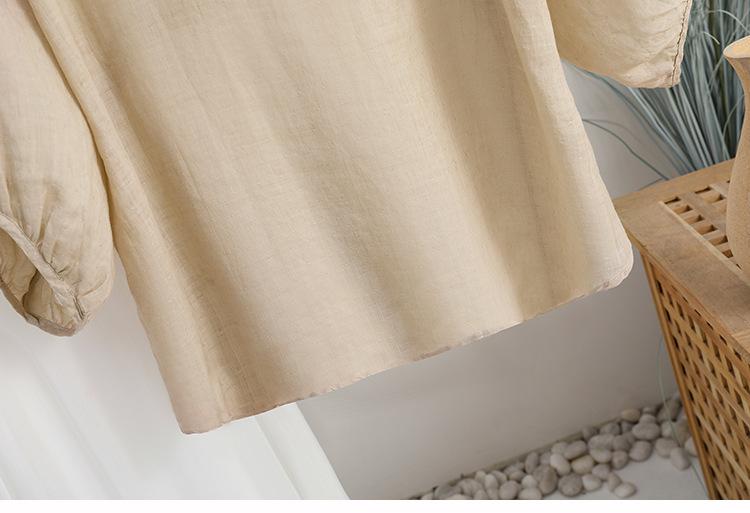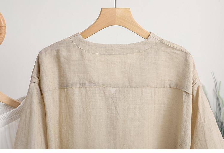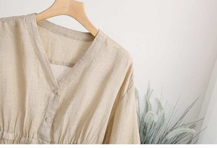 2024 Nuevo Estilo de Verano Algodón y Lino Cuello en V Cintura Camisa de Punto de Cinco Puntos para Mujer, Suelta, Ajustada y Versátil Top de Algodón y Lino