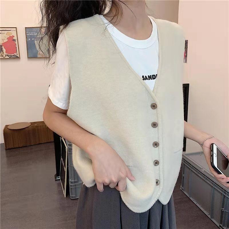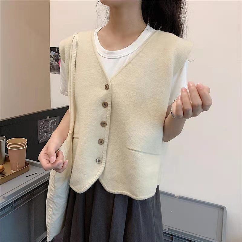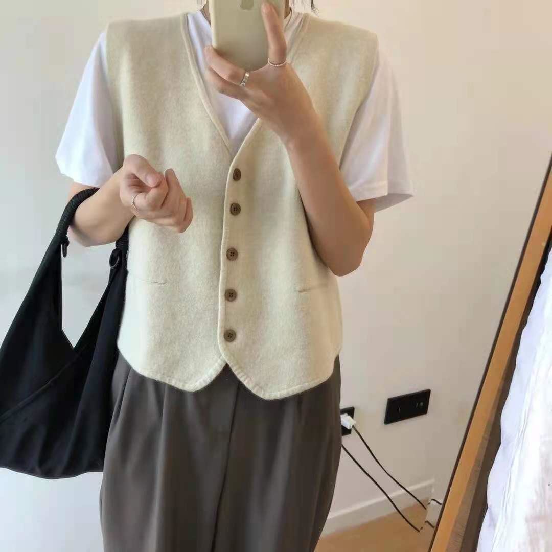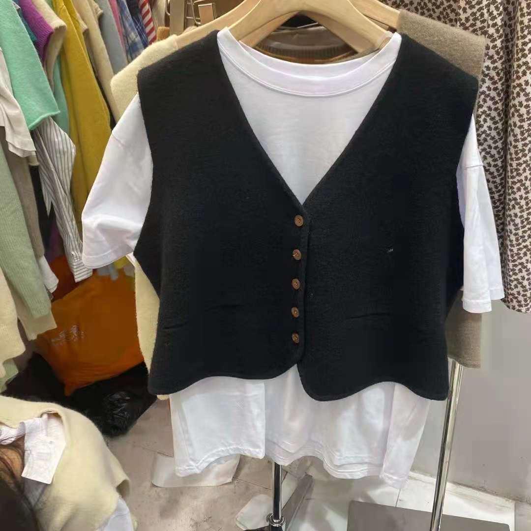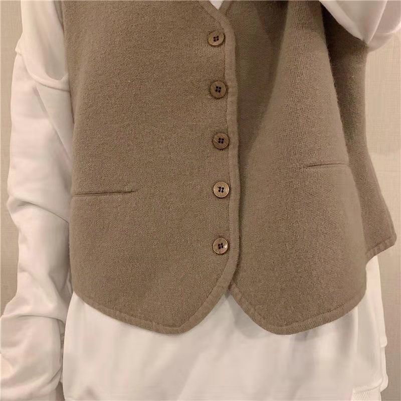 Primavera Nuevo Cárdigan Chaleco de Punto en Capas para Mujer 2024 Retro Holgado Cuello en V Sin Mangas Suéter con Chaleco