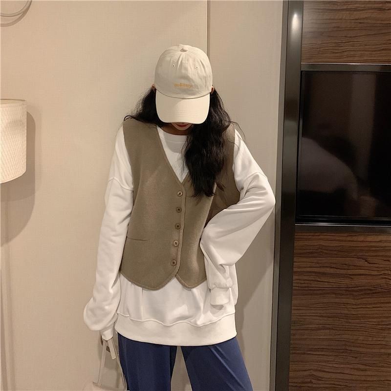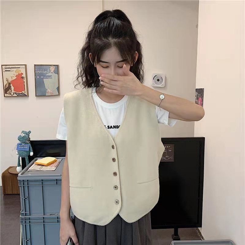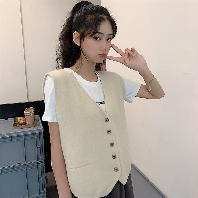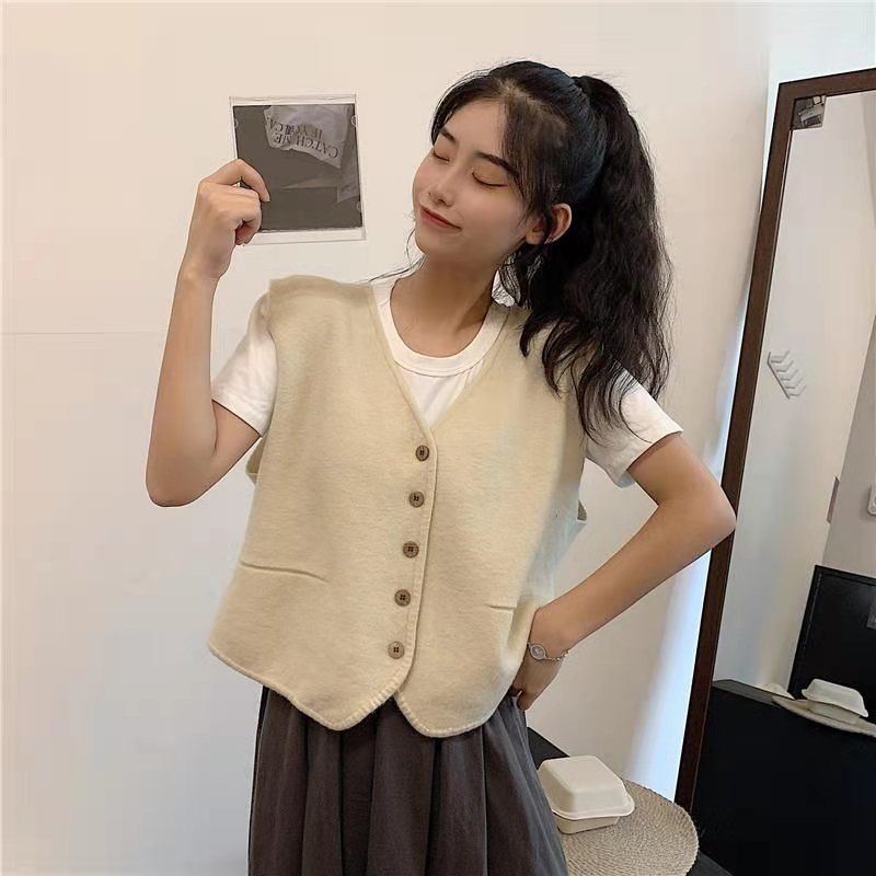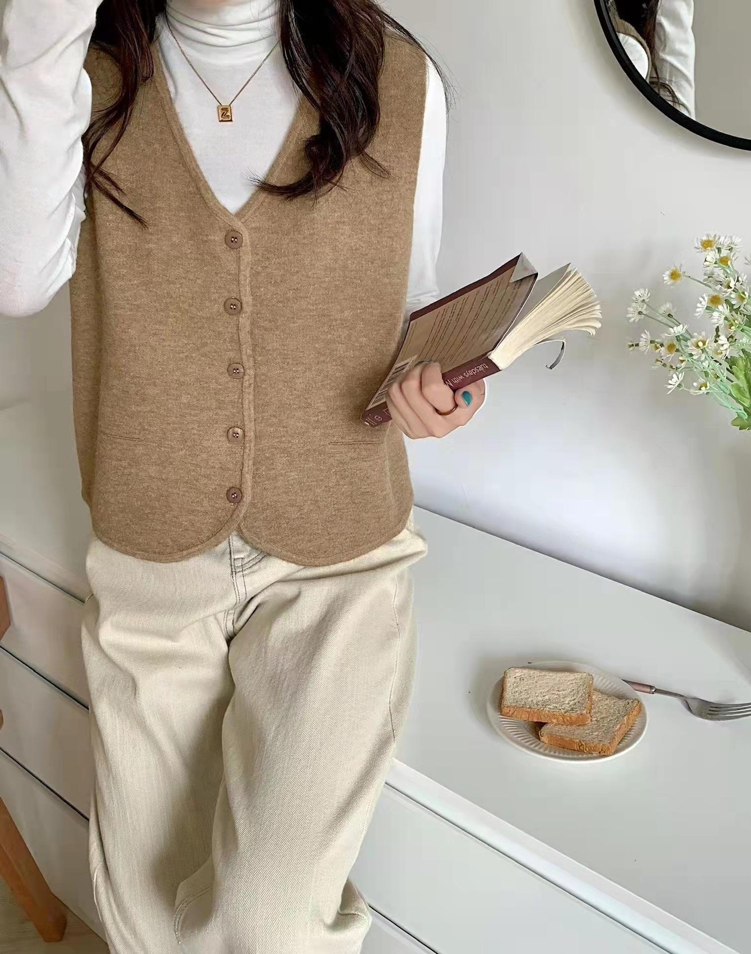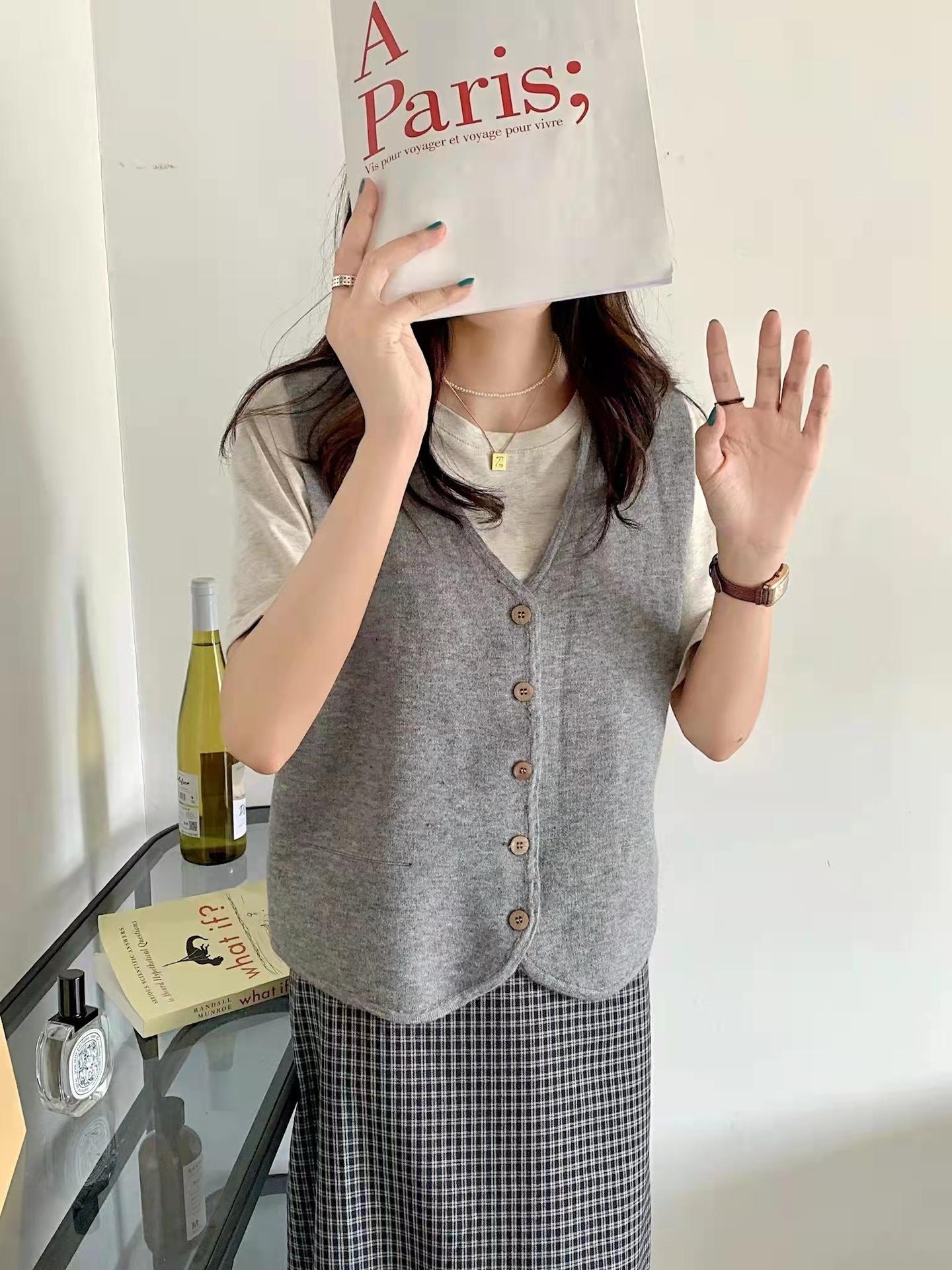 Primavera Nuevo Cárdigan Chaleco de Punto en Capas para Mujer 2024 Retro Holgado Cuello en V Sin Mangas Suéter con Chaleco