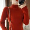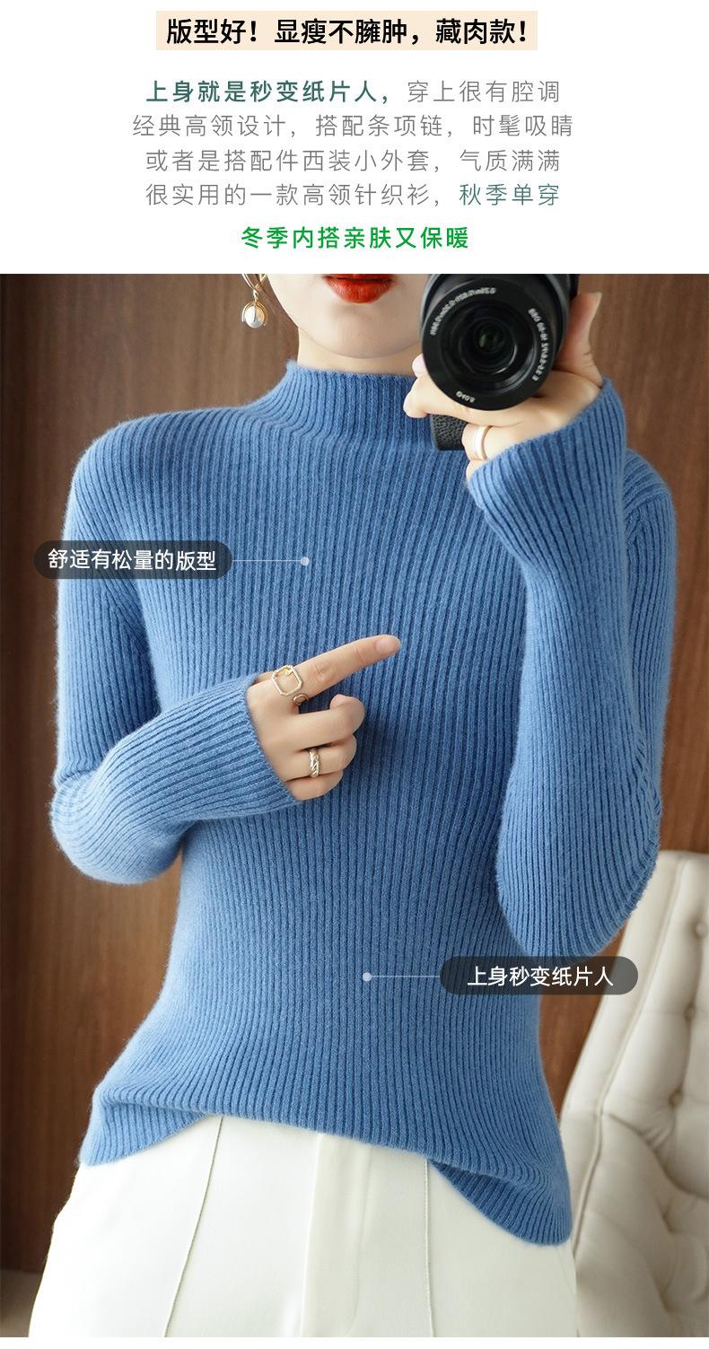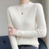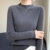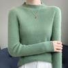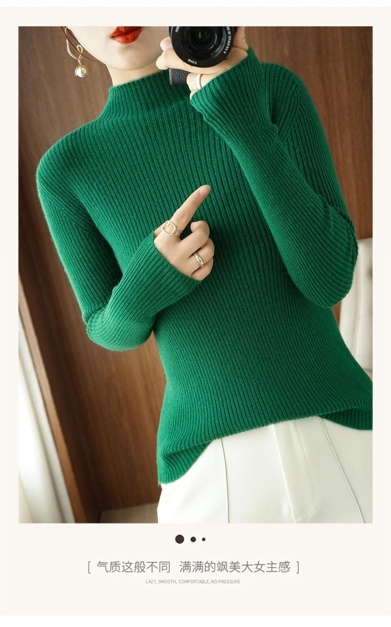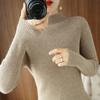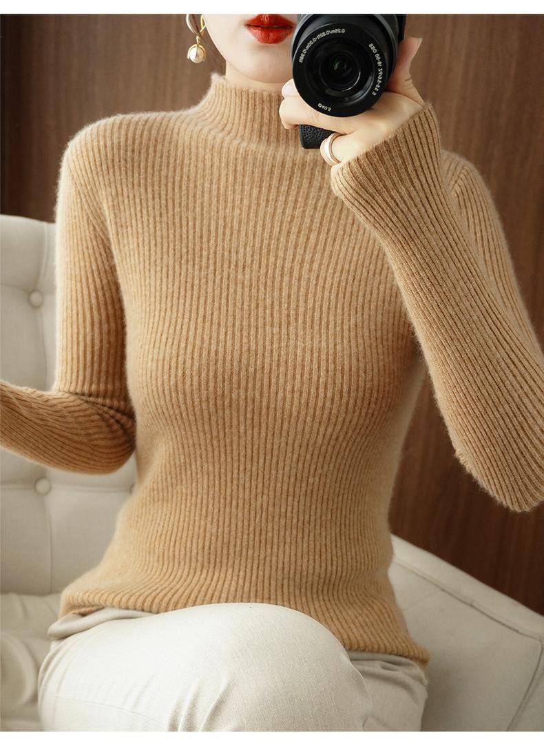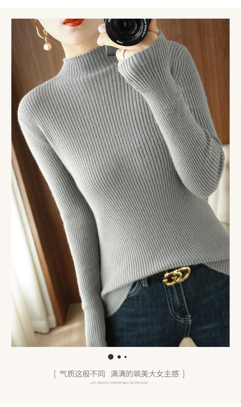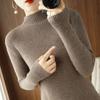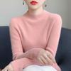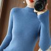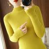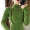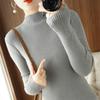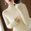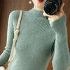 Suéter de rayas de estilo coreano nuevo para otoño e invierno 2025 con cuello medio alto para mujer, jersey ajustado corto de punto base con mangas largas