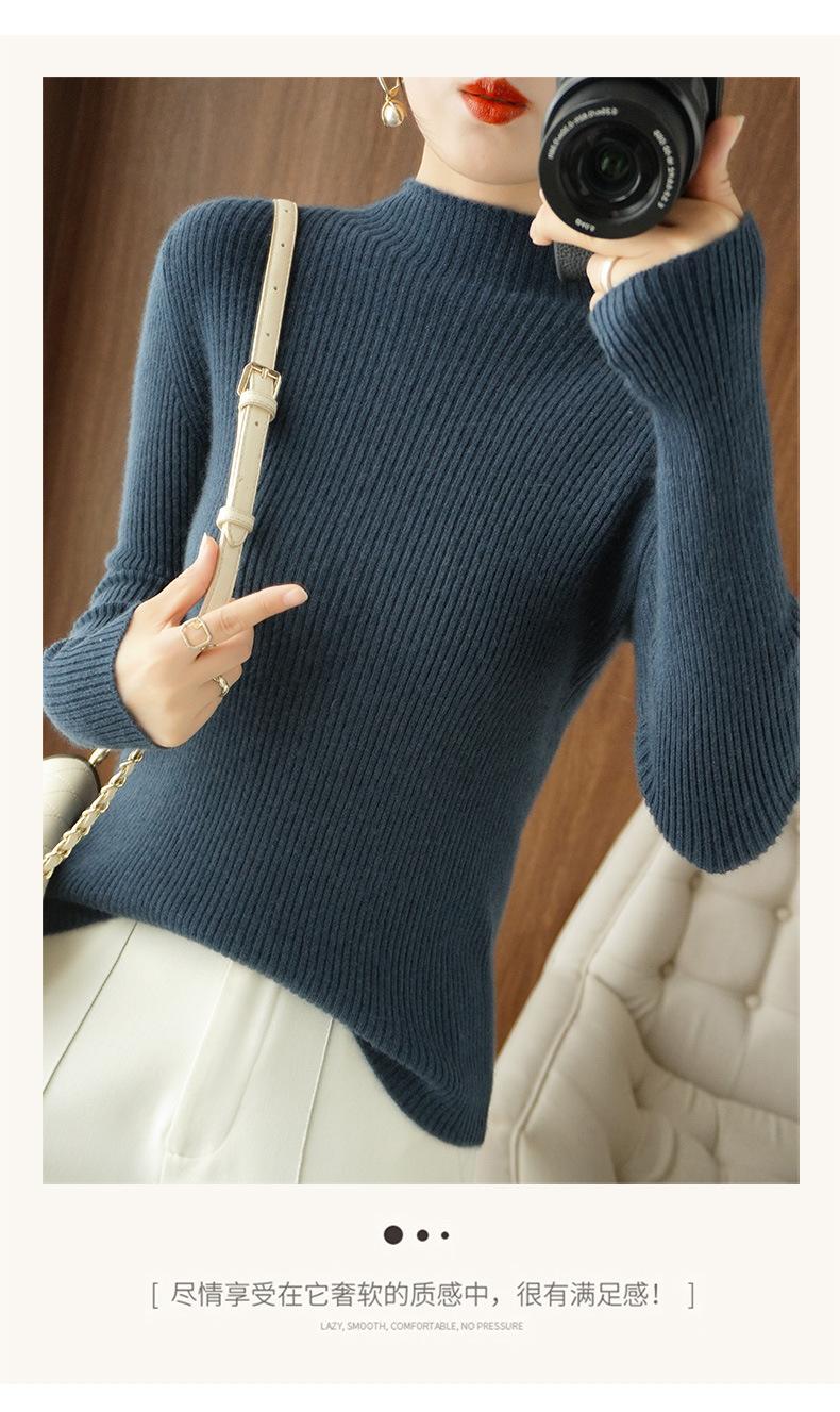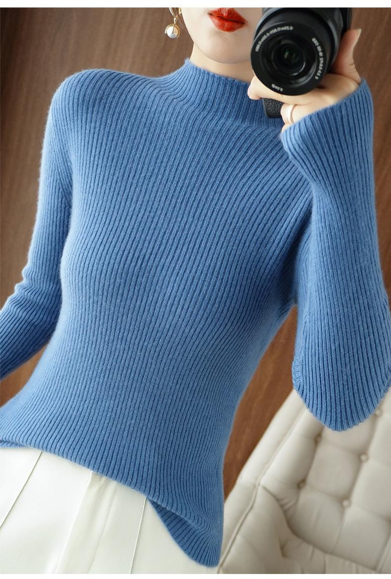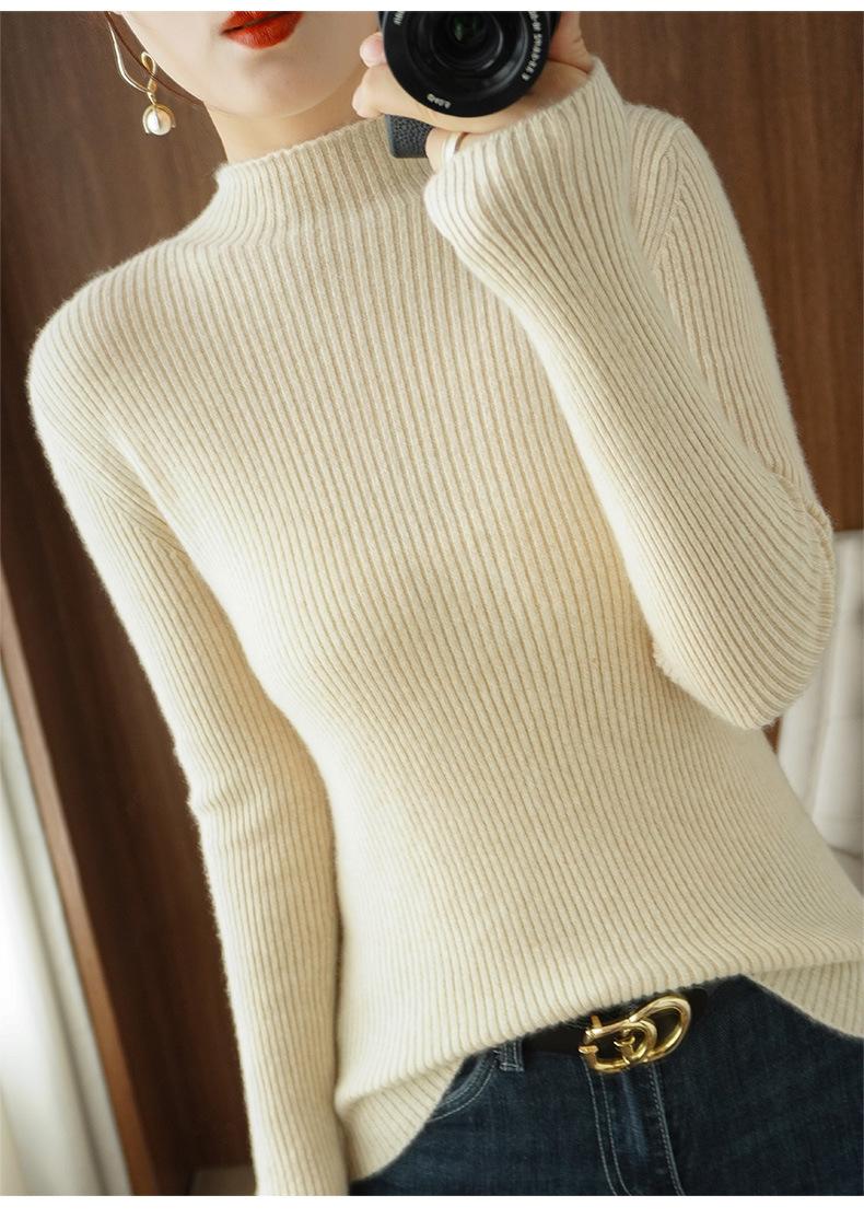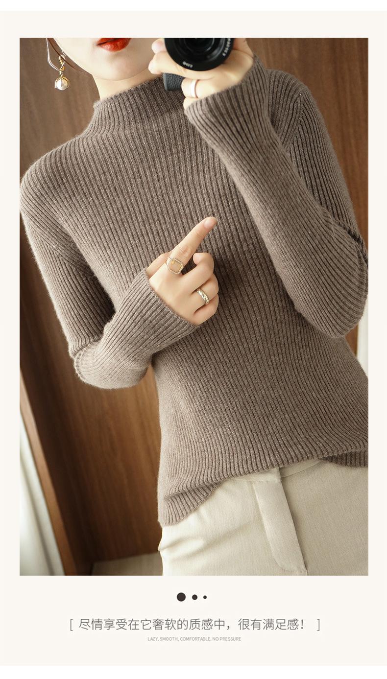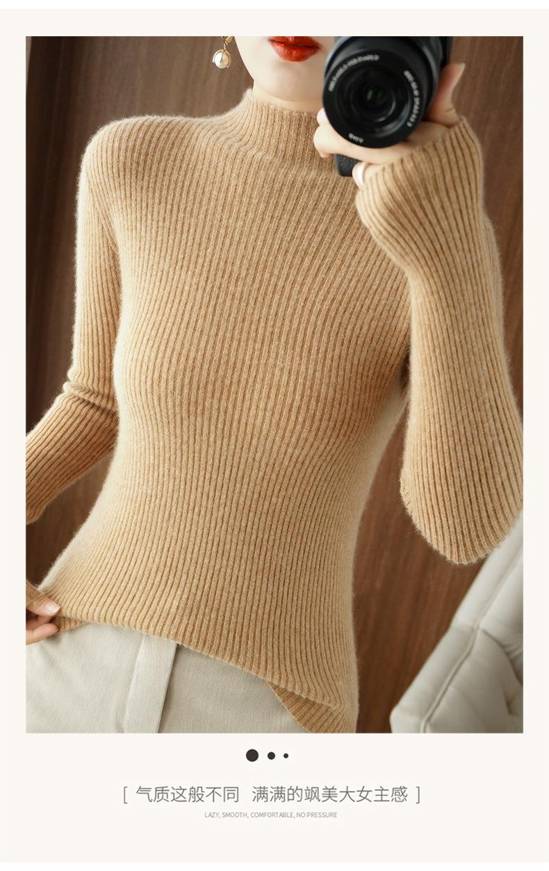 Suéter de rayas de estilo coreano nuevo para otoño e invierno 2025 con cuello medio alto para mujer, jersey ajustado corto de punto base con mangas largas