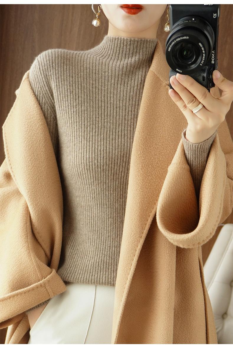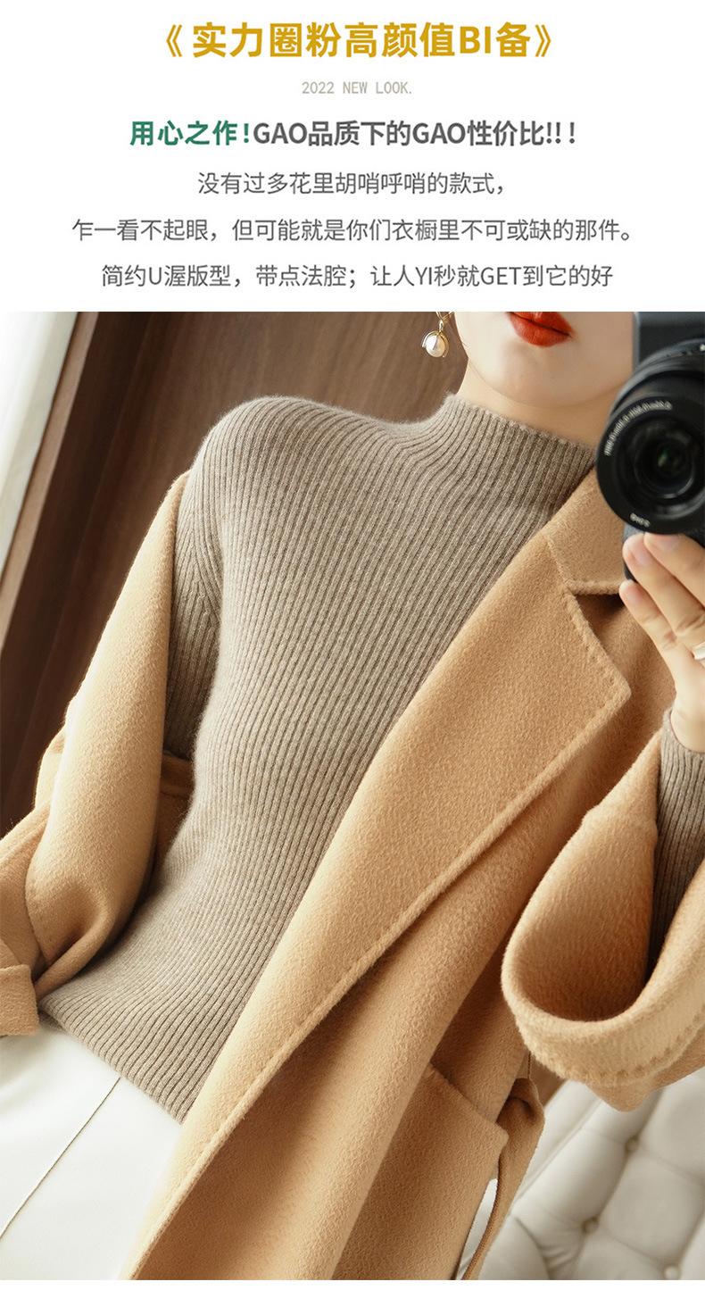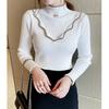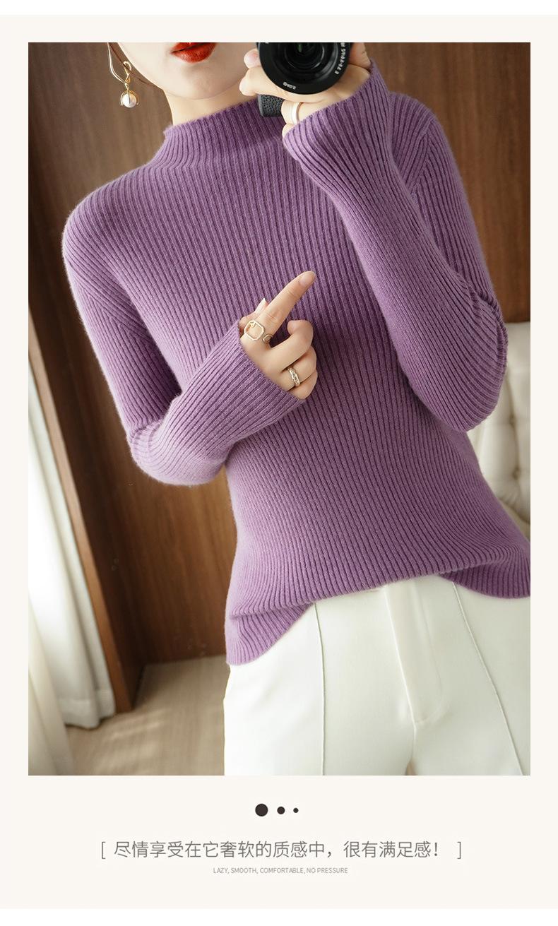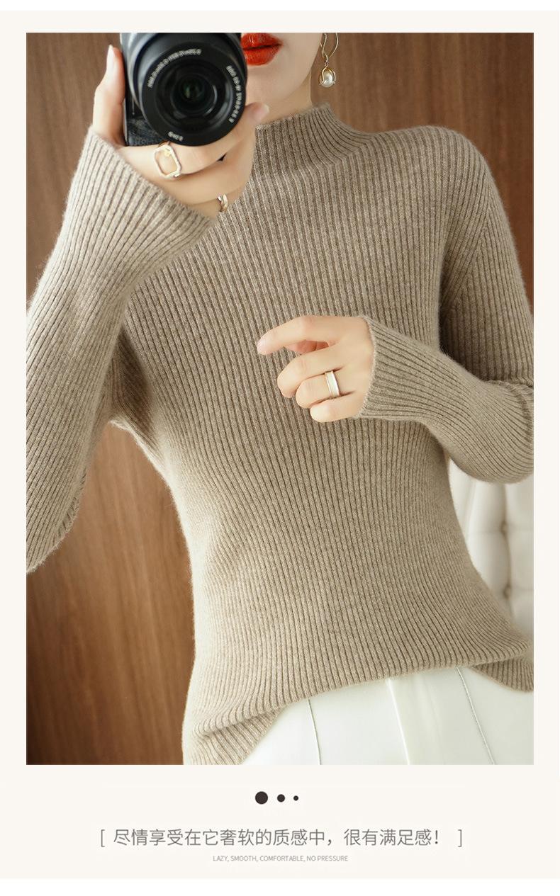 Suéter de rayas de estilo coreano nuevo para otoño e invierno 2025 con cuello medio alto para mujer, jersey ajustado corto de punto base con mangas largas