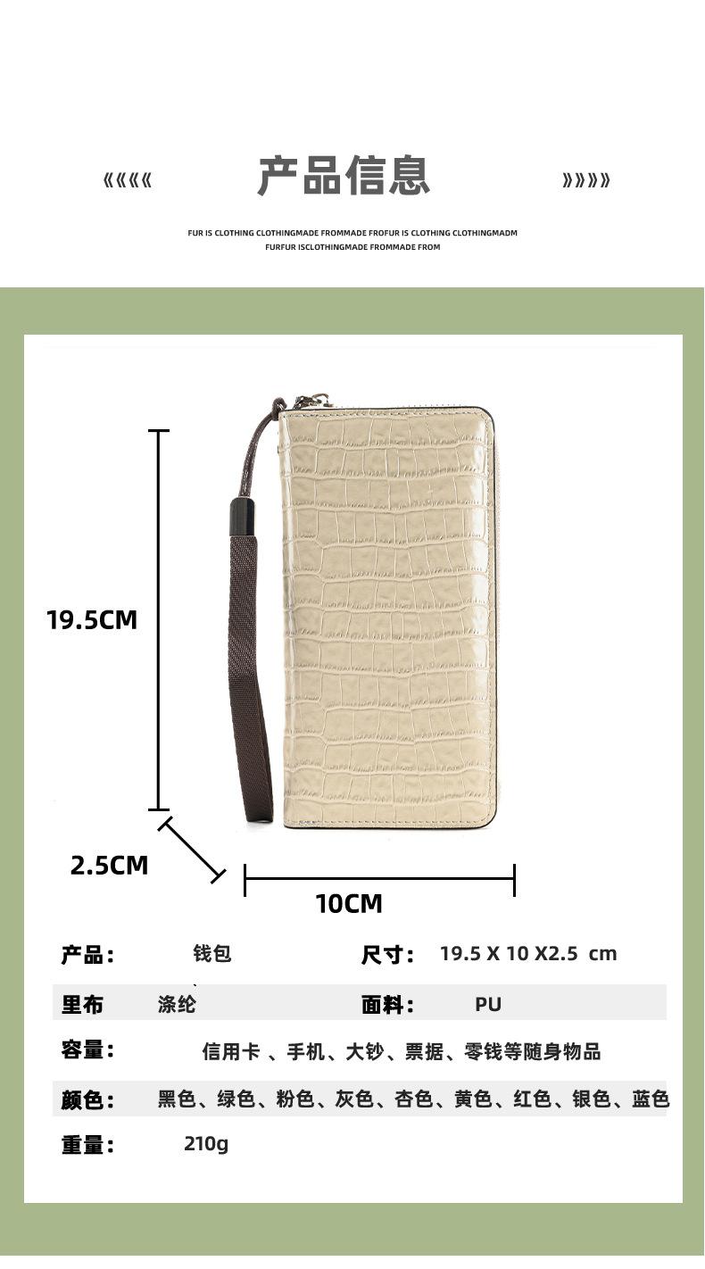 Venta caliente transfronteriza de Amazon billetera larga para mujer billetera de mano patrón cocodrilo bolsa con cremallera 2023 Nuevo