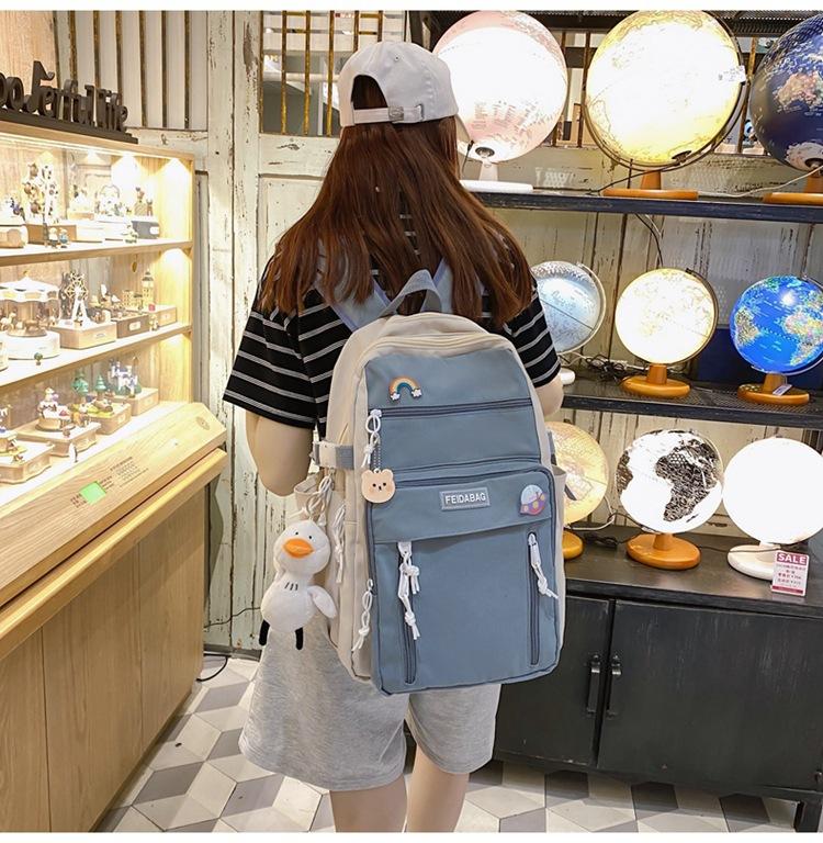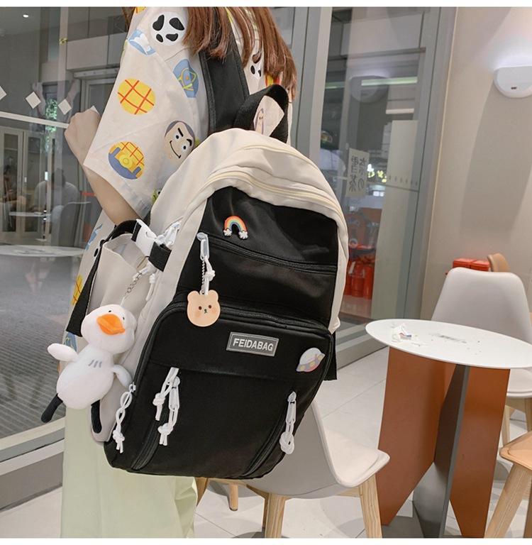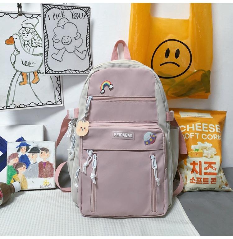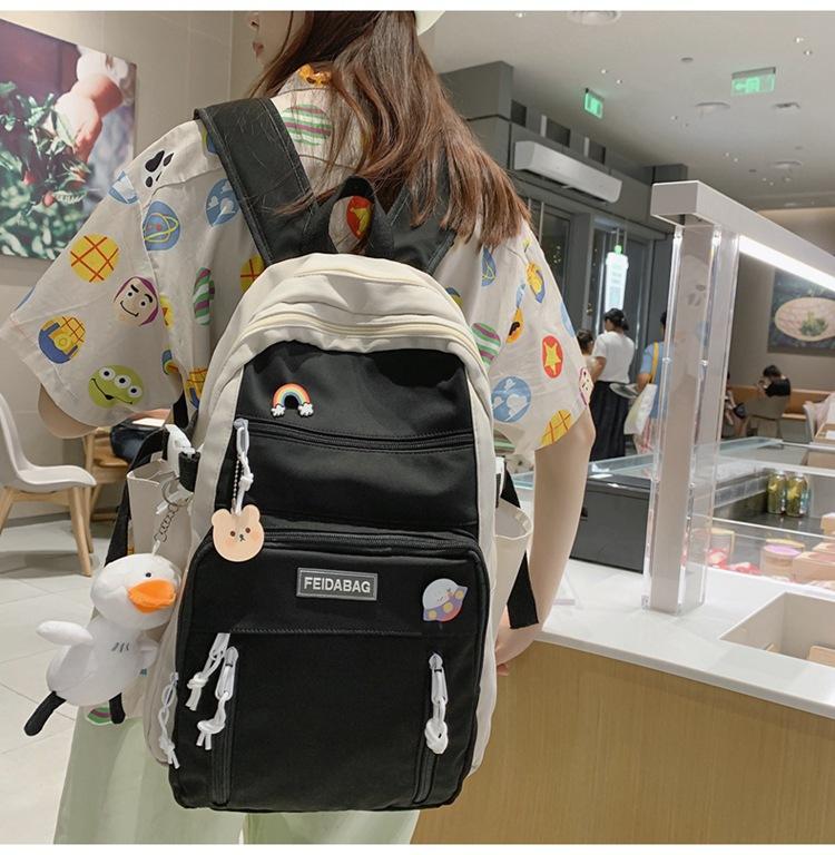 Mochila escolar de estilo coreano para mujer, nueva mochila de nailon de gran capacidad Harajuku para estudiantes de secundaria, mochila informal de estilo coreano para estudiantes de secundaria.