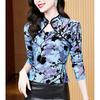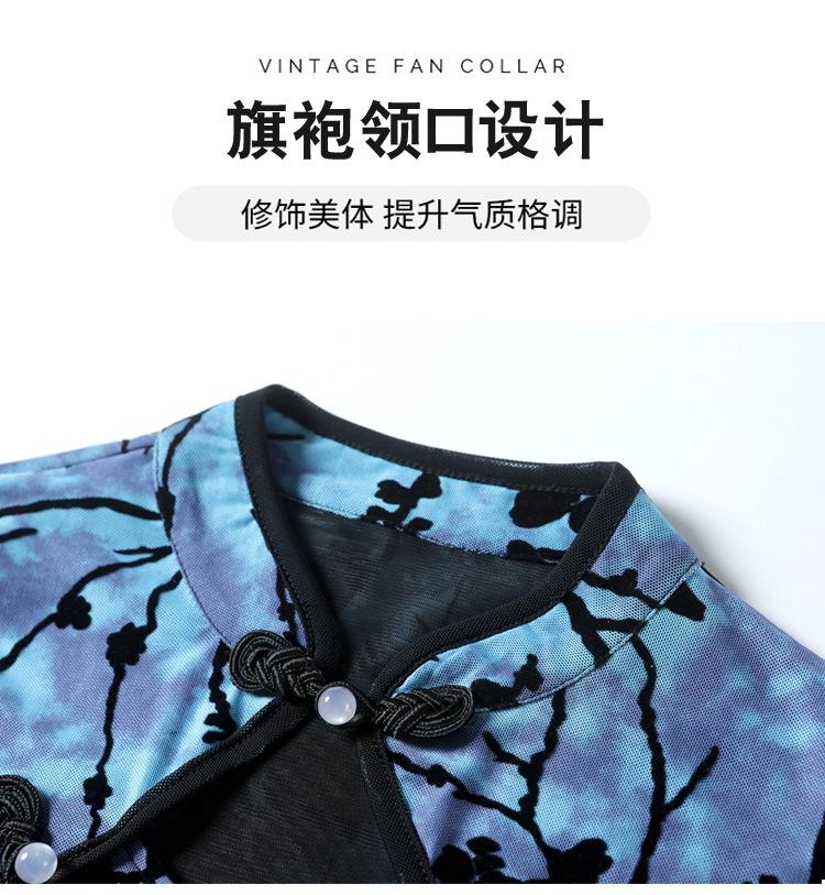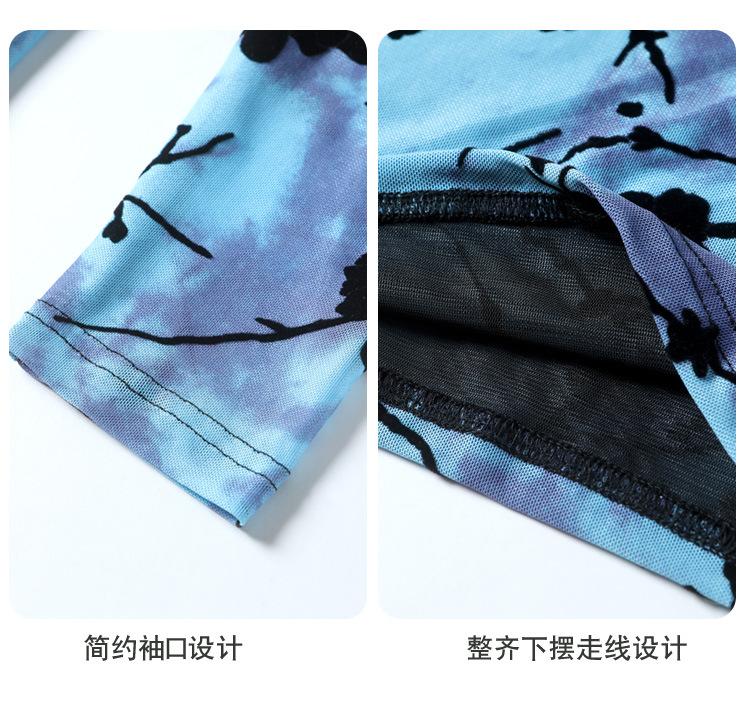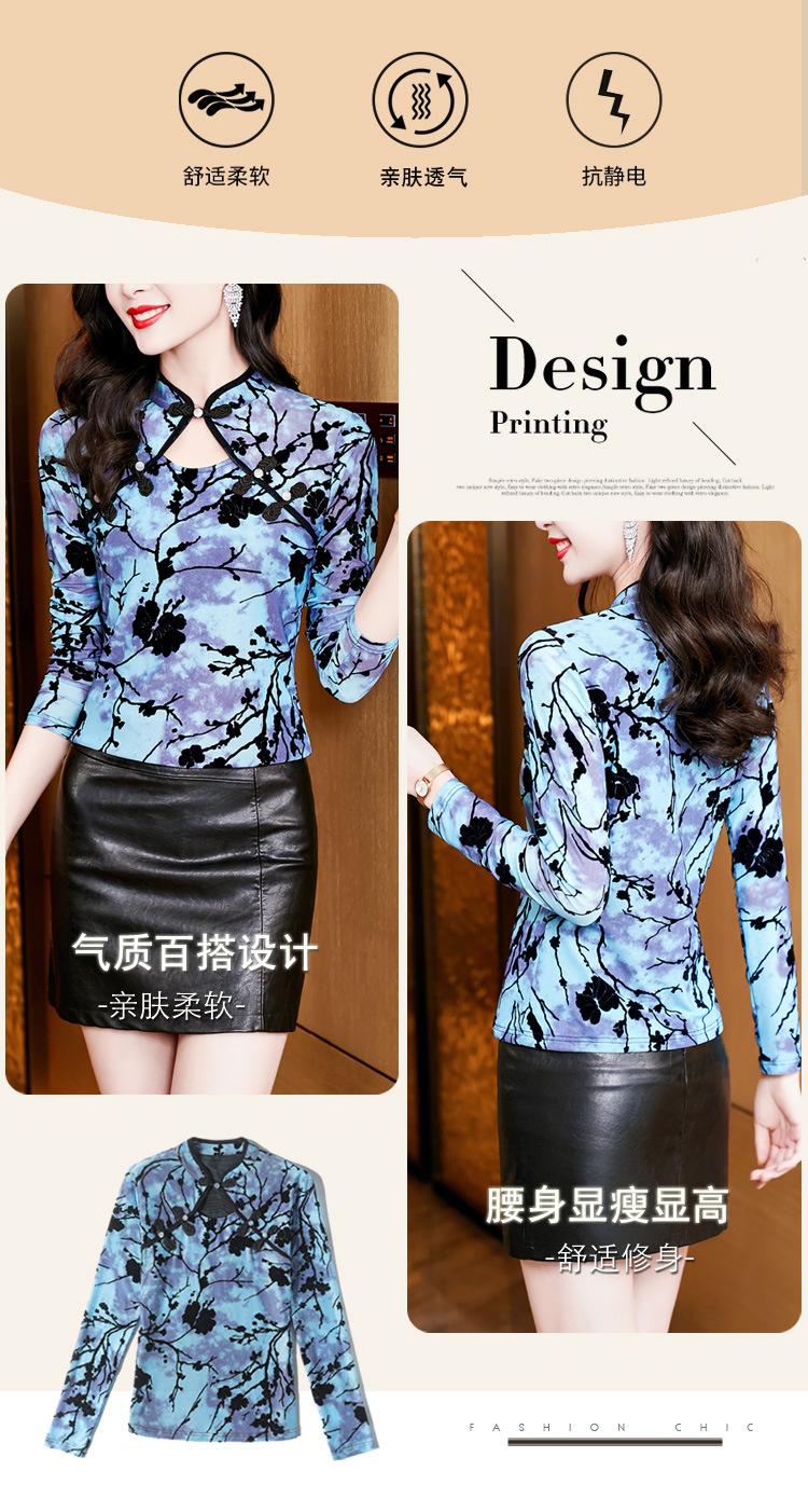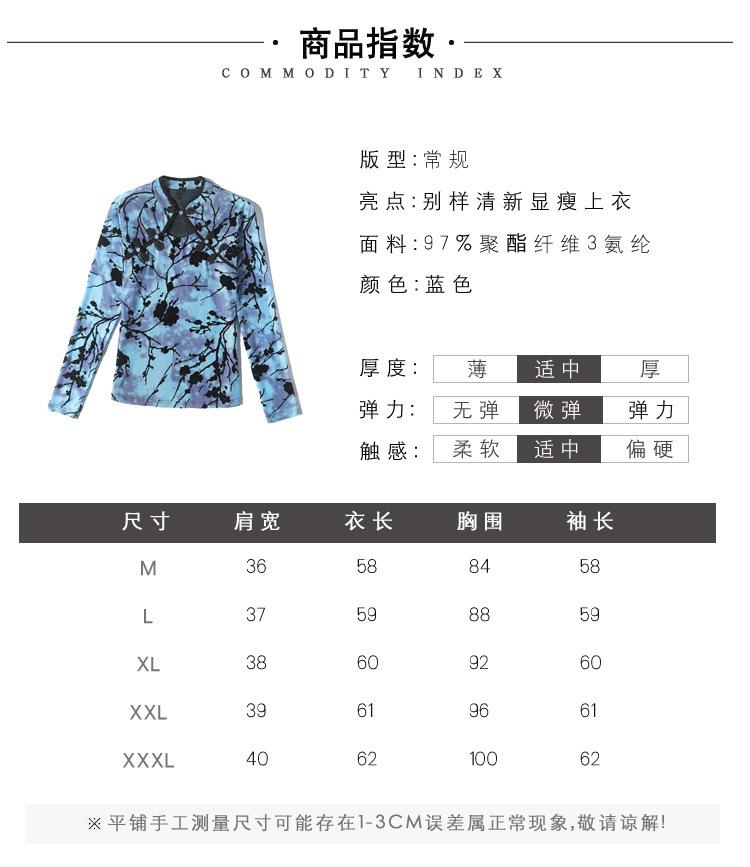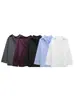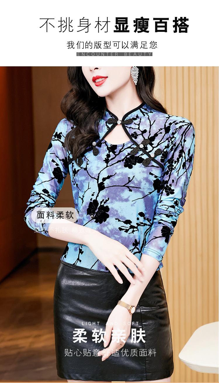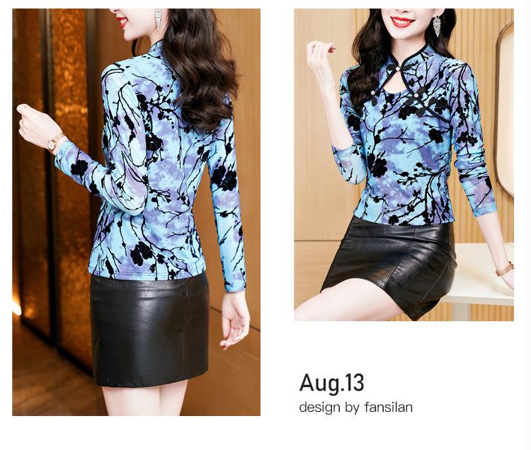 Nuevo Otoño 2023 Estilo Retro Occidental Más Fácil de Combinar Azul Chic Botón Manga Larga Malla Moda Camiseta Básica de Mujer