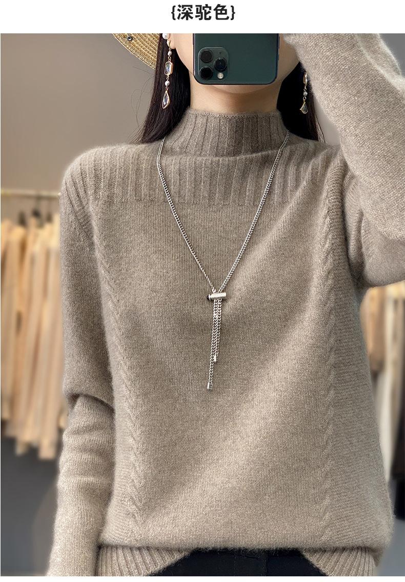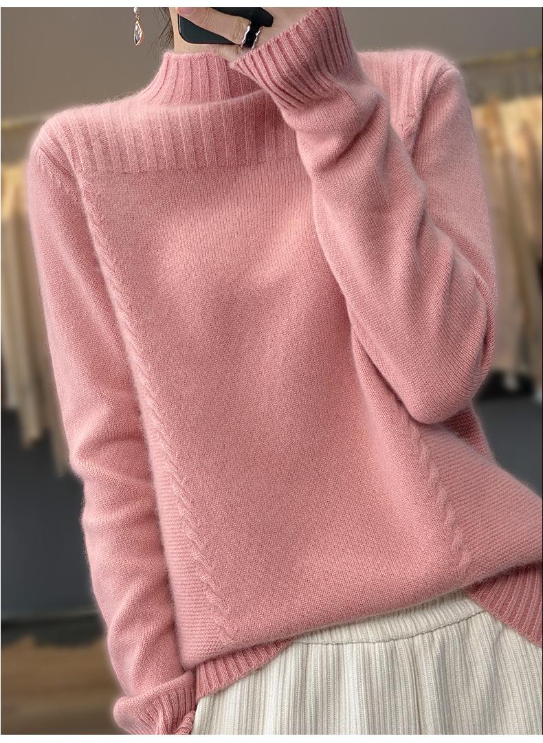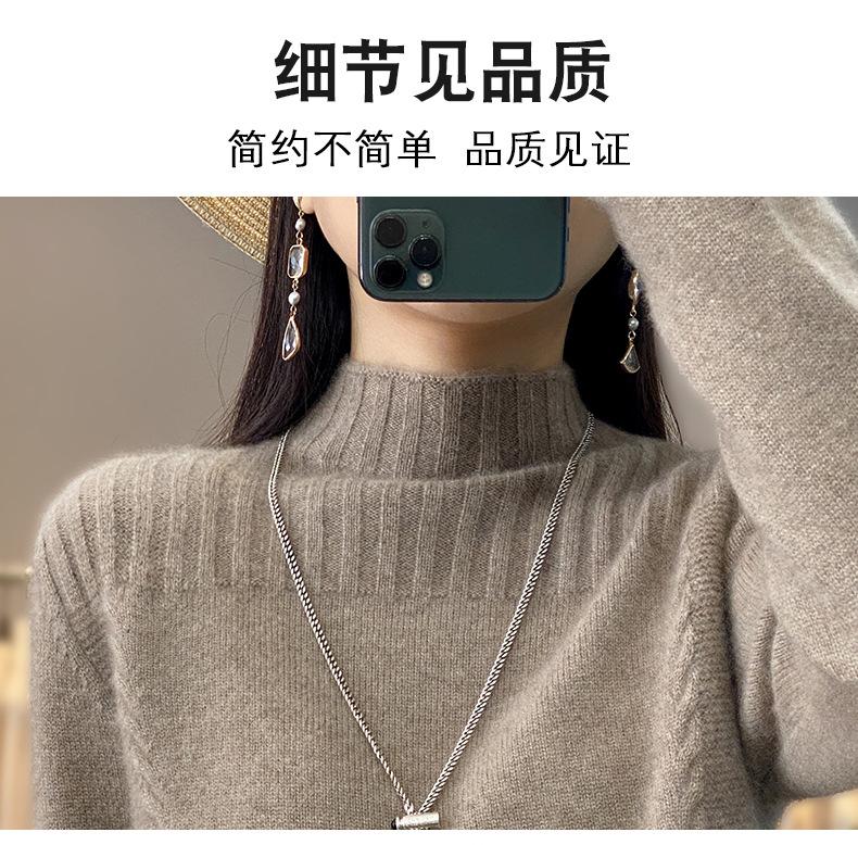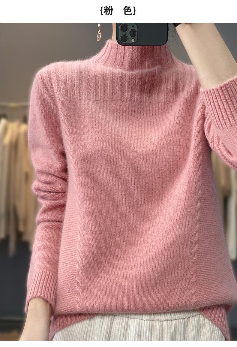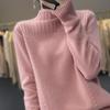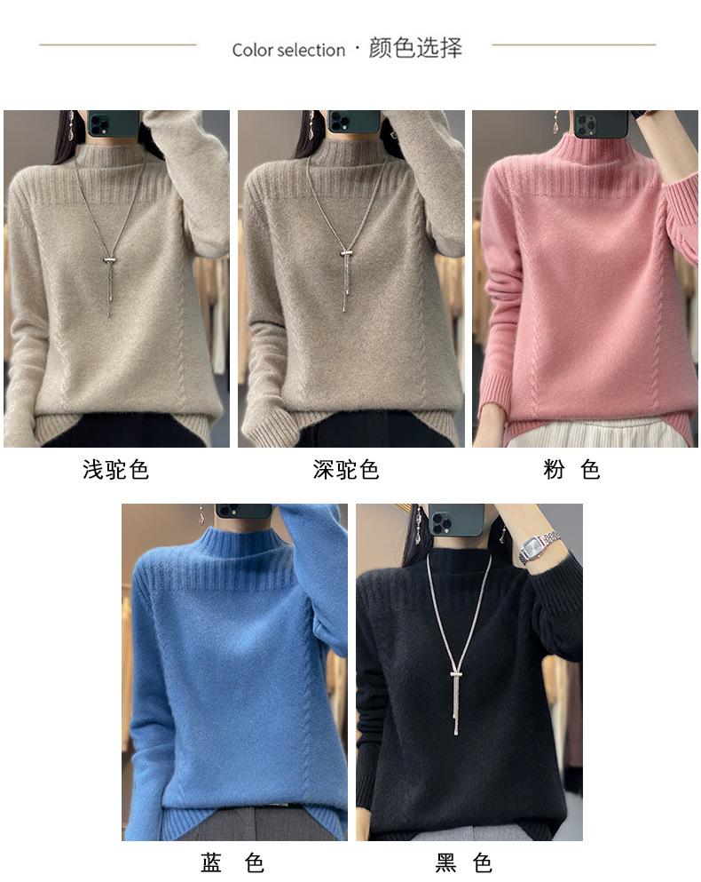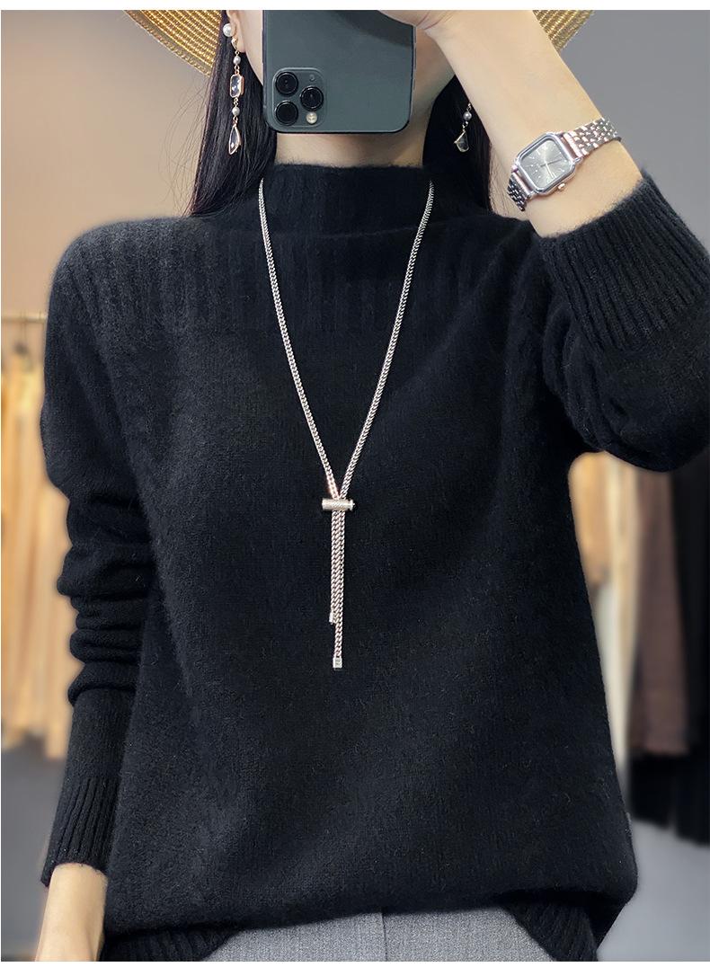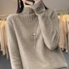 Vintage Color Sólido Cuello Medio Otoño e Invierno Nuevo 100 Suéter Mujer Combinación Total Grueso Suelto Jersey Tejido