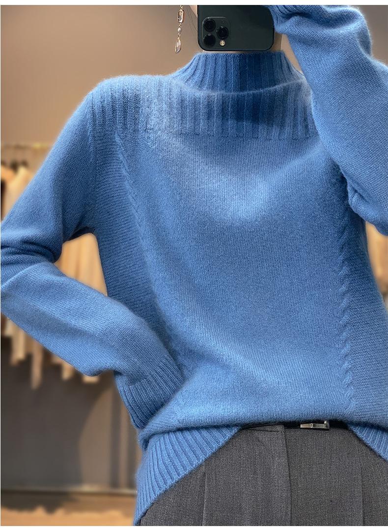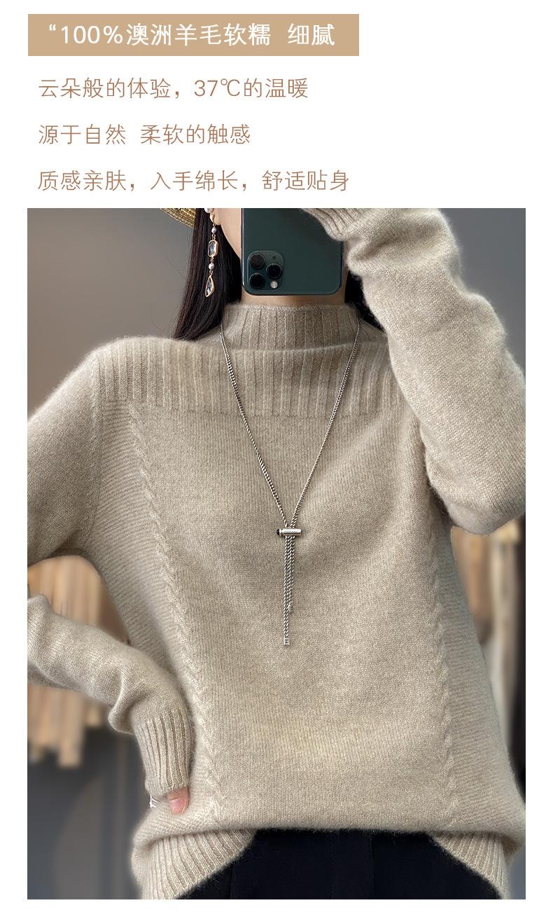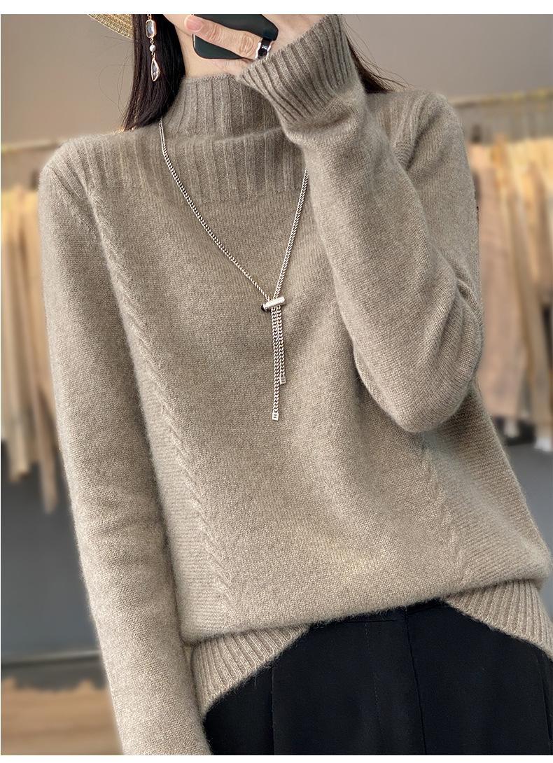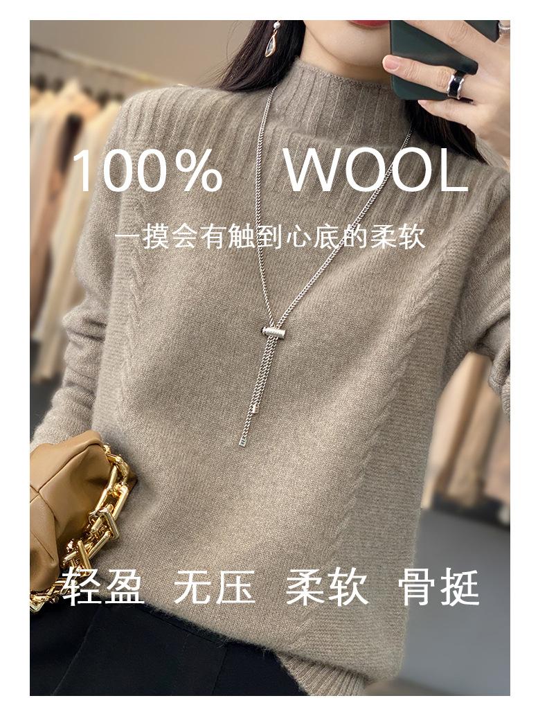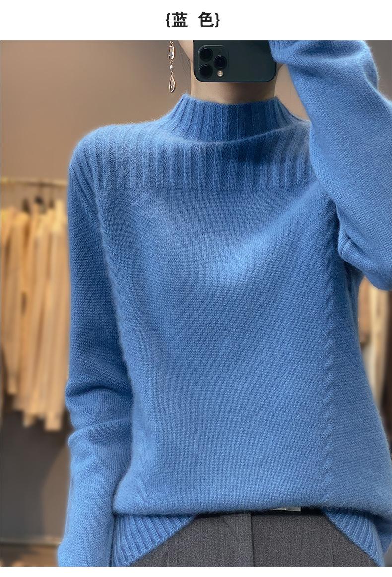 Vintage Color Sólido Cuello Medio Otoño e Invierno Nuevo 100 Suéter Mujer Combinación Total Grueso Suelto Jersey Tejido