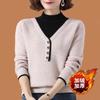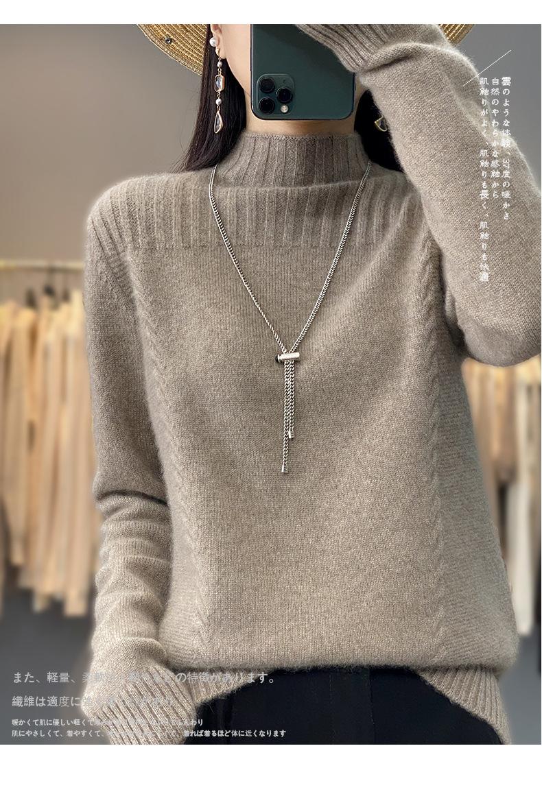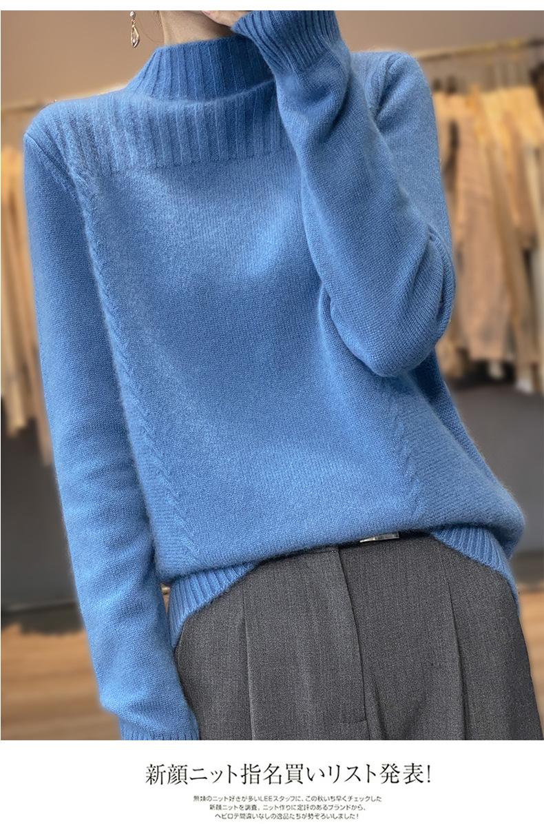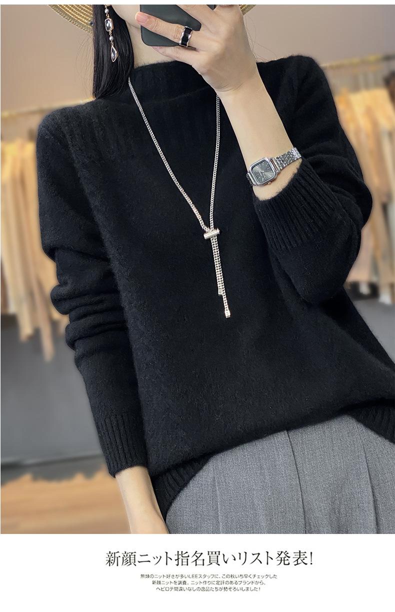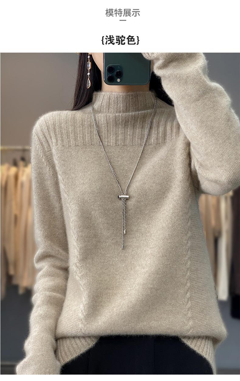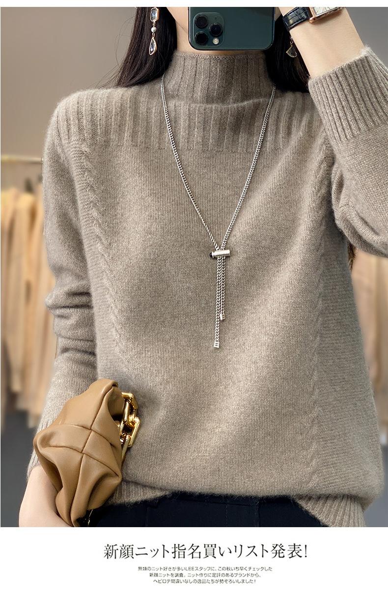 Vintage Color Sólido Cuello Medio Otoño e Invierno Nuevo 100 Suéter Mujer Combinación Total Grueso Suelto Jersey Tejido