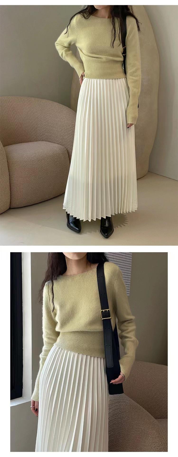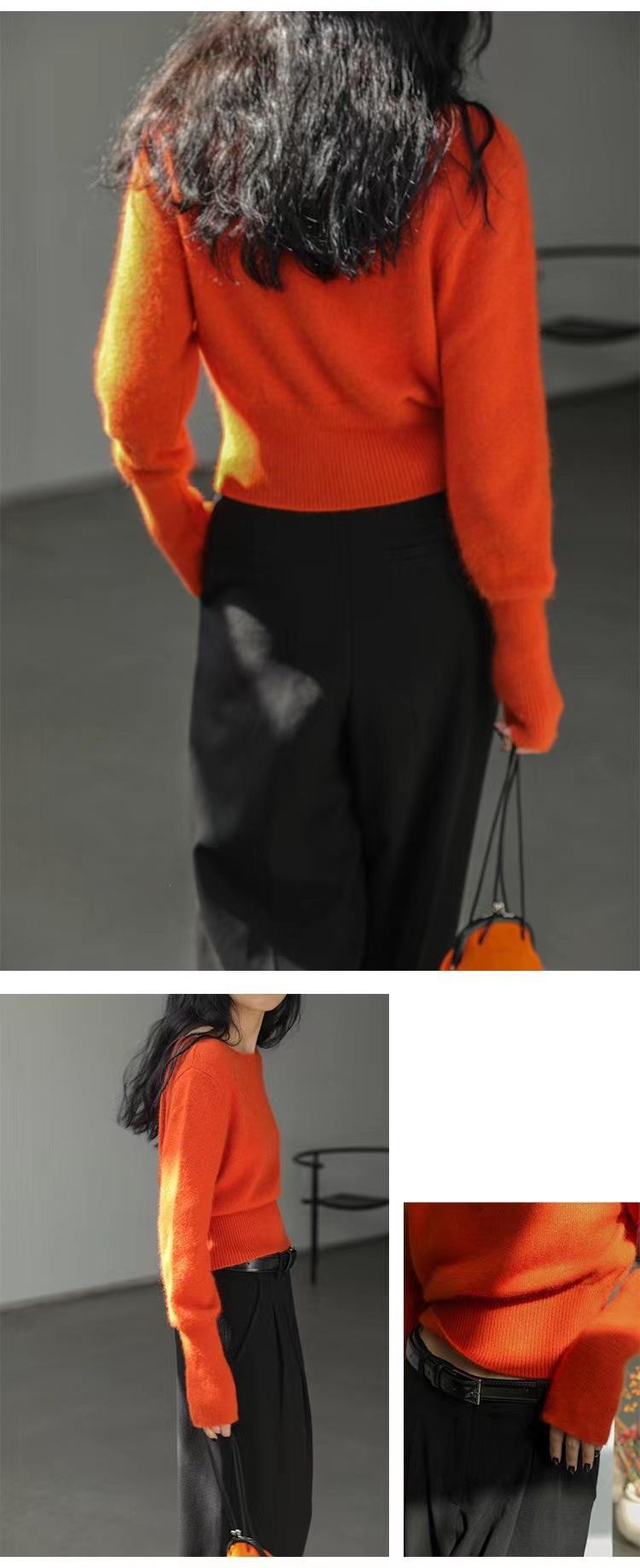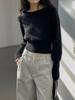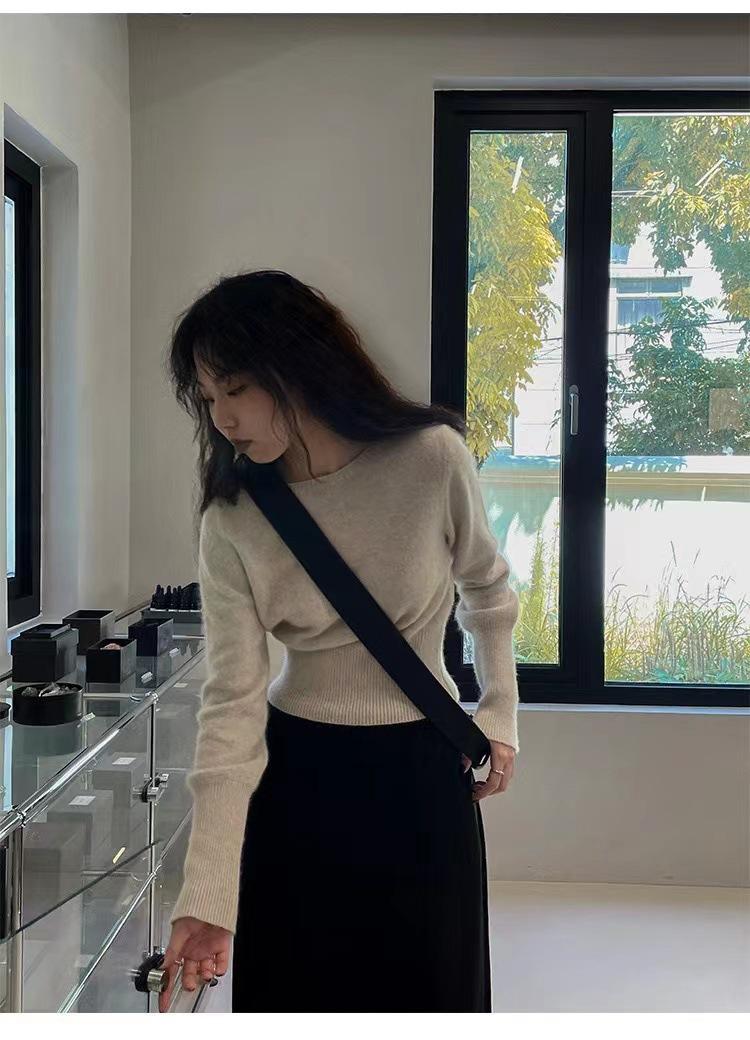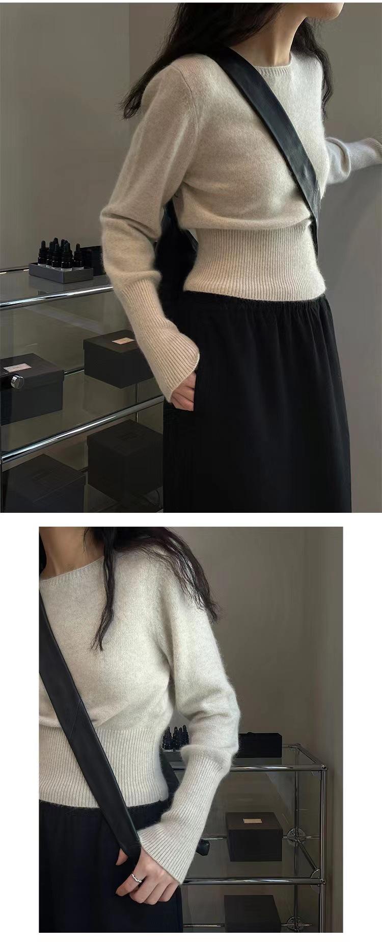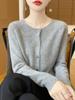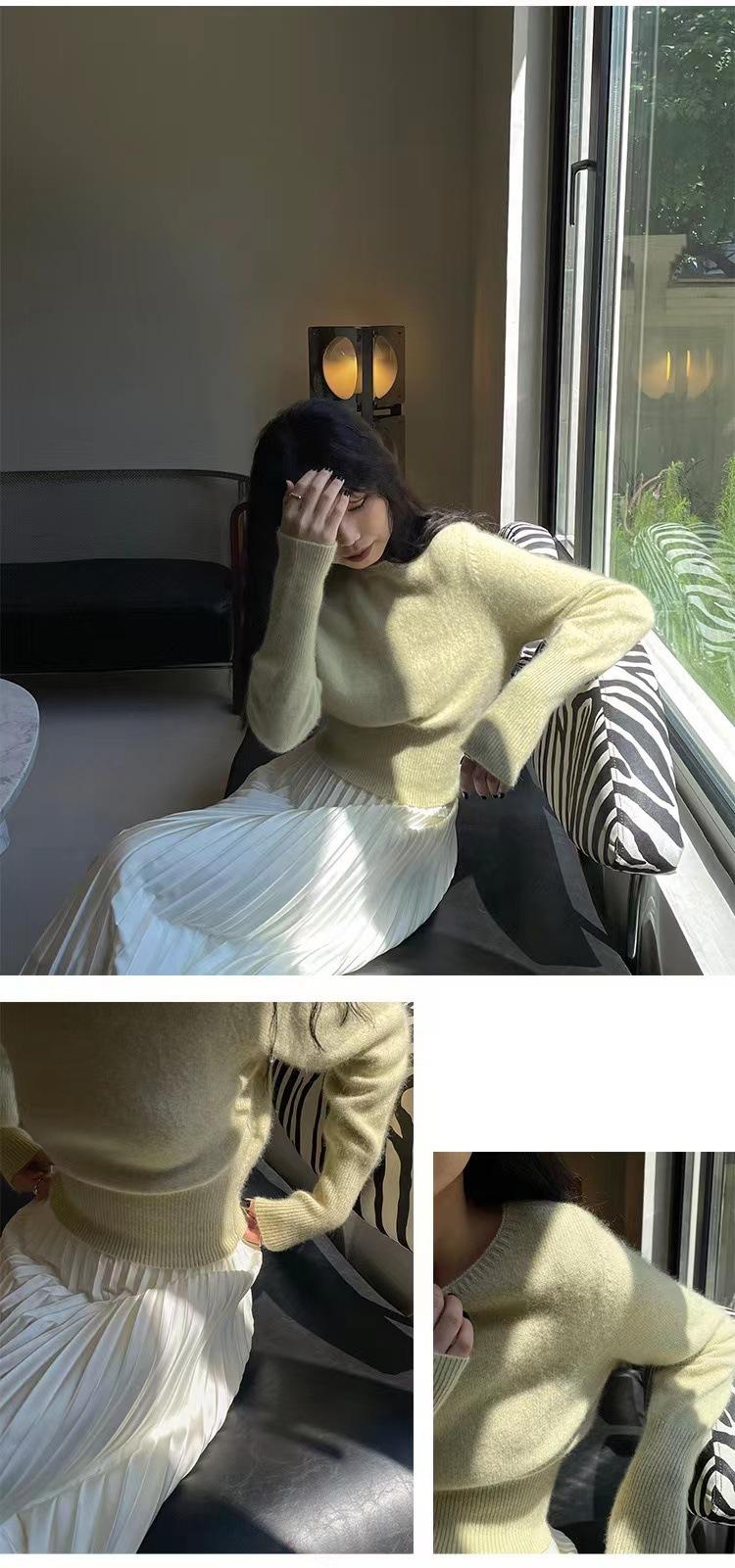 Elegante Suéter Corto de Lana 100% de Punto para Mujer Otoño e Invierno Holgado Adelgazante Cuello Redondo Camiseta Base de Lana