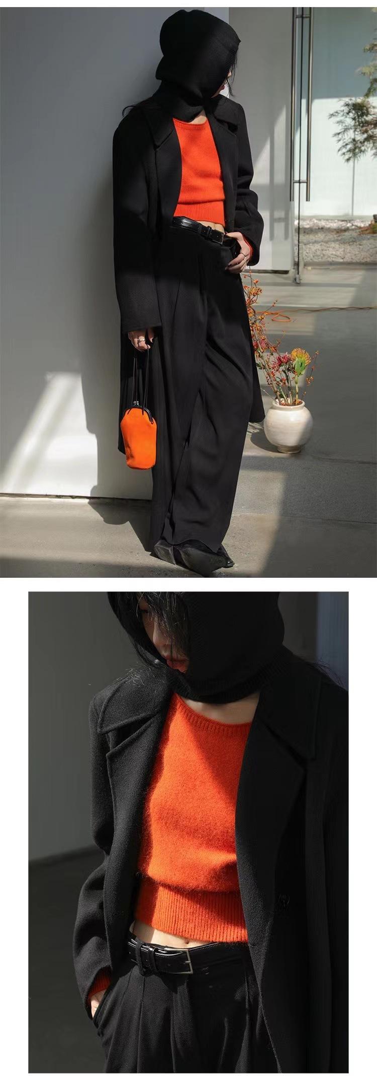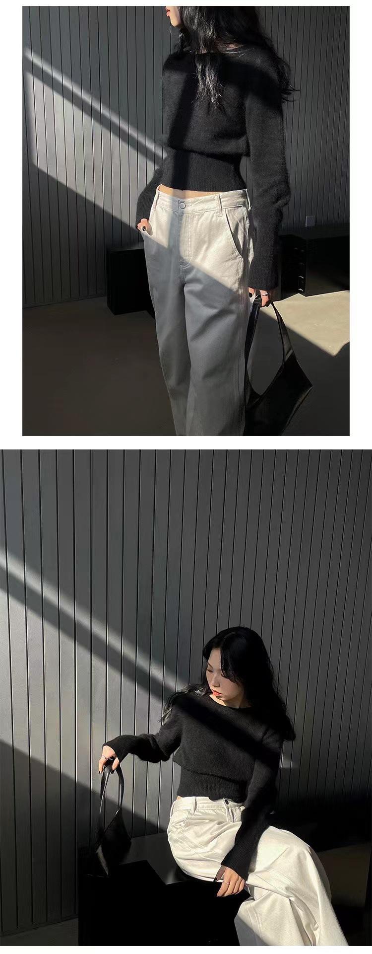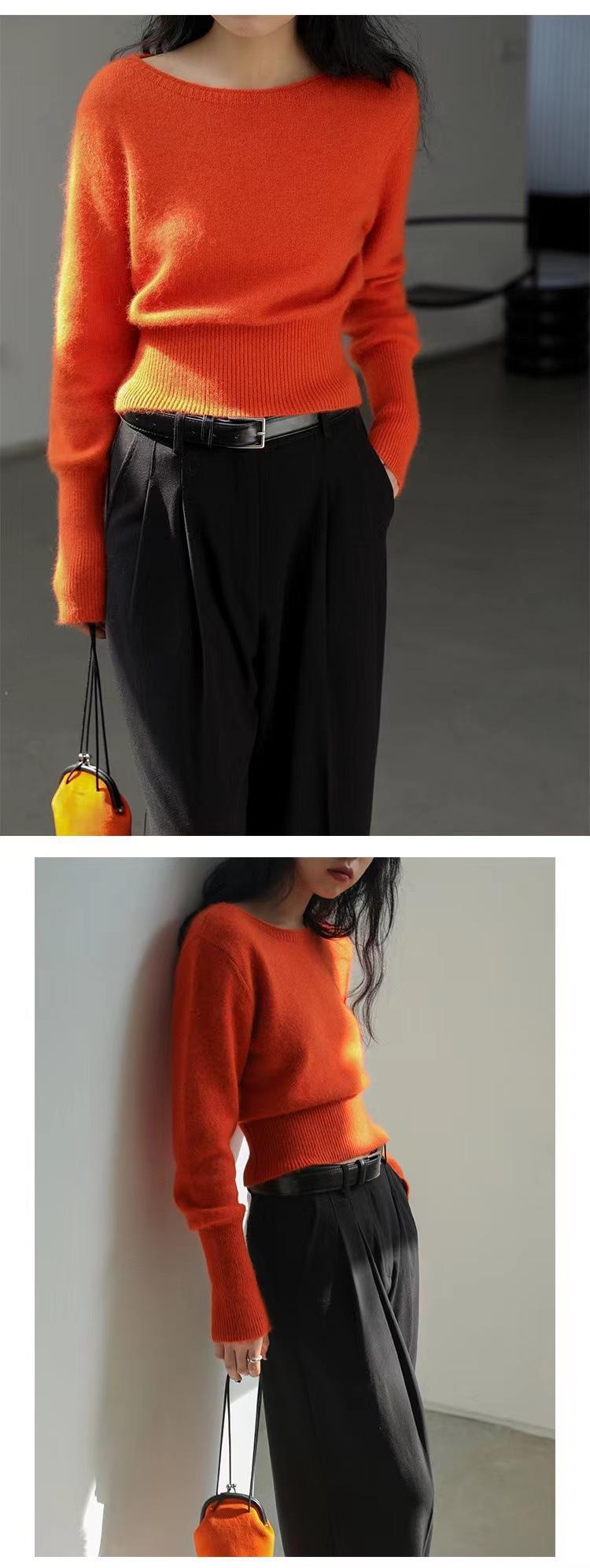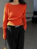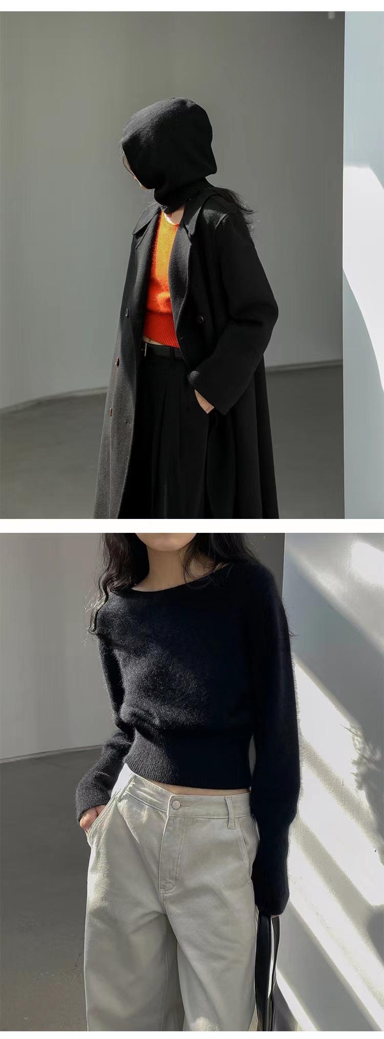 Elegante Suéter Corto de Lana 100% de Punto para Mujer Otoño e Invierno Holgado Adelgazante Cuello Redondo Camiseta Base de Lana