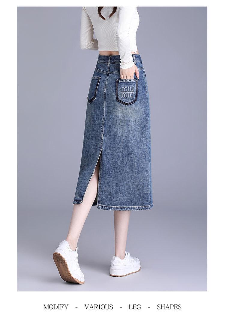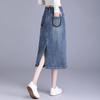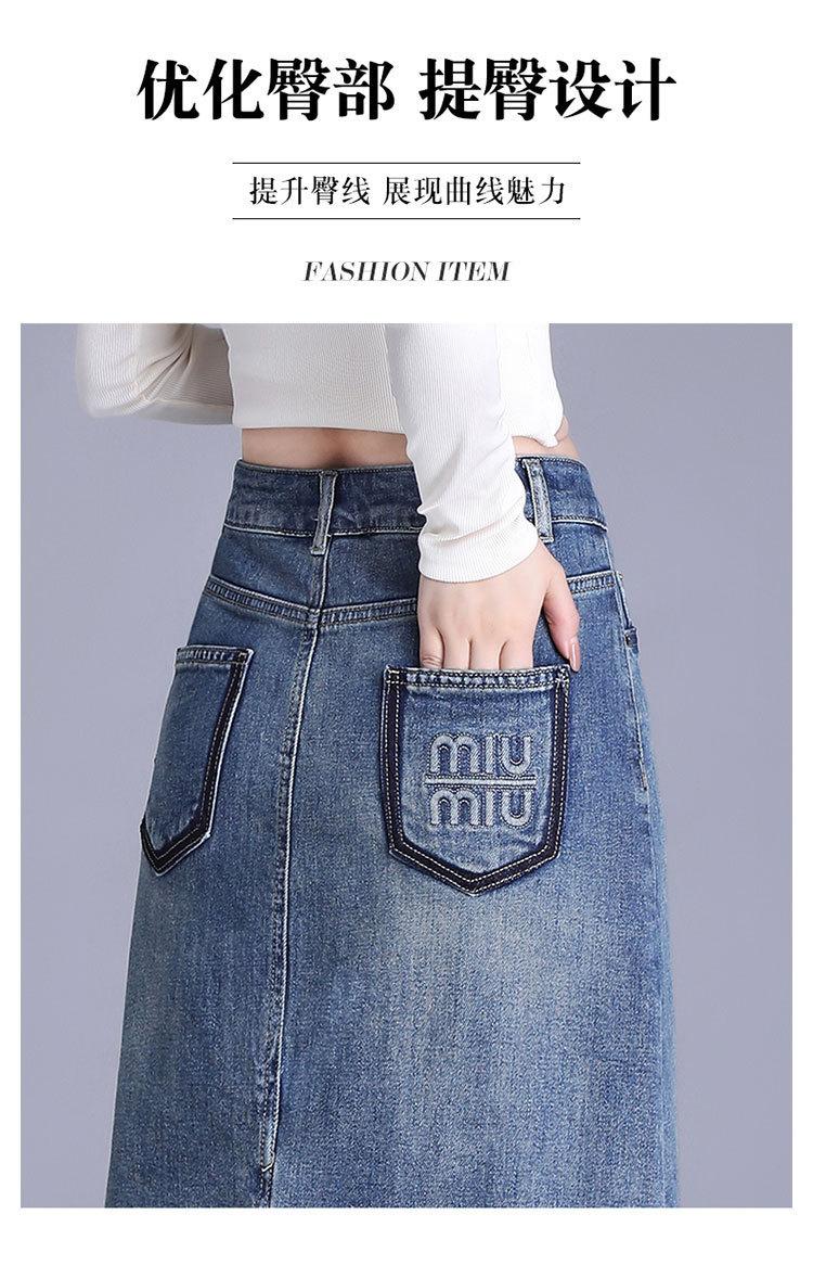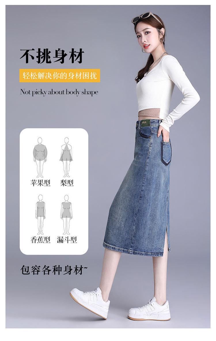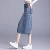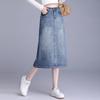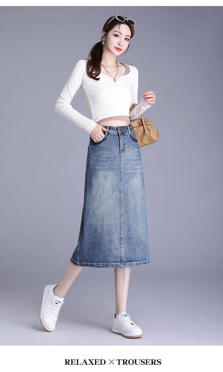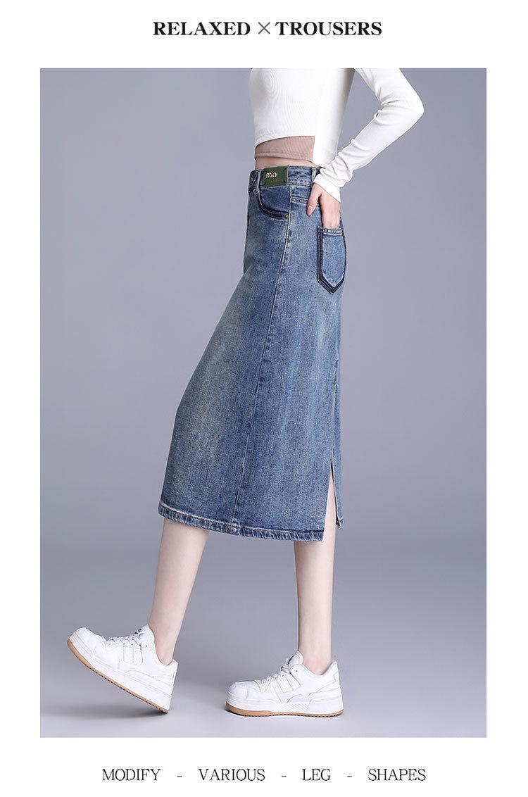 Falda Vaquera de Moda Cubre Caderas Slim para Mujer Otoño 2025 Nuevo Estilo Coreano Cintura Alta Casual Pierna Recta Largo Medio