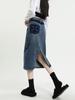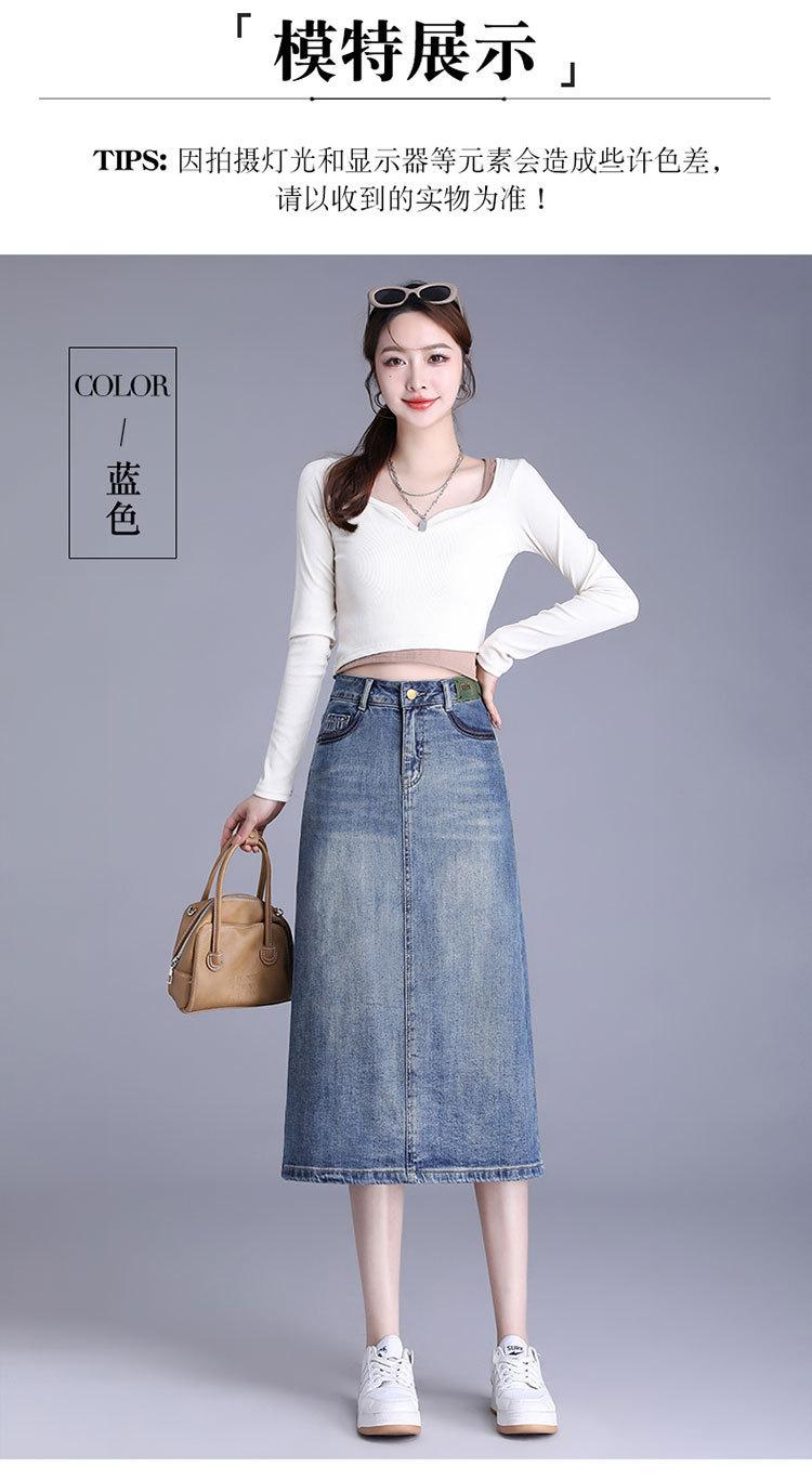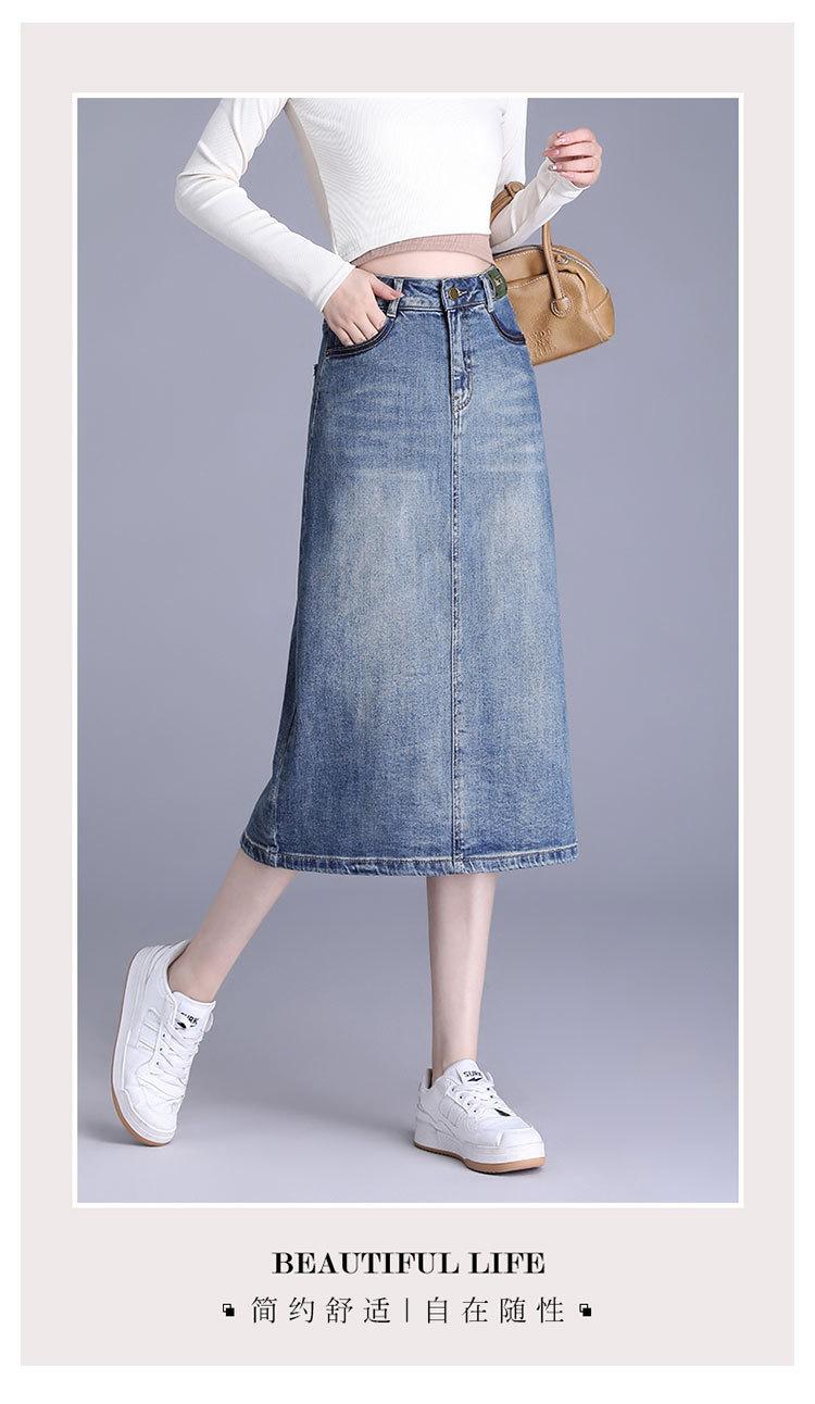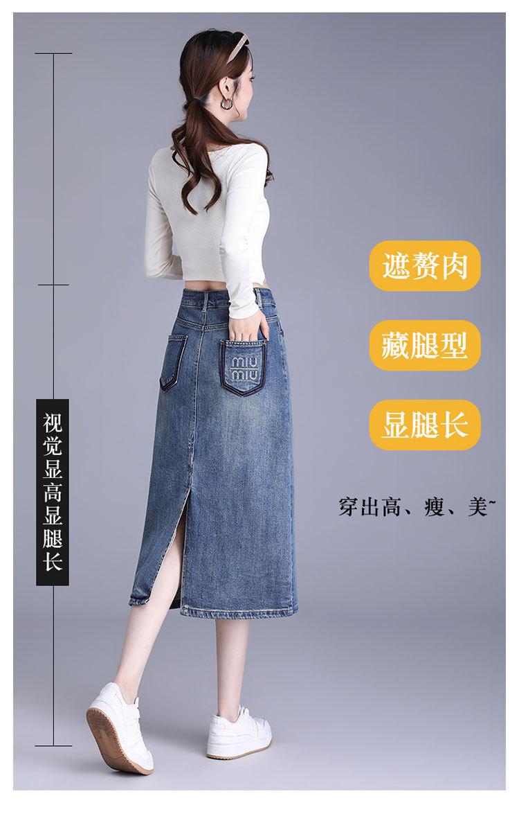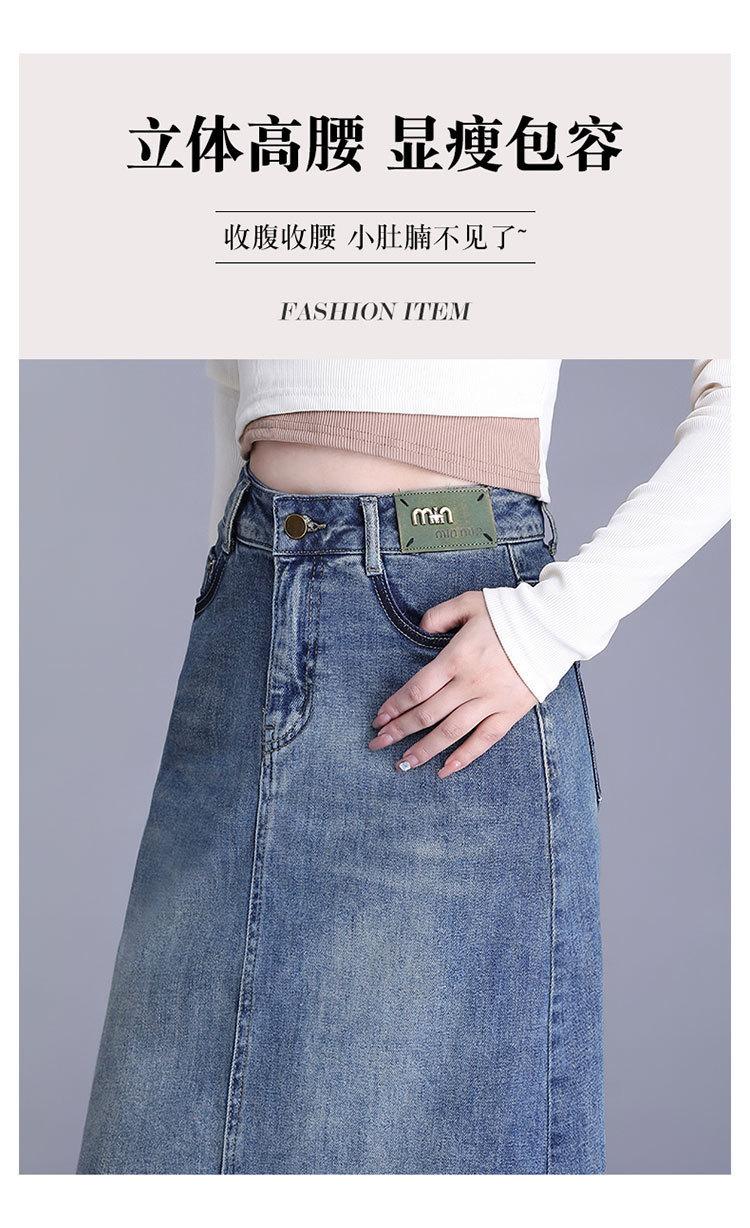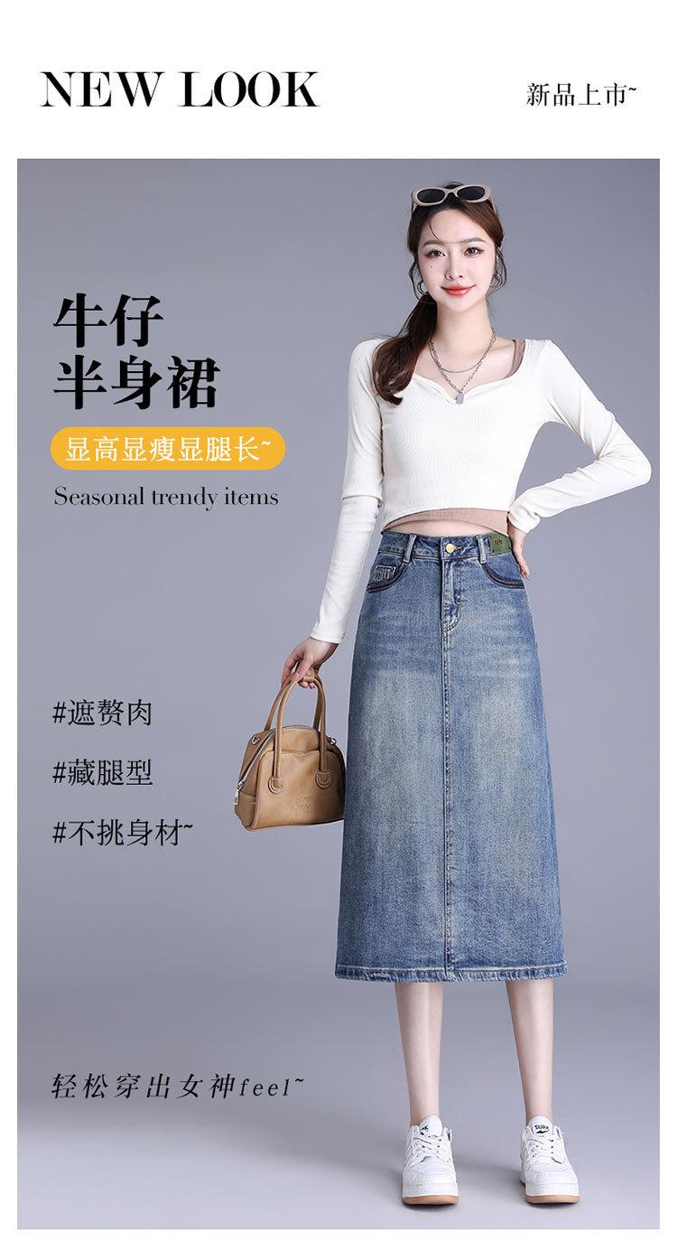 Falda Vaquera de Moda Cubre Caderas Slim para Mujer Otoño 2025 Nuevo Estilo Coreano Cintura Alta Casual Pierna Recta Largo Medio
