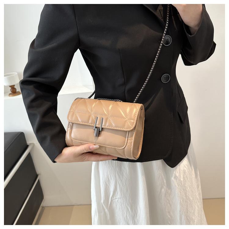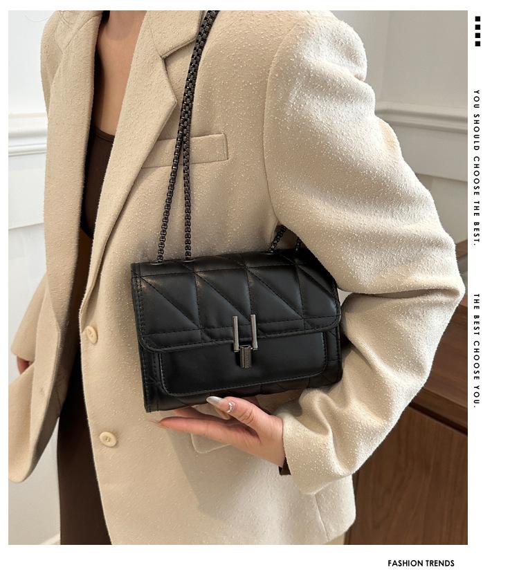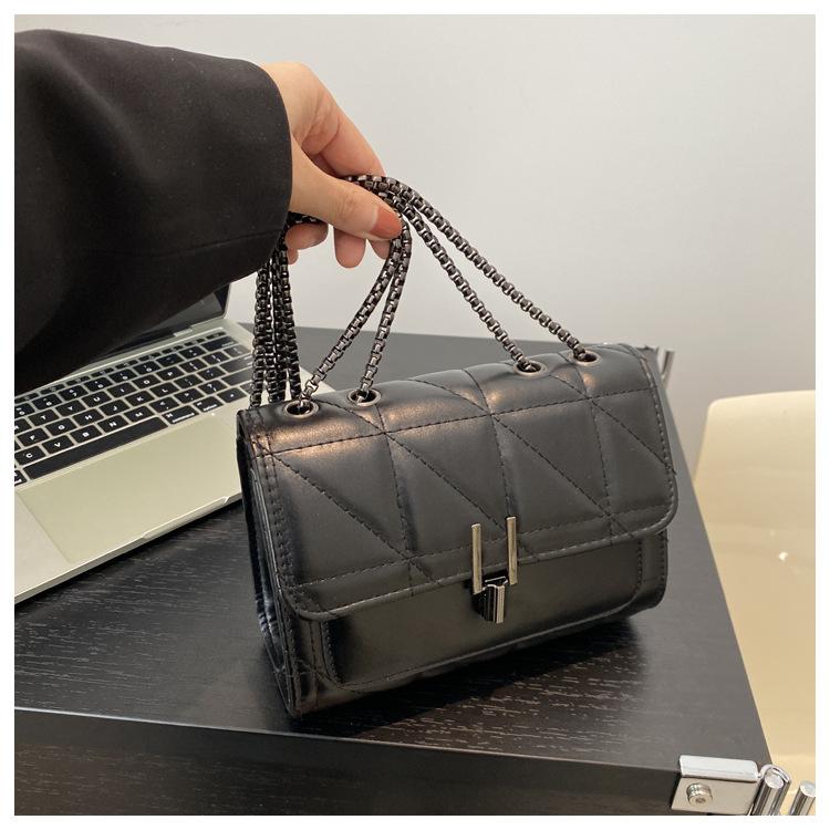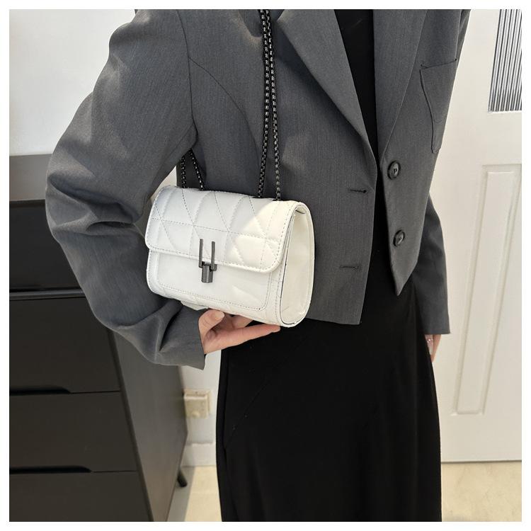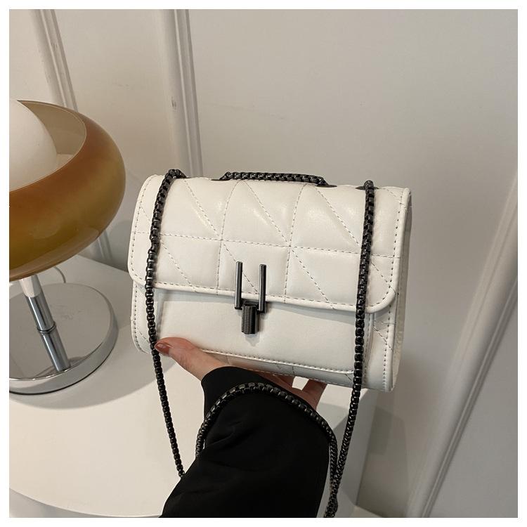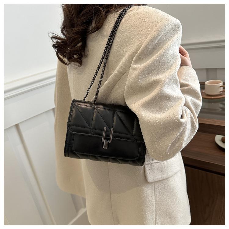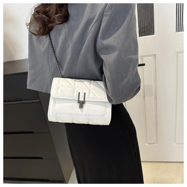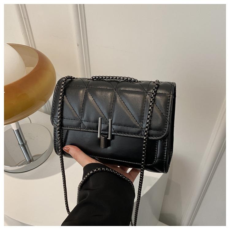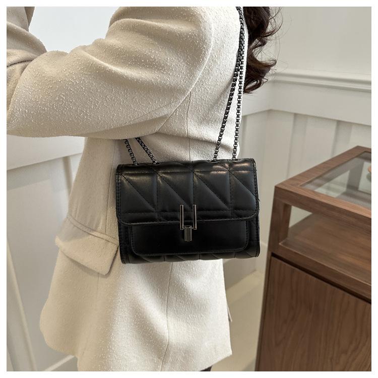 Bolso bandolera pequeño cuadrado con cadena de diamantes y bordado de hilo, elegante, estilo occidental, informal, sencillo, con cierre de resorte, para mujer, 2024