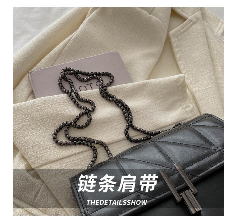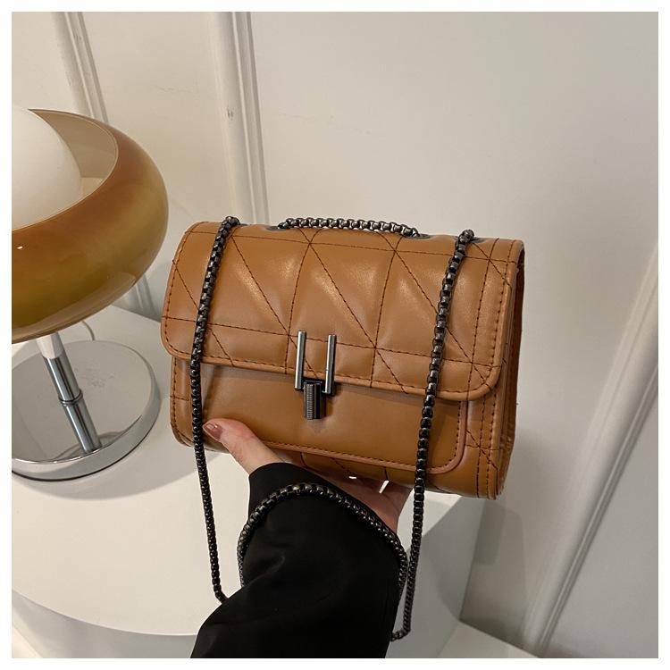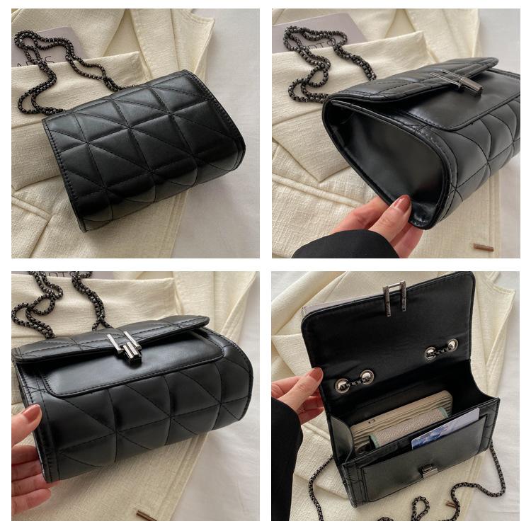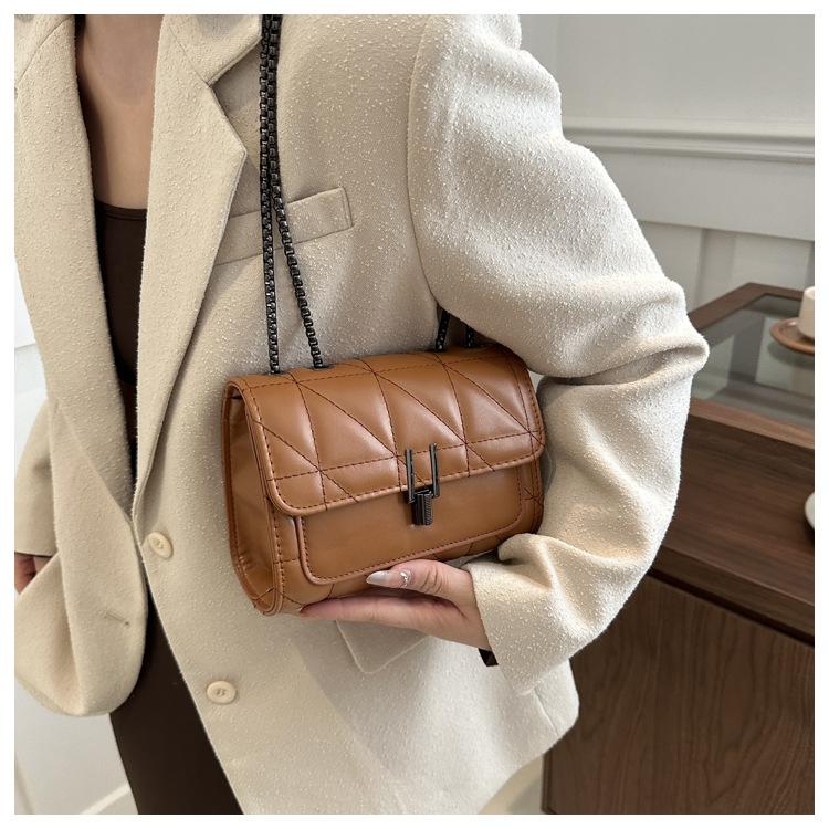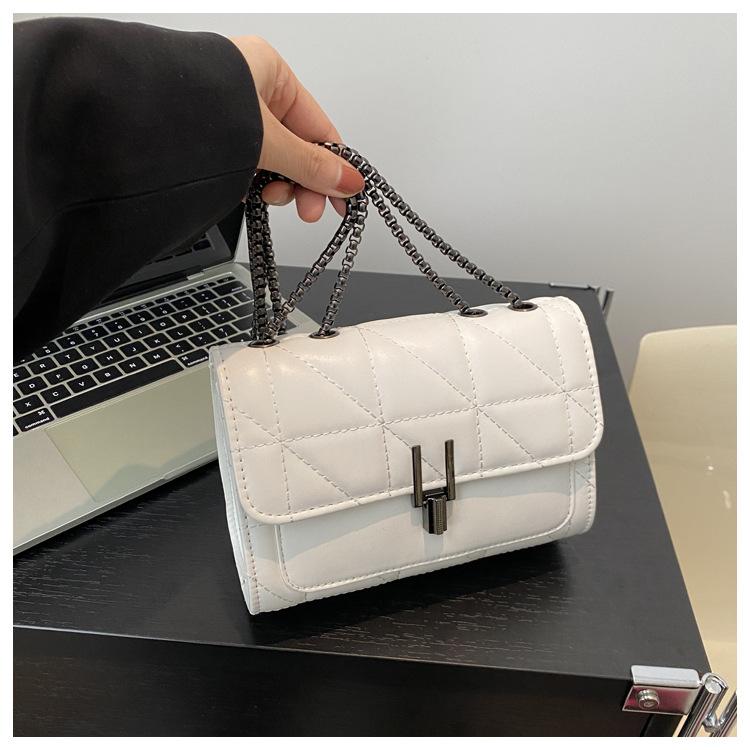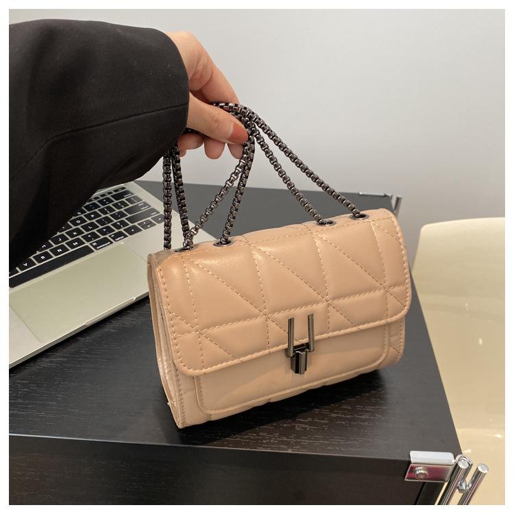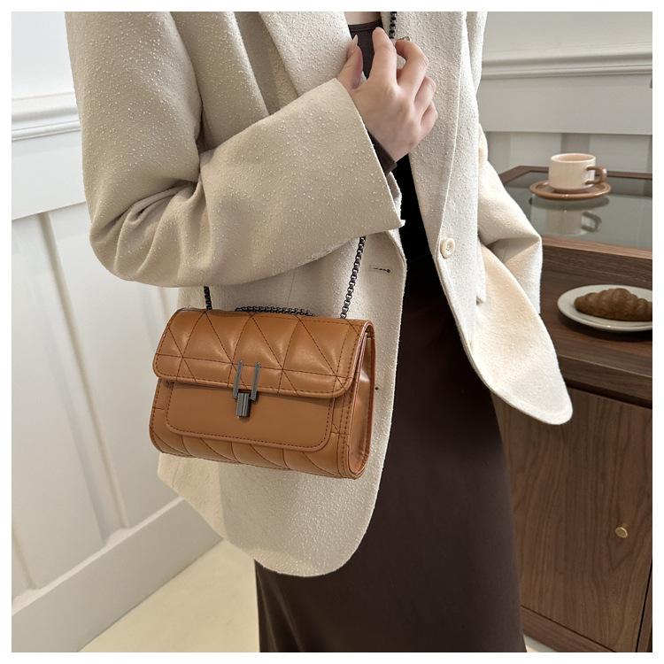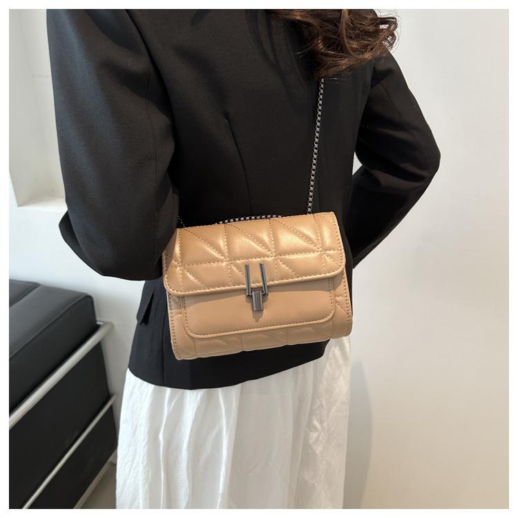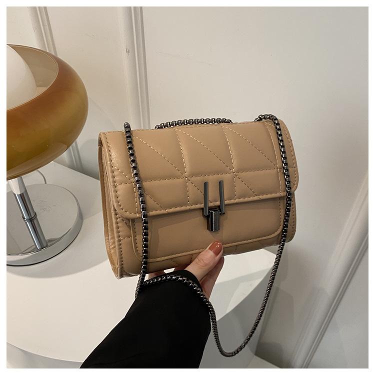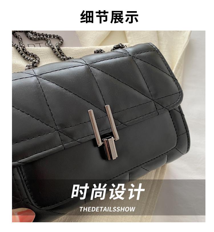 Bolso bandolera pequeño cuadrado con cadena de diamantes y bordado de hilo, elegante, estilo occidental, informal, sencillo, con cierre de resorte, para mujer, 2024