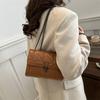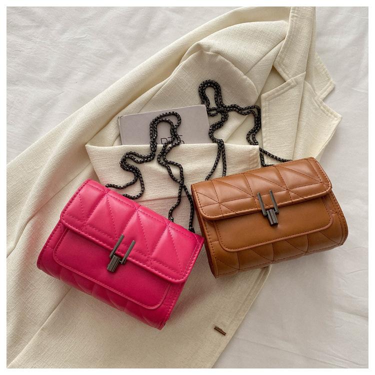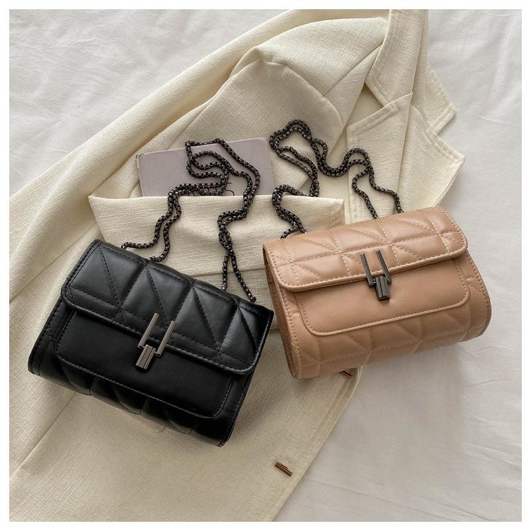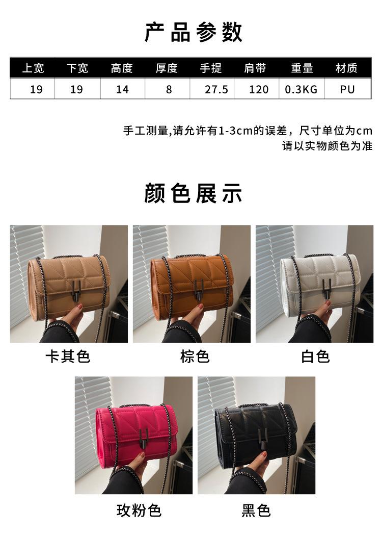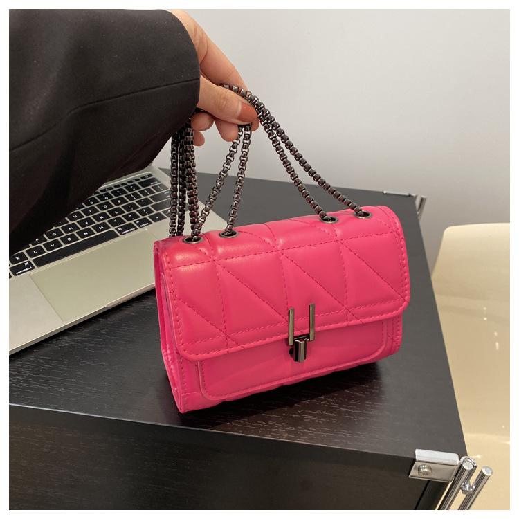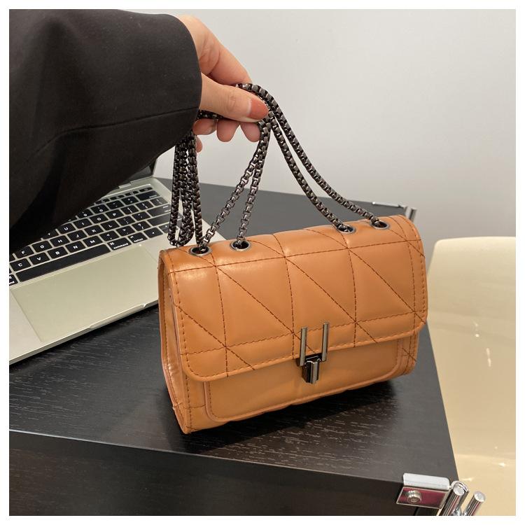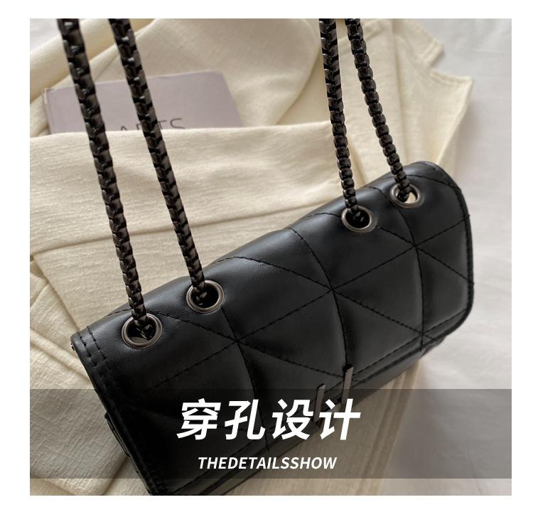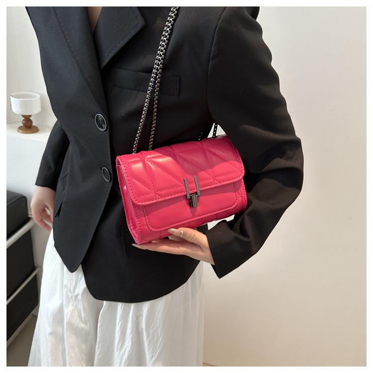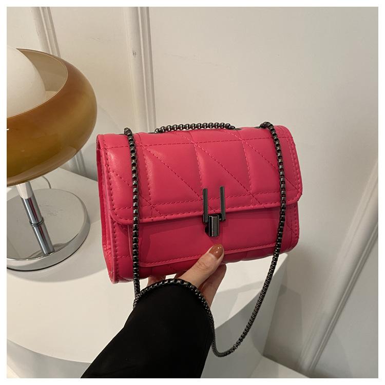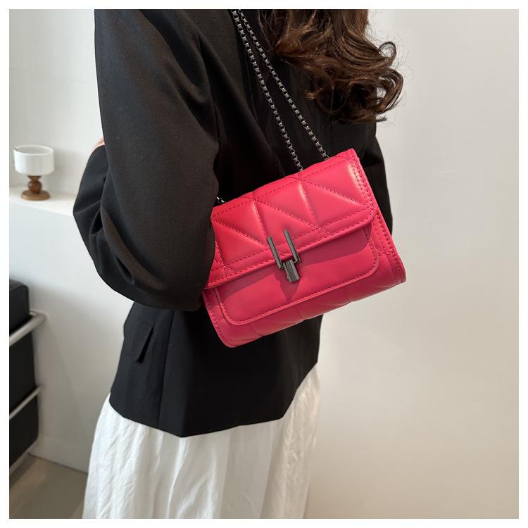 Bolso bandolera pequeño cuadrado con cadena de diamantes y bordado de hilo, elegante, estilo occidental, informal, sencillo, con cierre de resorte, para mujer, 2024