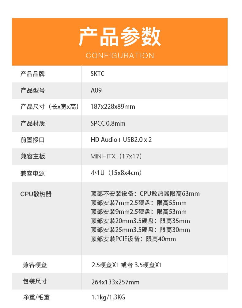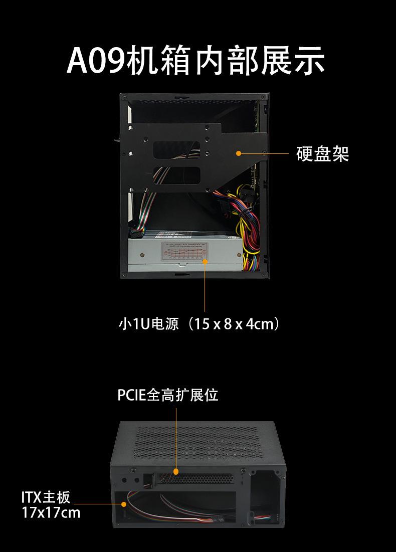 SKTC A09 caja de computadora HTPC negra vertical y horizontal placa madre ITX fuente de alimentación pequeña 1U/Flex