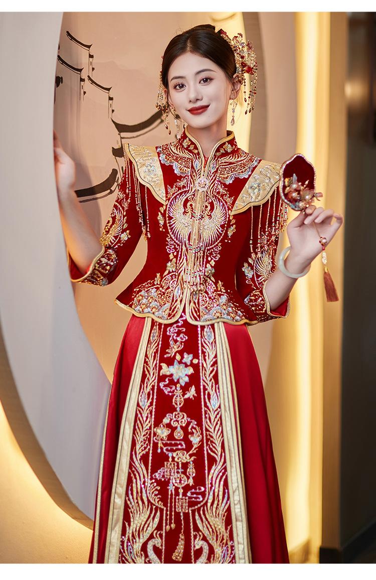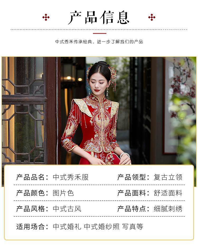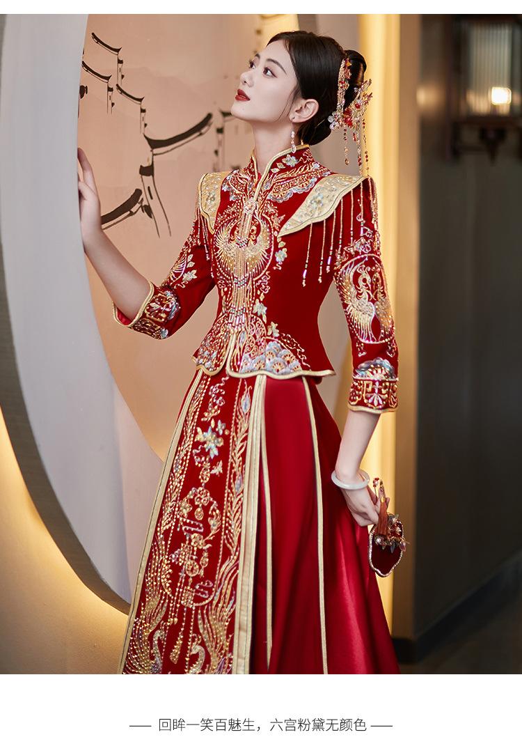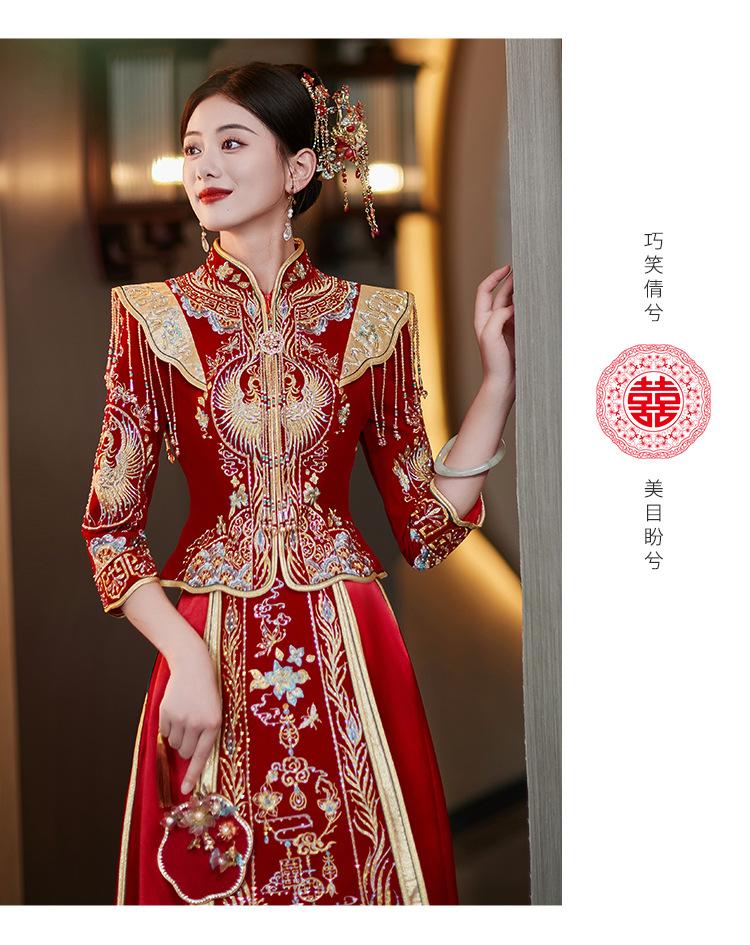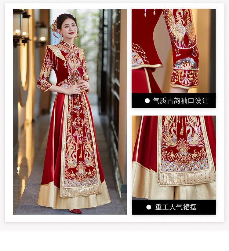 Vestido de novia Xiuhe 2024, nuevo vestido de novia de estilo chino, vestido de novia vintage, vestido de terciopelo tostado de alta gama Xiuhe