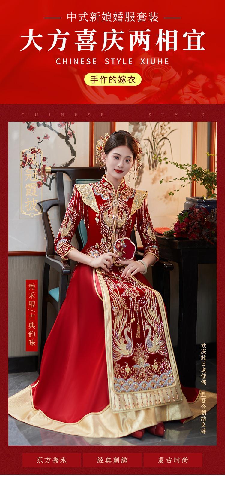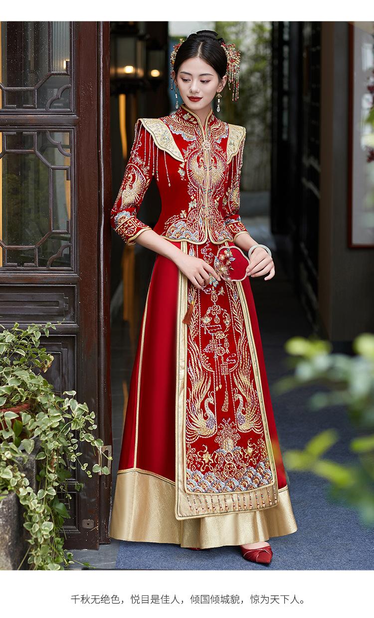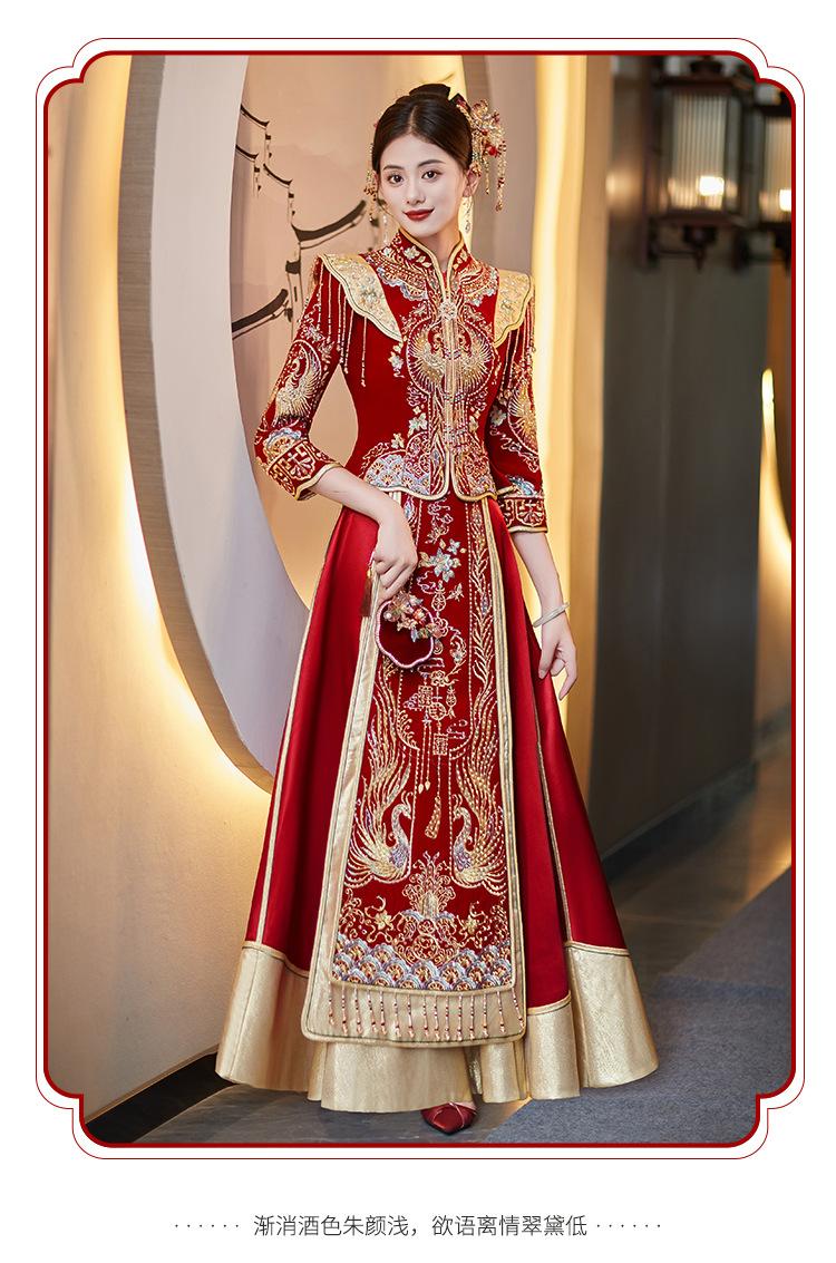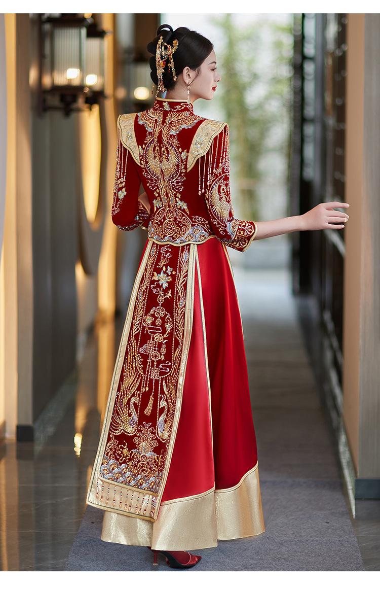 Vestido de novia Xiuhe 2024, nuevo vestido de novia de estilo chino, vestido de novia vintage, vestido de terciopelo tostado de alta gama Xiuhe