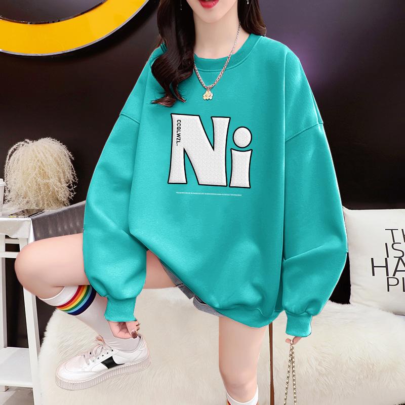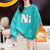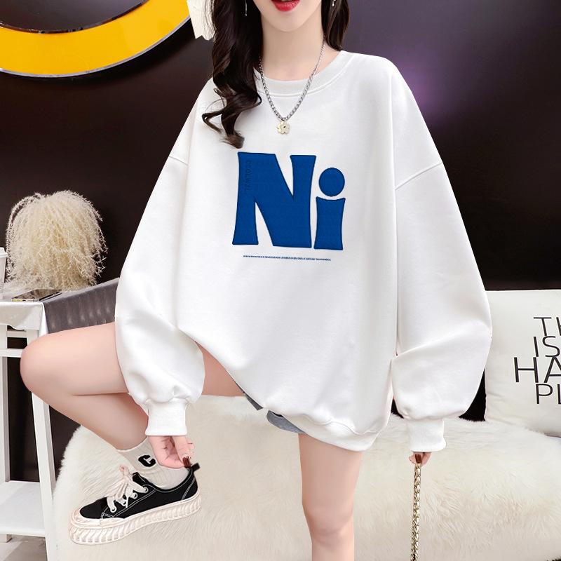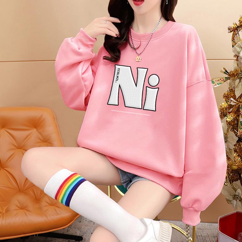 Suéter de cuello redondo para mujer, nuevo, holgado, informal, a la moda, con forro polar a juego, top grueso, moda de otoño e invierno, 2023