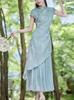 Nuevo vestido azul ligero de estilo nacional chino mejorado para mujer, verano 2024, nuevo, elegante, ajustado, estilo suave, vestido largo
