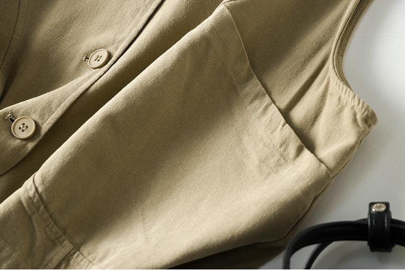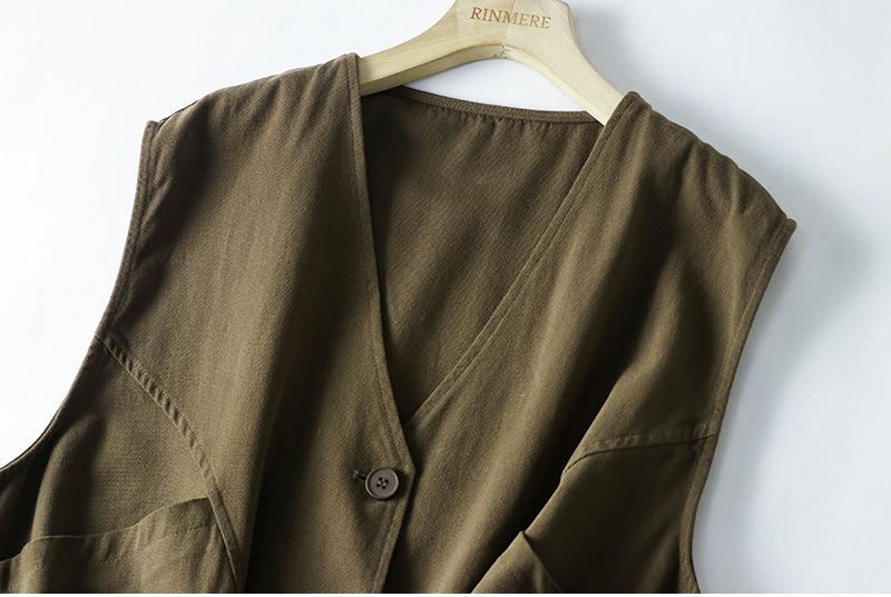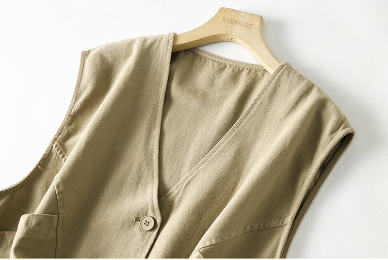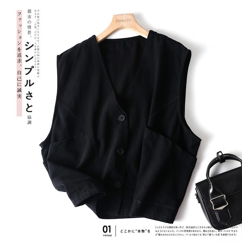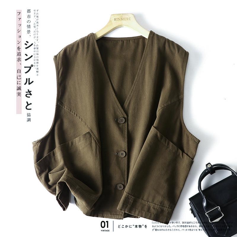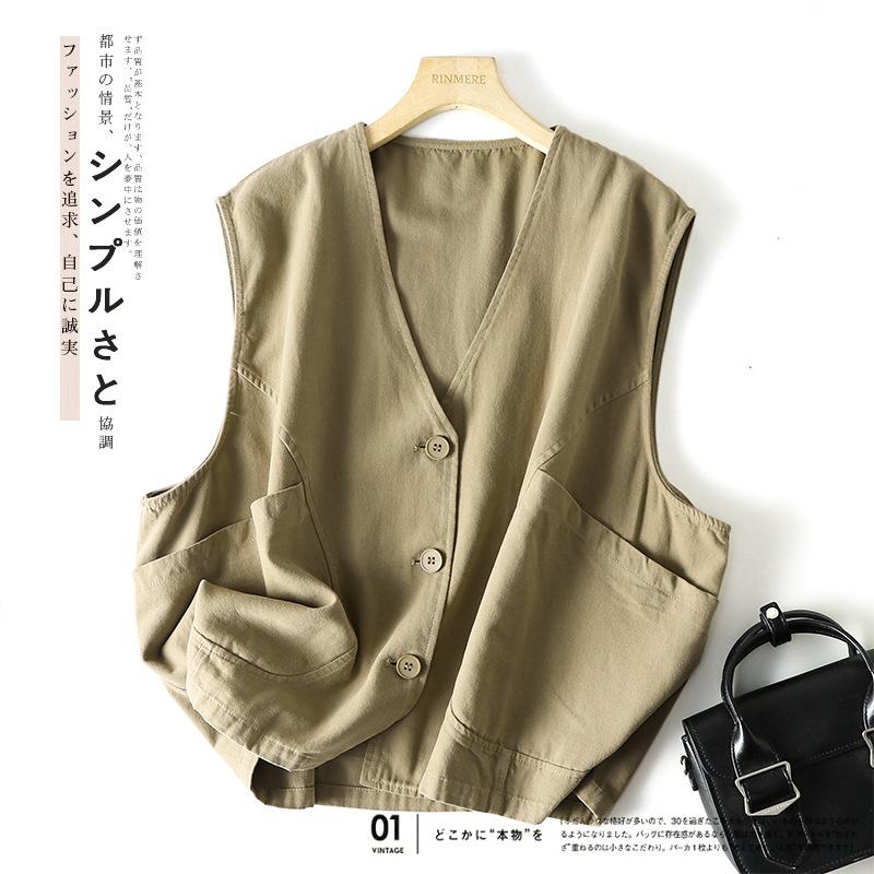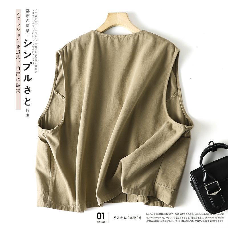 Chaleco de trabajo de algodón puro estilo BF para mujer, estilo retro, artístico, sencillo y suelto, primavera 2024