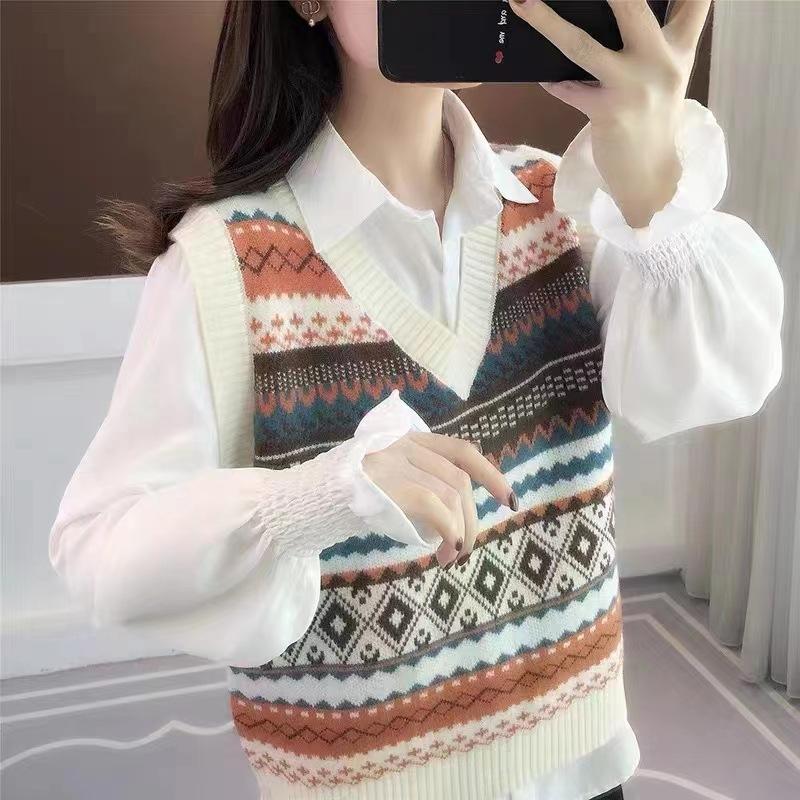 Chaleco de punto para mujer 2024 principios de primavera y otoño Nuevo chaleco holgado tipo suéter con cuello en V apilado