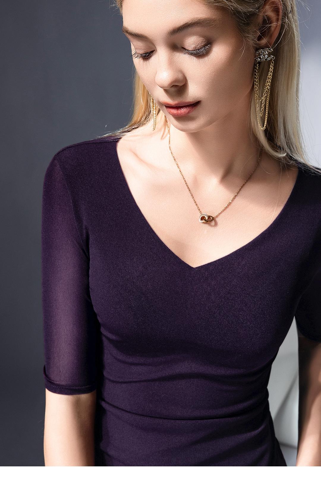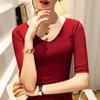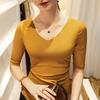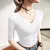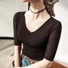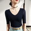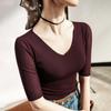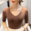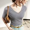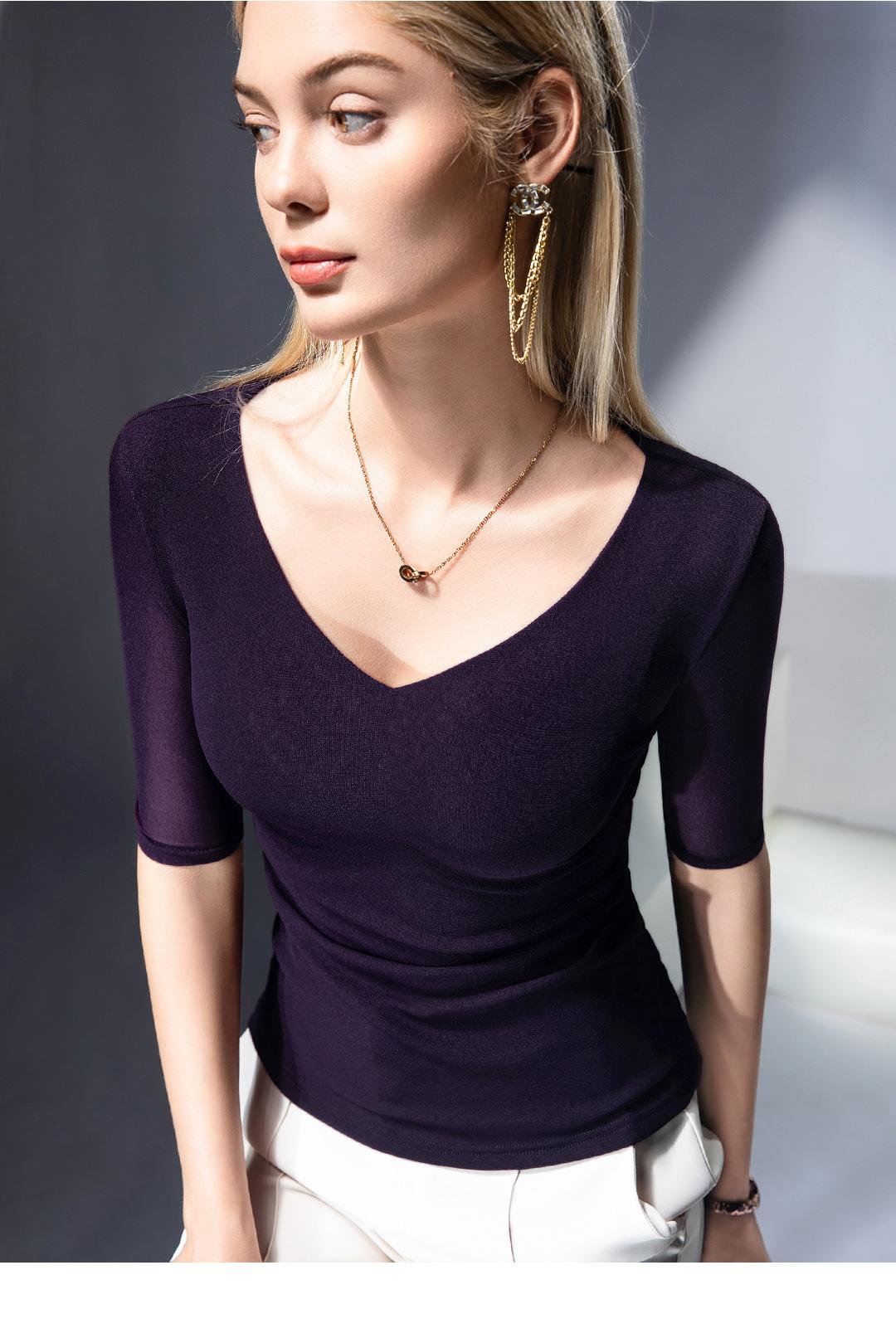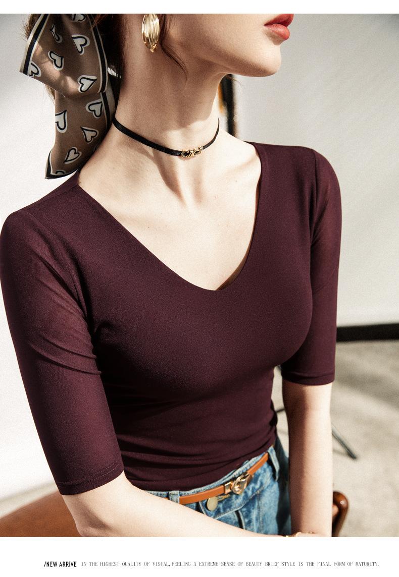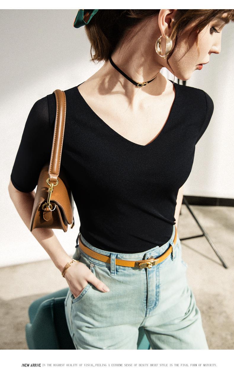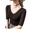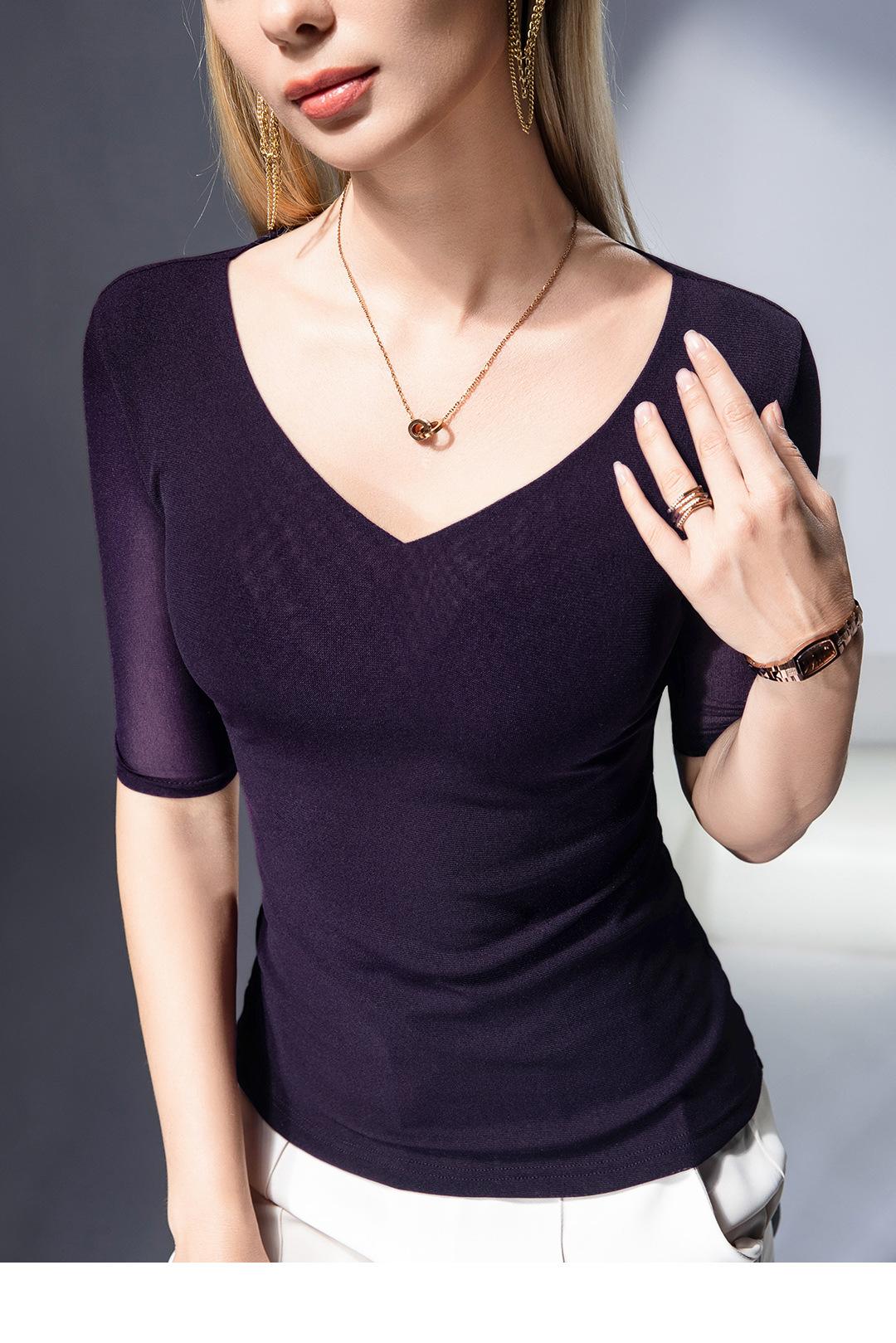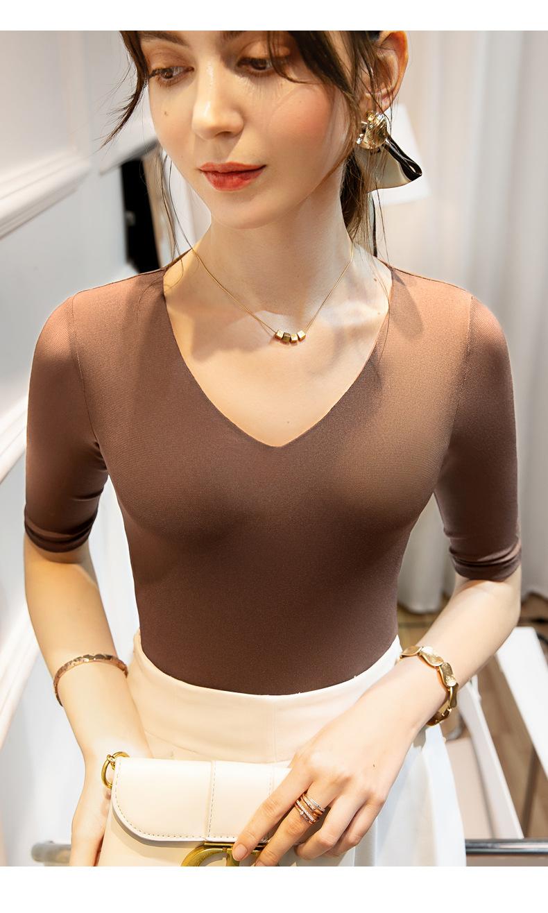 Primavera y Verano Nueva Camiseta Cuello en V Manga Media Camiseta Base con Top de Malla Estilo Extranjero Camiseta Pequeña Hecha en Europa