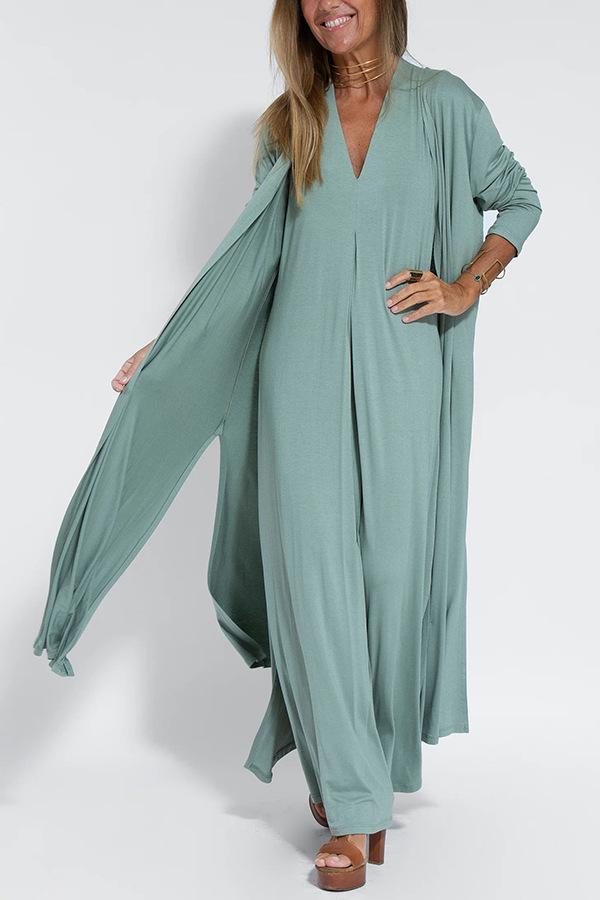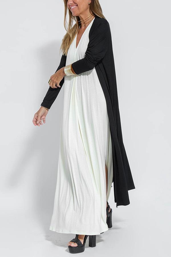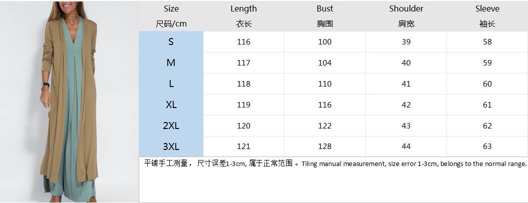 Amazon Transfronterizo Otoño e Invierno Color Sólido Abertura Casual Calle Cárdigan Largo Chaqueta para Mujer