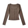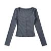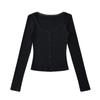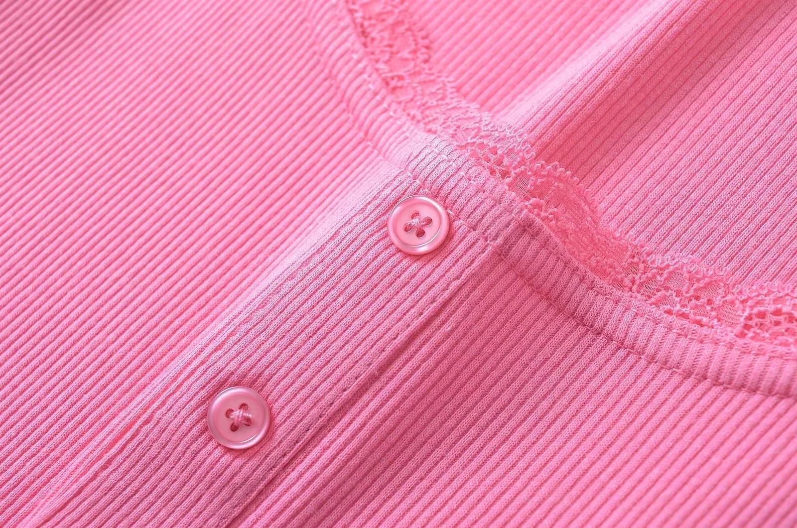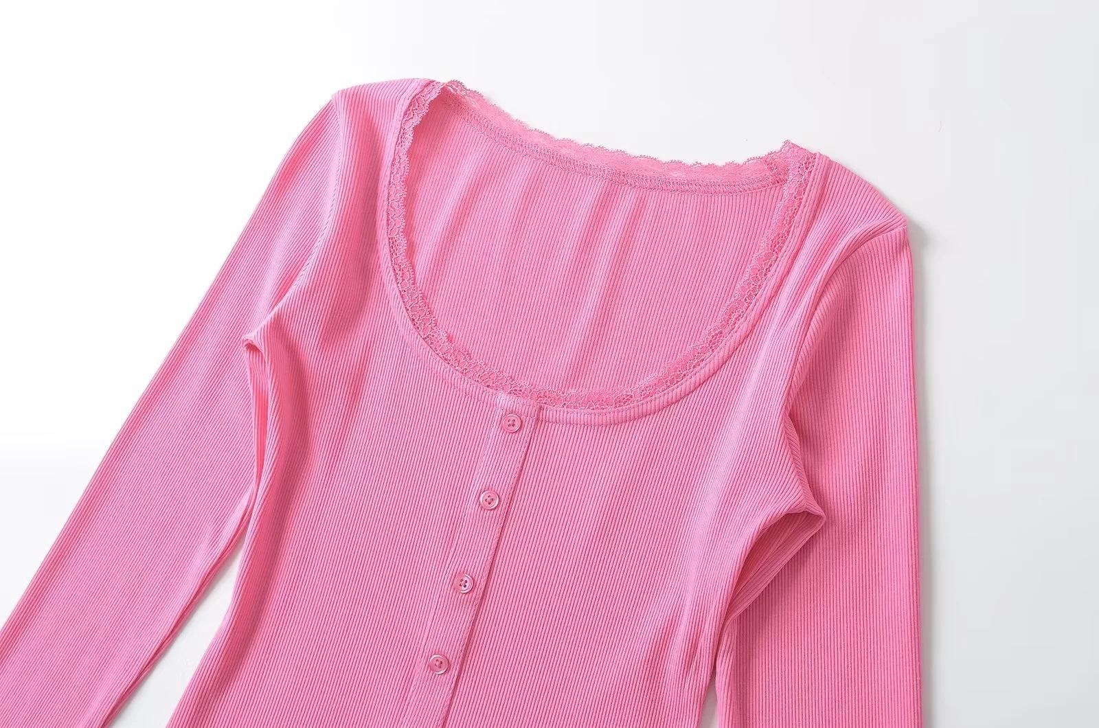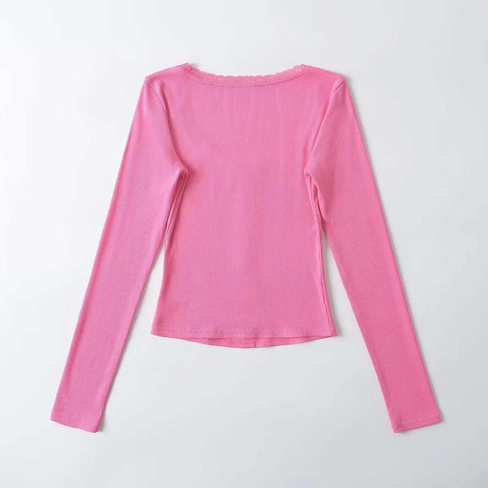 DY2F11-24 Primavera Nueva Camiseta de Manga Larga con Encaje y Cuello Redondo Sexy para Chicas Calientes de Estilo Europeo y Americano