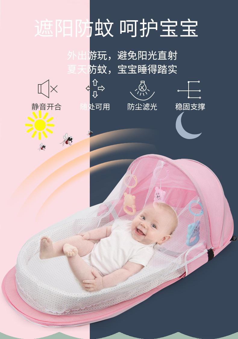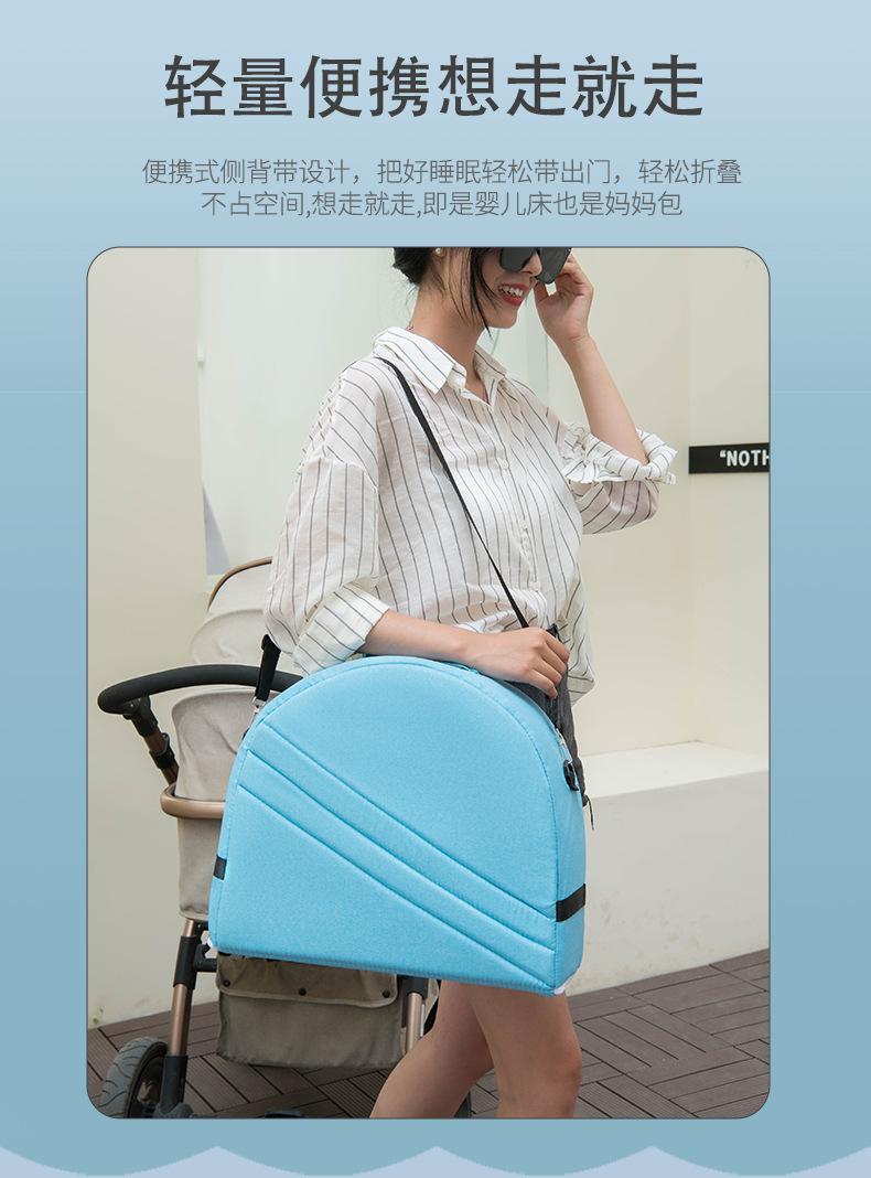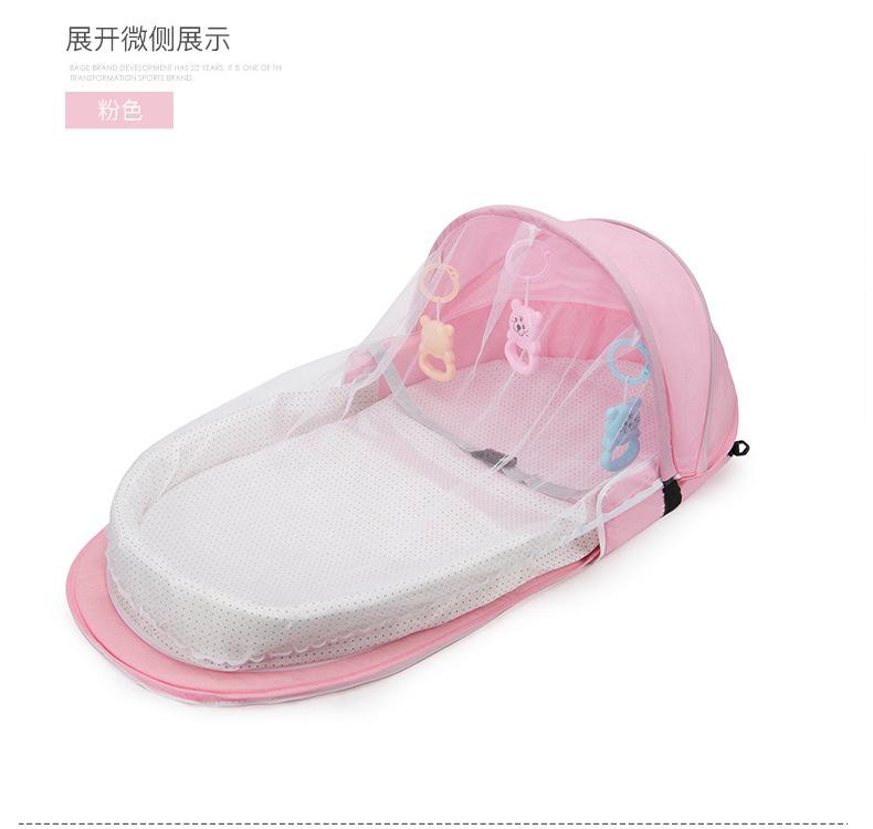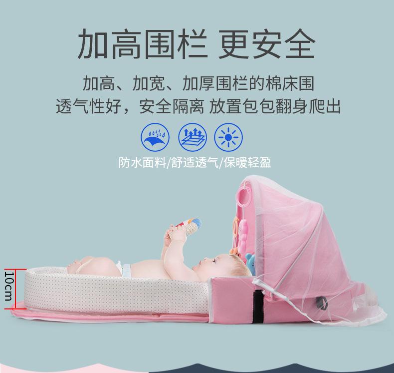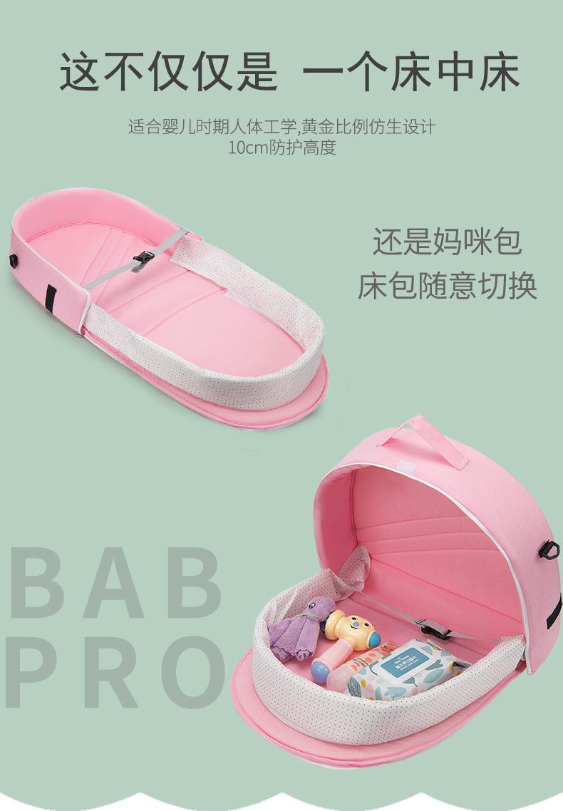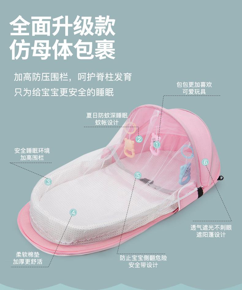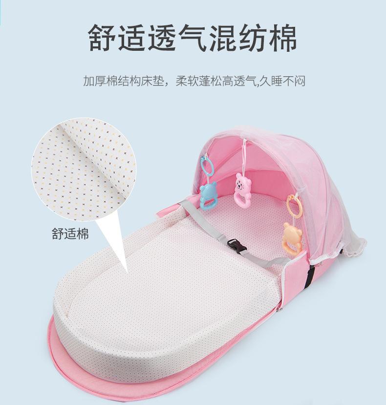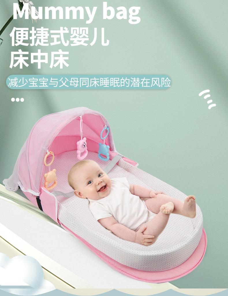 Bolsa de momia al por mayor, bolsa de cama de doble uso, plegable, para madre y bebé, con mosquitera, multifuncional, ligera, bandolera portátil para madre