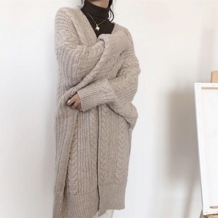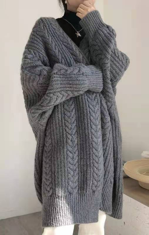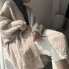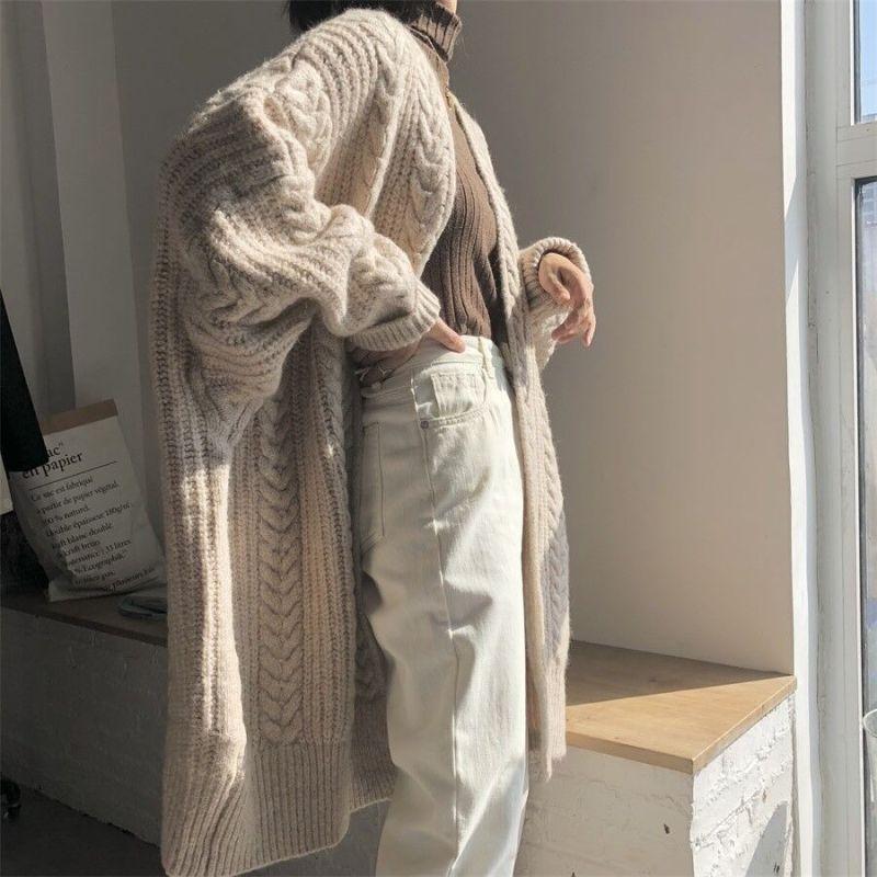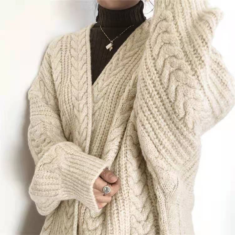 Cárdigan de punto retro de moda simple otoño e invierno grueso suelto torcido largo suéter de mujer abrigo