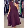 2024 otoño e invierno nueva moda cuello redondo sin mangas vestido plisado ropa de mujer