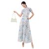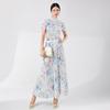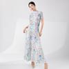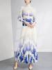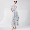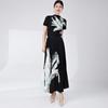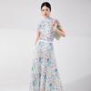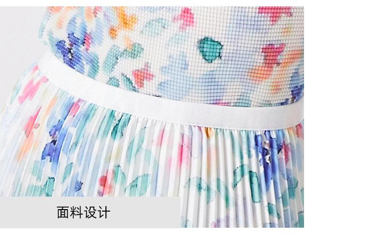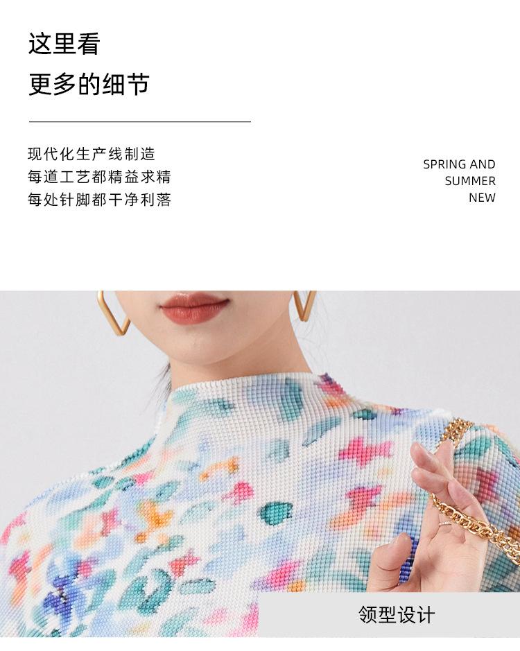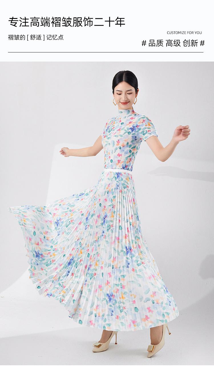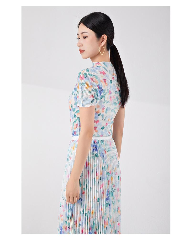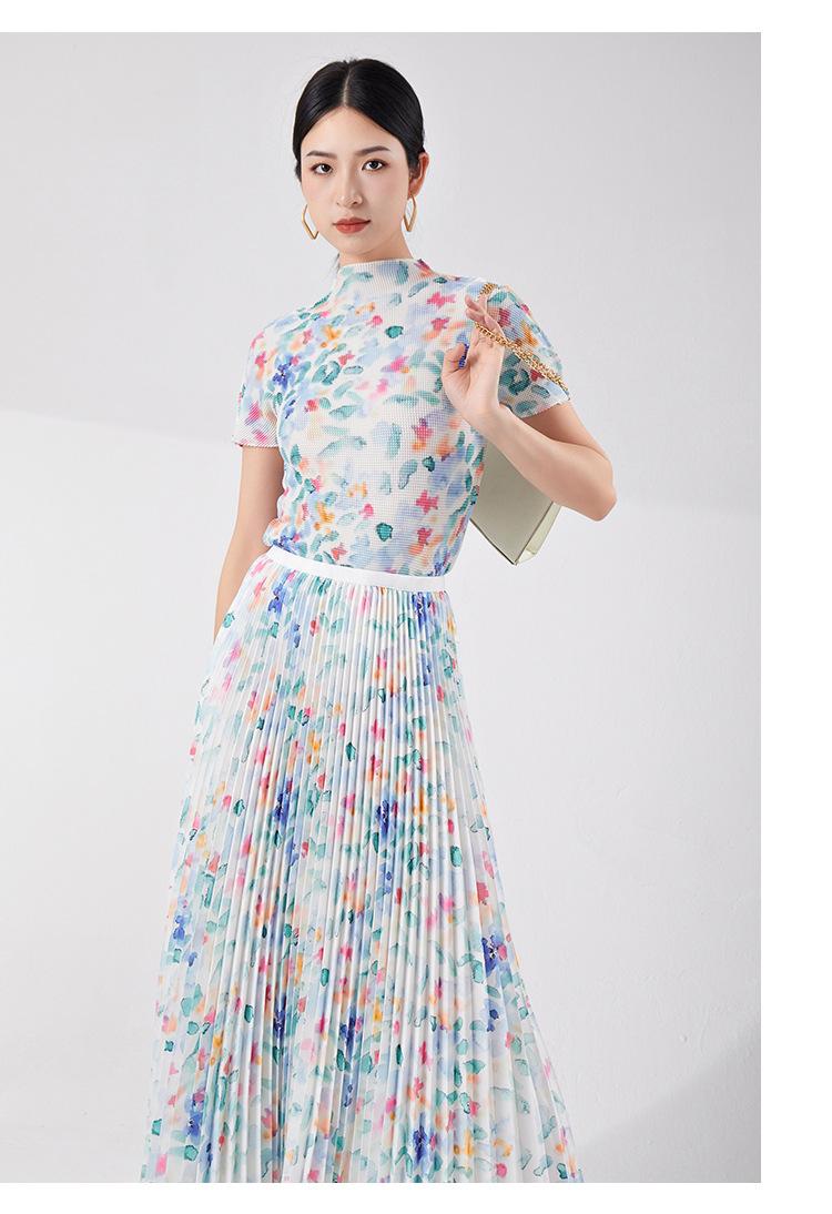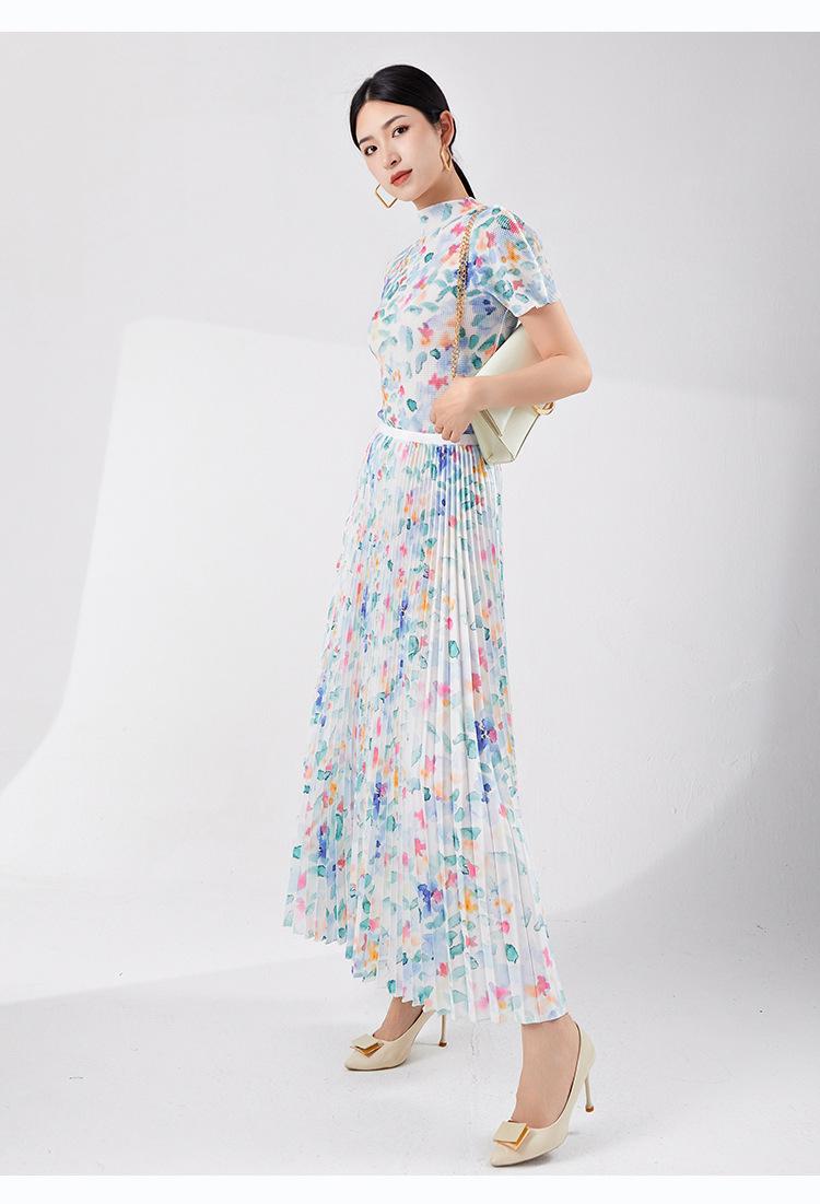 Traje Miyake Transfronterizo para Mujer Verano Dos Piezas Elegante Nuevo Floral Camiseta de Manga Corta Look Adelgazante Cintura Elástica Falda de Bajo Ancho