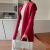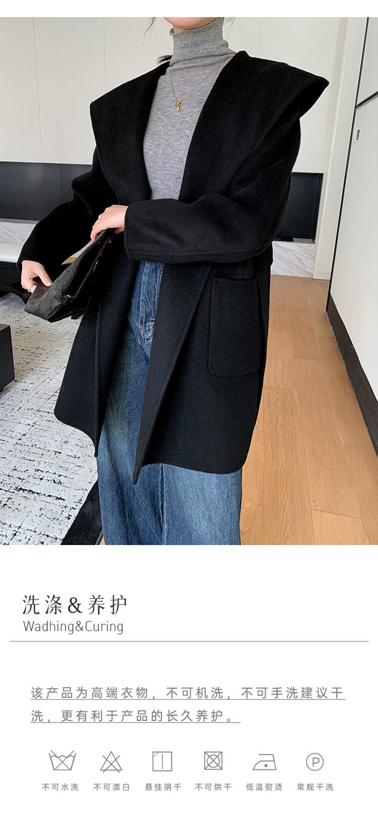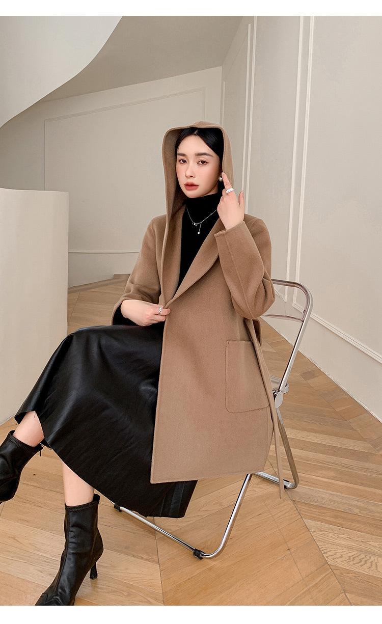 Abrigo de lana de color sólido con capucha nuevo para otoño e invierno 2023, cachemira de doble cara, temperamento de mujer, abrigo de moda mediano y largo