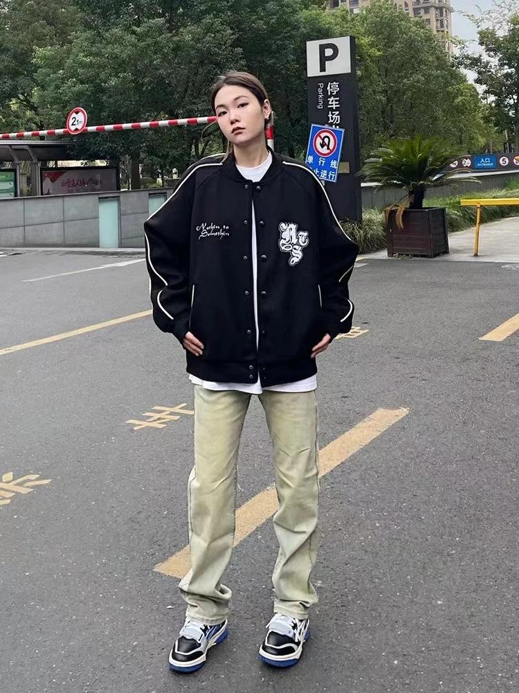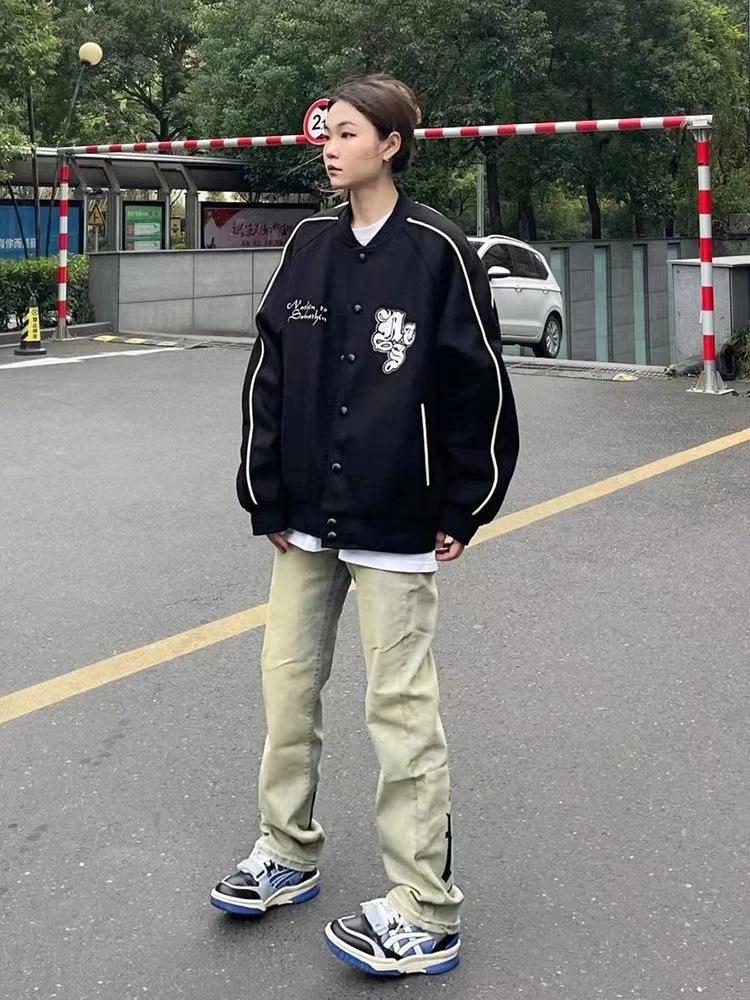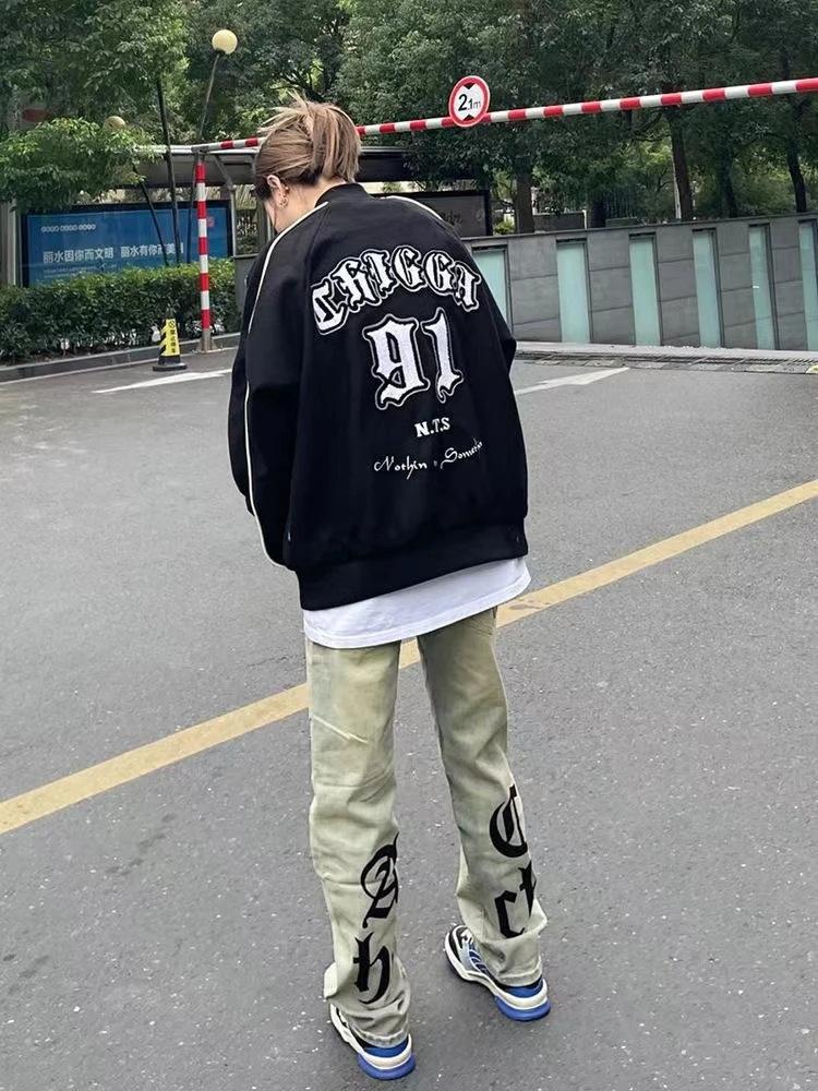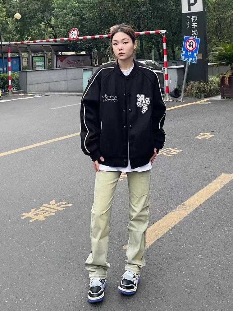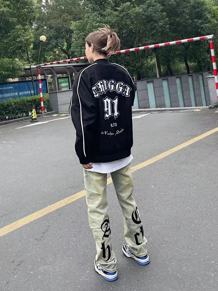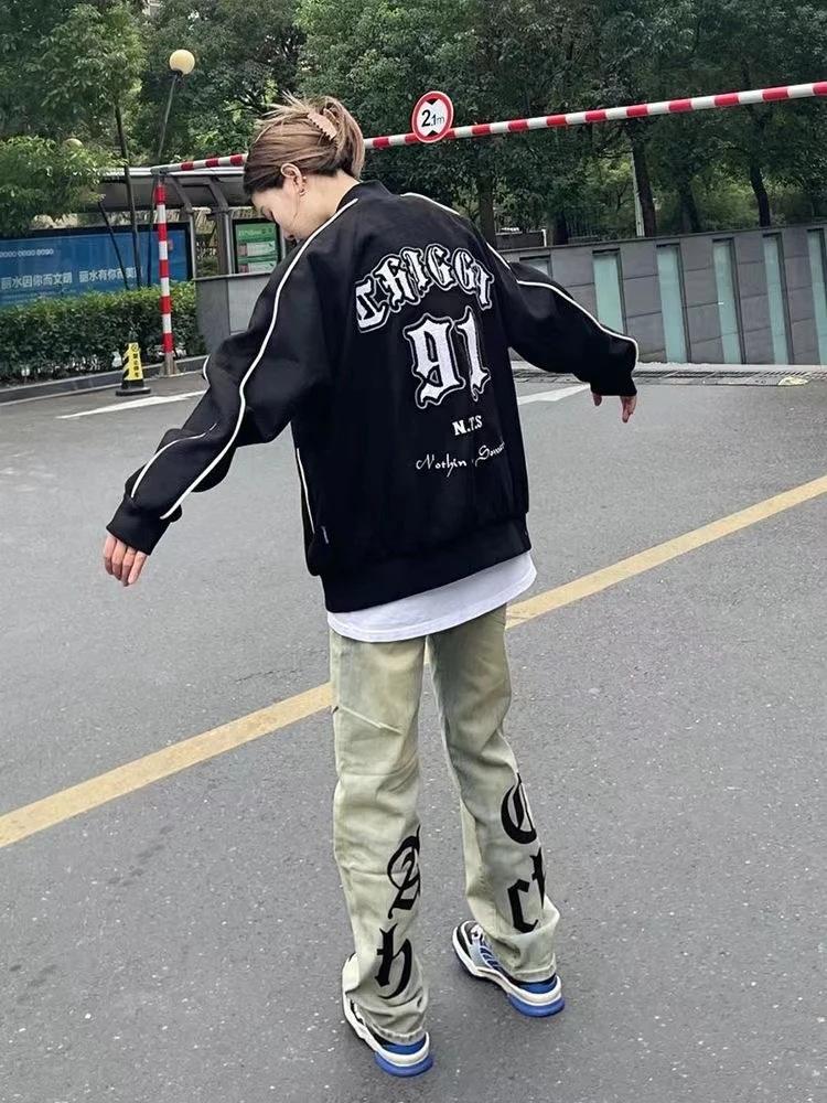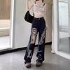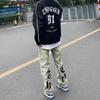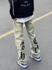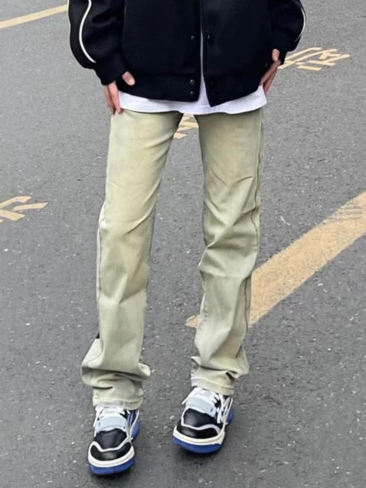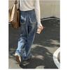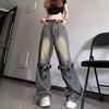 Pantalones vaqueros desgastados y lavados estilo retro americano, rectos, holgados, con diseño de estilo nicho.